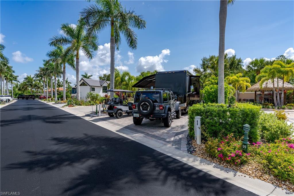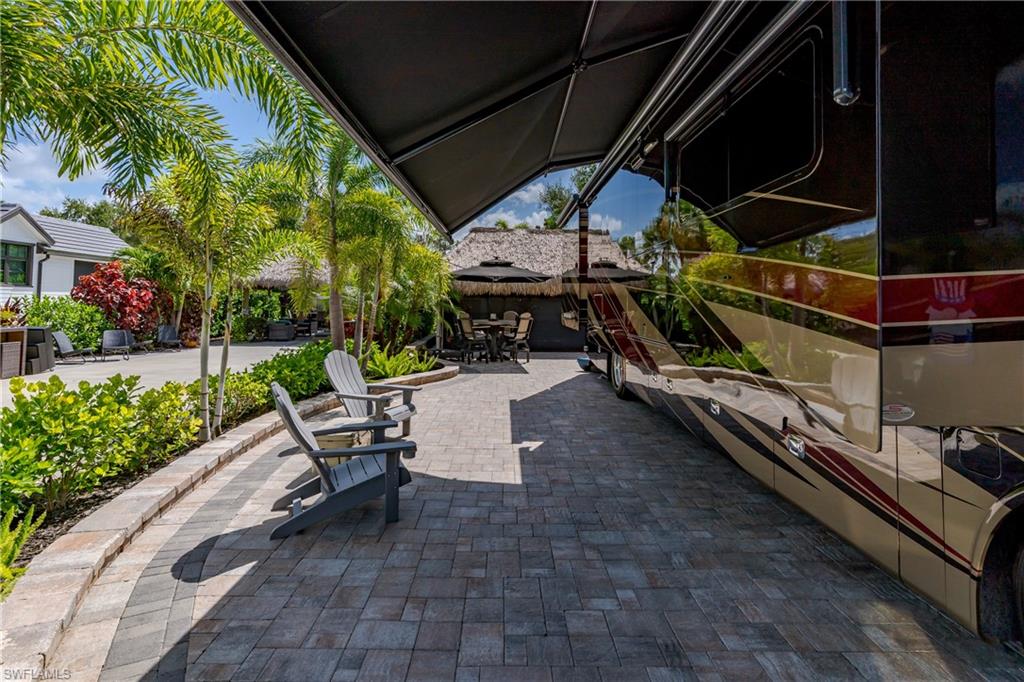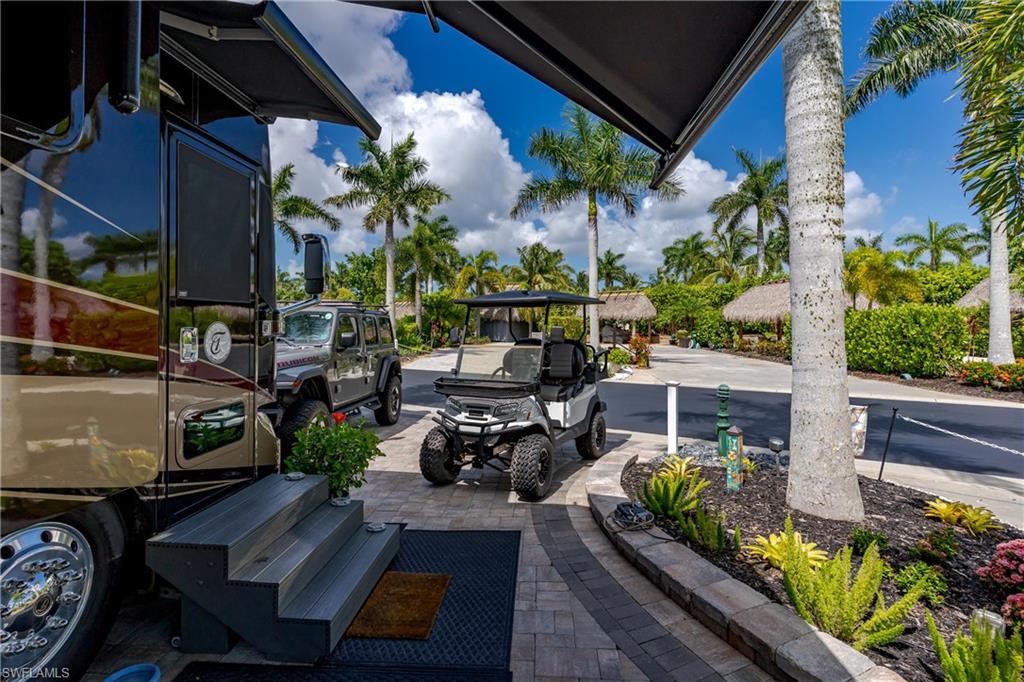 Lot 60 - You drive through the gates after admiring the beautiful flower and Royal Palm lined entry and the two fountains you passed have already welcomed you. As the gates swing open you are now facing an even more magnificent fountain in front of the clubhouse. You now turn and head to your slice of paradise, once again you cannot believe how beautiful this road is lined with Royal Palms. . . As you back into your beautiful fully paved lot, you admire the beautiful formal landscaping on your property. Now that you are settled in, you head back to your tiki and you decide to sit and relax with the beverage of your choice as you watch your favorite show. Once again you marvel at your landscaping and the privacy you have with the beautiful back wall. With screens that you can either have open or closed, your space under your tiki has all the benefits of a private room, bugs stay out, but you can still see through to admire your landscaping. As you are comfortably in your tiki with the sound of breezes, you look forward towards the front of your property and as dusk falls once again marvel at the beauty of it all and contemplate potentially adding a water feature. But for now, you are so happy to be in paradise and enjoying your property. What shall you do tomorrow?? Perhaps take one of the community kayaks and launch from the boat ramp and go through Rookery Bay. Maybe you will buy a boat, how convenient would that be to launch and go to the beach or boat up to a restaurant for lunch or dinner from within the resort? Perhaps it is time to learn how to play pickleball and play on one of the three courts? Probably best to build up those muscles first in the fitness center and then sit in the sauna. So many options! Welcome to the magic that is Naples Motorcoach Resort. Naples Motorcoach Resort is a Class A only resort and boasts a beautiful infinity pool, hot spa, exercise room, men's and ladies saunas as well as a catering kitchen that owners can use. There are also two satellite pools with a hot spa, their own rest rooms and a laundry room. We can't forget your furry best friend, the resort even has a dog park! Special note to investors, looking for a place to invest or reinvest as a 1031 exchange? Look no further, own this piece of paradise and put it into the management run rental program. The rental program administration advertises, schedules renters, collects payment including applicable taxes/fees and sends you your portion. These deeded lots are mortgage eligible and great for a quick close. In case you are interested, the lots on each side of this property are currently available as well. Have a friend or family member as a neighbor, or perhaps purchase for yourself to add space and build a large casita. Possibilities are endless!