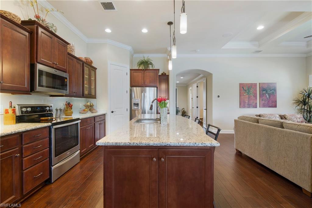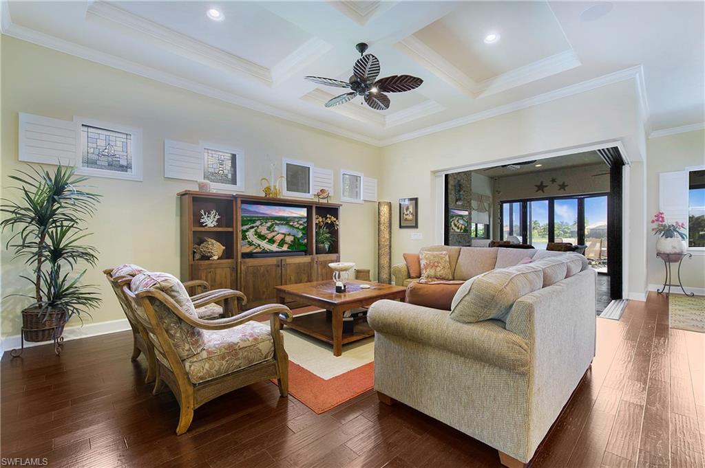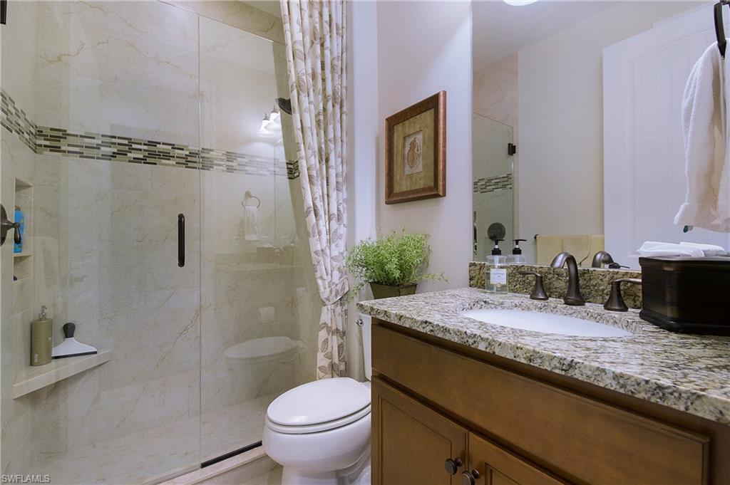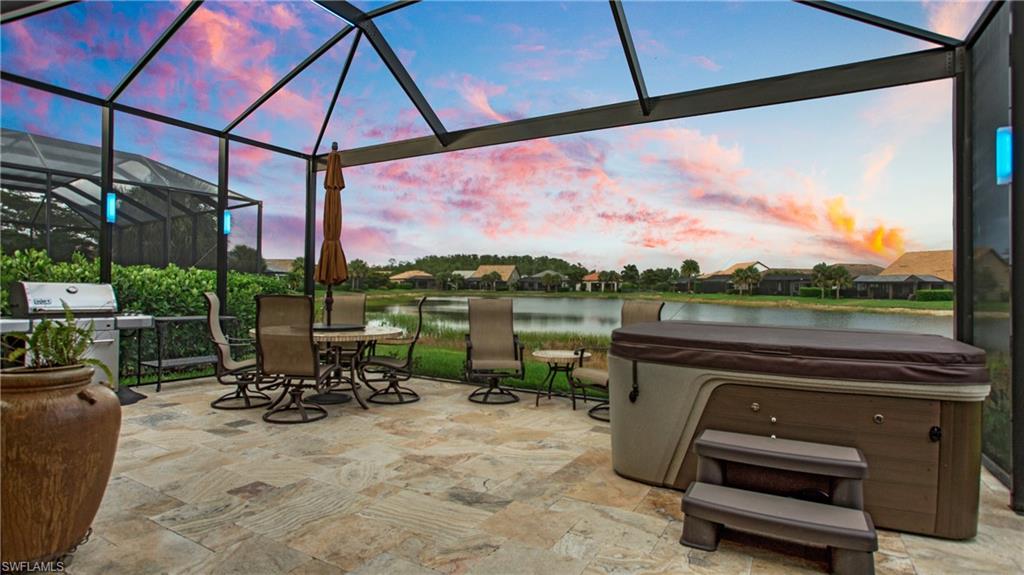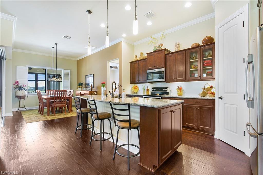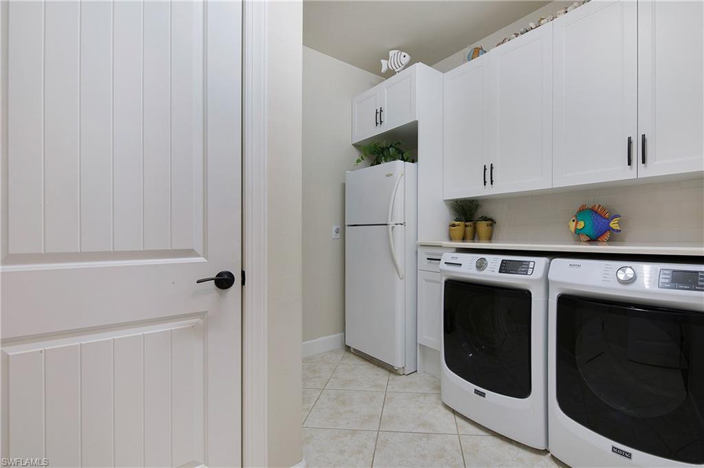 HIGHLY SOUGHT AFTER COMMUNITY! Freshly painted interior, this beautifully upgraded Summerwood model in the highly desirable gated Community of Corkscrew Shores. Located on the quiet Arrow Point Court. One of the home’s most impressive features is the custom air-conditioned Florida Room, complete with a built-in fireplace, stone accent wall, wet bar, mini-fridge, and bar-height seating and a new mini split A/C—ideal for entertaining year-round. This space is permitted and enclosed with hurricane-impact windows and NANA-style Hurricane bifold doors, which fully open to reveal an extended screened lanai with a picture window screen overlooking a peaceful lake view. The outdoor space continues to impress with a large, heated spa, perfect for relaxing in a private, tranquil setting. This 2-bedroom + den, 2-bathroom home offers exceptional indoor-outdoor living and thoughtful custom features throughout. Step inside to find rich wood flooring, fresh interior and exterior paint, and a spacious, light-filled layout designed for modern living. The open kitchen features gorgeous granite countertops with a center island and walk in pantry, beautiful custom cabinets with a designer backsplash, reverse osmosis system, and stainless-steel appliances. The traditional third bedroom has been converted into an extended garage—perfect for additional storage, hobby space, or a workshop. Additional upgrades include Zero-corner sliding glass doors. Both bathrooms have been completely remodeled with updated flooring and finishes, offering a sleek, spa-like feel. The owner’s suite features a large walk-in closet and a private en-suite bath with dual vanities and an oversized walk-in shower. An upgraded laundry room with custom cabinetry, full-size refrigerator, and new washer & dryer. As a resident of Corkscrew Shores, you’ll enjoy an unmatched lifestyle with access to a 240-acre lake, resort-style pool, clubhouse with restaurant & bar, fitness center, kayak launch, tennis, pickleball, walking trails, and more—all with no CDD fees. This one-of-a-kind home blends luxury and comfort in one of Estero’s most sought-after communities.