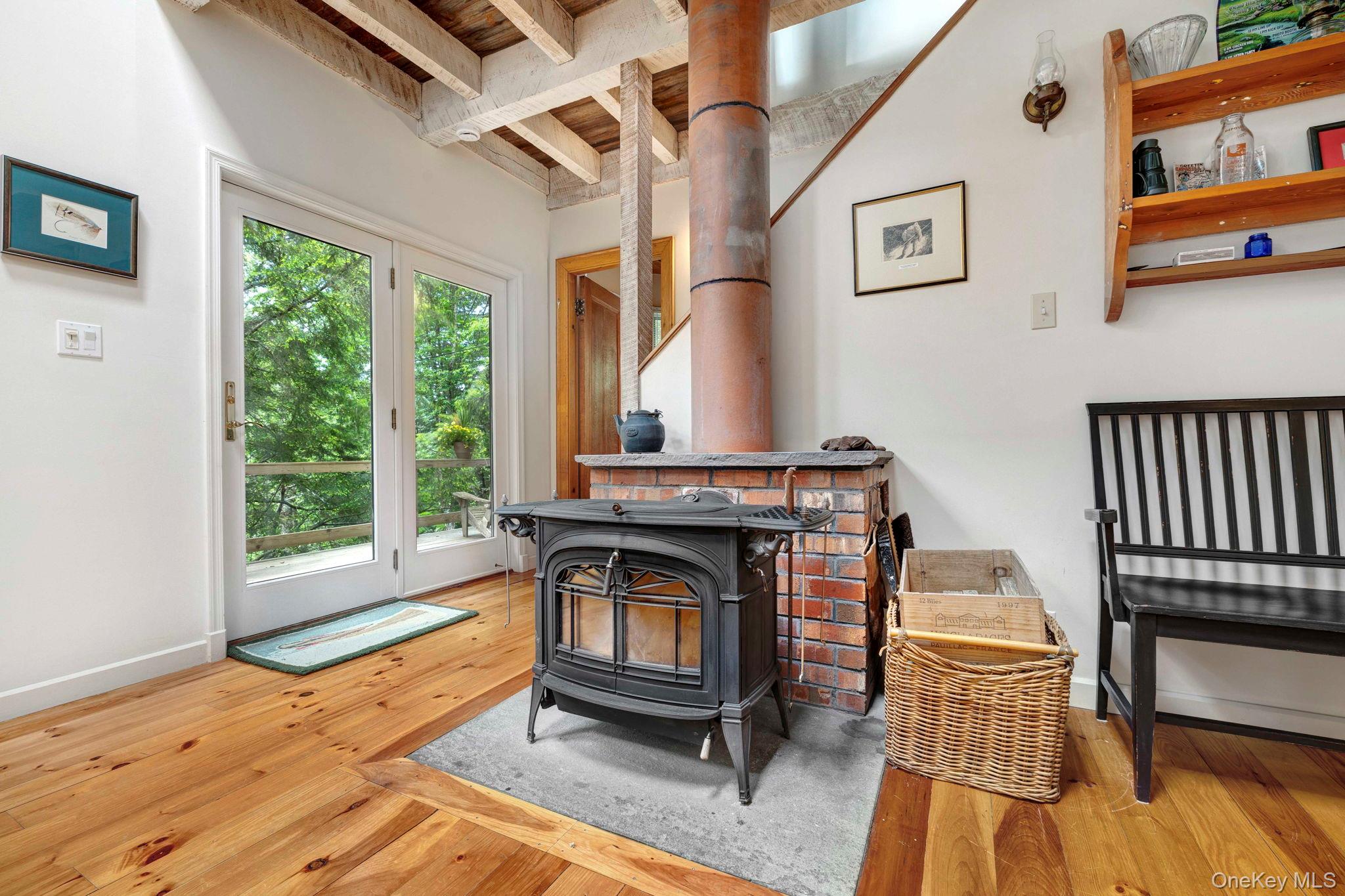 Willowemoc Lodge – A World-Class Trout Fishing Estate on the Willowemoc River. A once-in-a-generation opportunity awaits in the heart of the southern Catskills: welcome to Willowemoc Lodge, an extraordinary 21. 6-acre estate boasting an unrivaled 2, 500 feet of private frontage along the fame d Willowemoc River—one of the most iconic and celebrated fly fishing destinations in the Northeast. Whether you're a seasoned angler or a nature lover seeking a rare retreat, this property is a dream realized. Own a section of river that others only dream of fishing, with wild trout rising in your backyard. Private river access of this magnitude is virtually unheard of—making this a true trophy property and the envy of the Catskills. Connected by a custom-designed one-car bridge that spans your private stretch of river, the estate rises into the mountains where a spectacular lodge-style home and multiple outbuildings await. The main residence features new roof 2025, new skylights 2025, gleaming hardwood floors throughout, a dramatic beamed ceiling, an oversized stone fireplace, and a wood-burning stove, all capturing the warmth and grandeur of mountain living. Walls of windows overlook the river, flooding the interior with natural light and panoramic views. Two expansive levels of decking invite you to relax, entertain, and soak in the sounds of the river below. For the ultimate in relaxation, the home also features a private sauna. The land itself is bursting with natural beauty—lush perennial gardens, wild blackberry bushes, and vibrant seasonal flowers surround you, offering year-round color and privacy. Additional structures include a charming guest house, a cozy guest shed, a garage, and a fully equipped workshop, (shop equipment not included) offering versatile space for hosting, creative pursuits, or storage. These outbuildings not only enhance the property’s functionality but also present incredible potential for short-term rental income. Whether you envision a private family compound or a boutique Airbnb retreat for fly fishing enthusiasts and outdoor adventurers, the estate is perfectly suited for both personal enjoyment and revenue generation. Rarely does a property of this scale, beauty, and exclusivity come to market. With its unmatched river access, rustic luxury, and boundless possibilities, Willowemoc Lodge is more than a home—it’s a legacy.