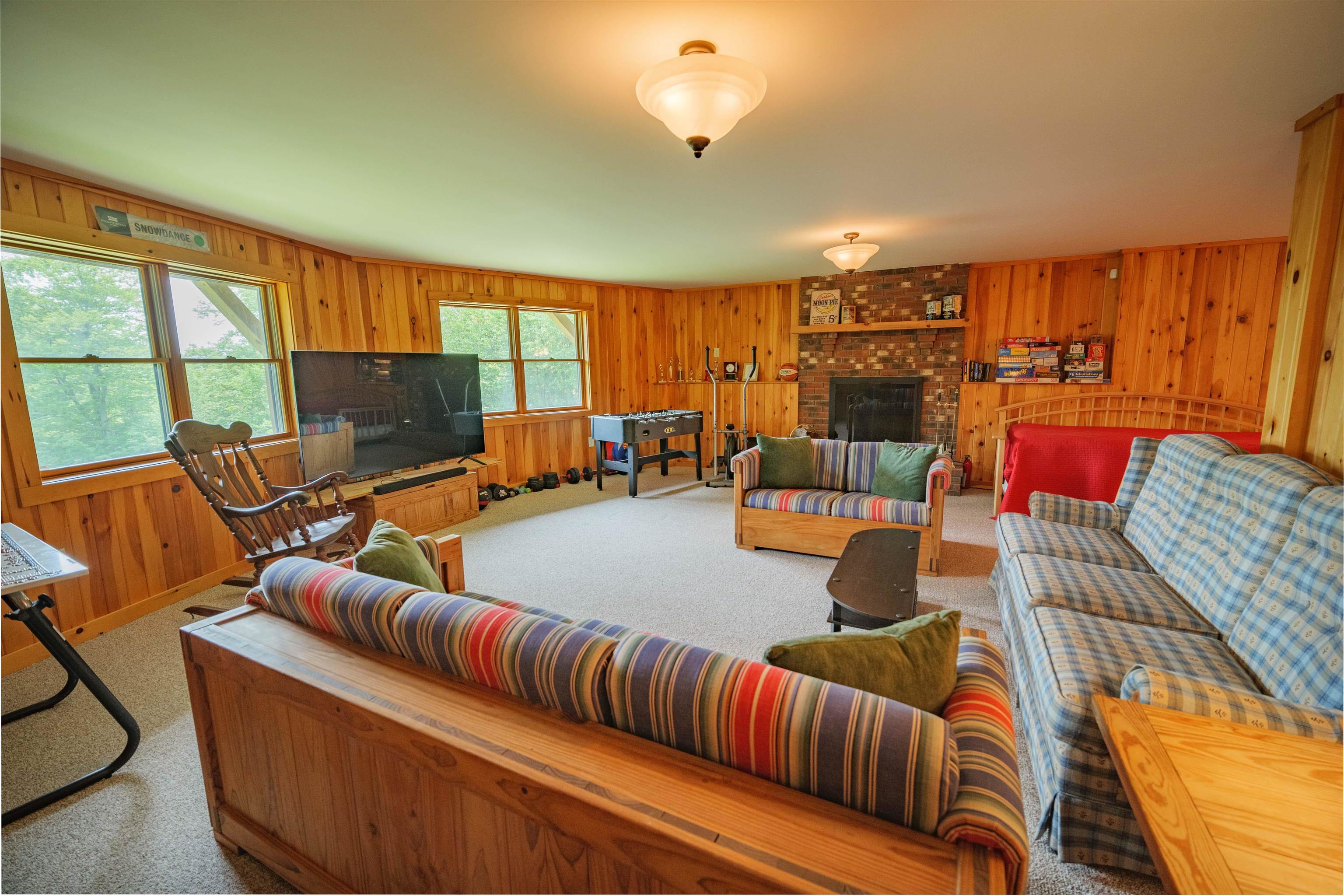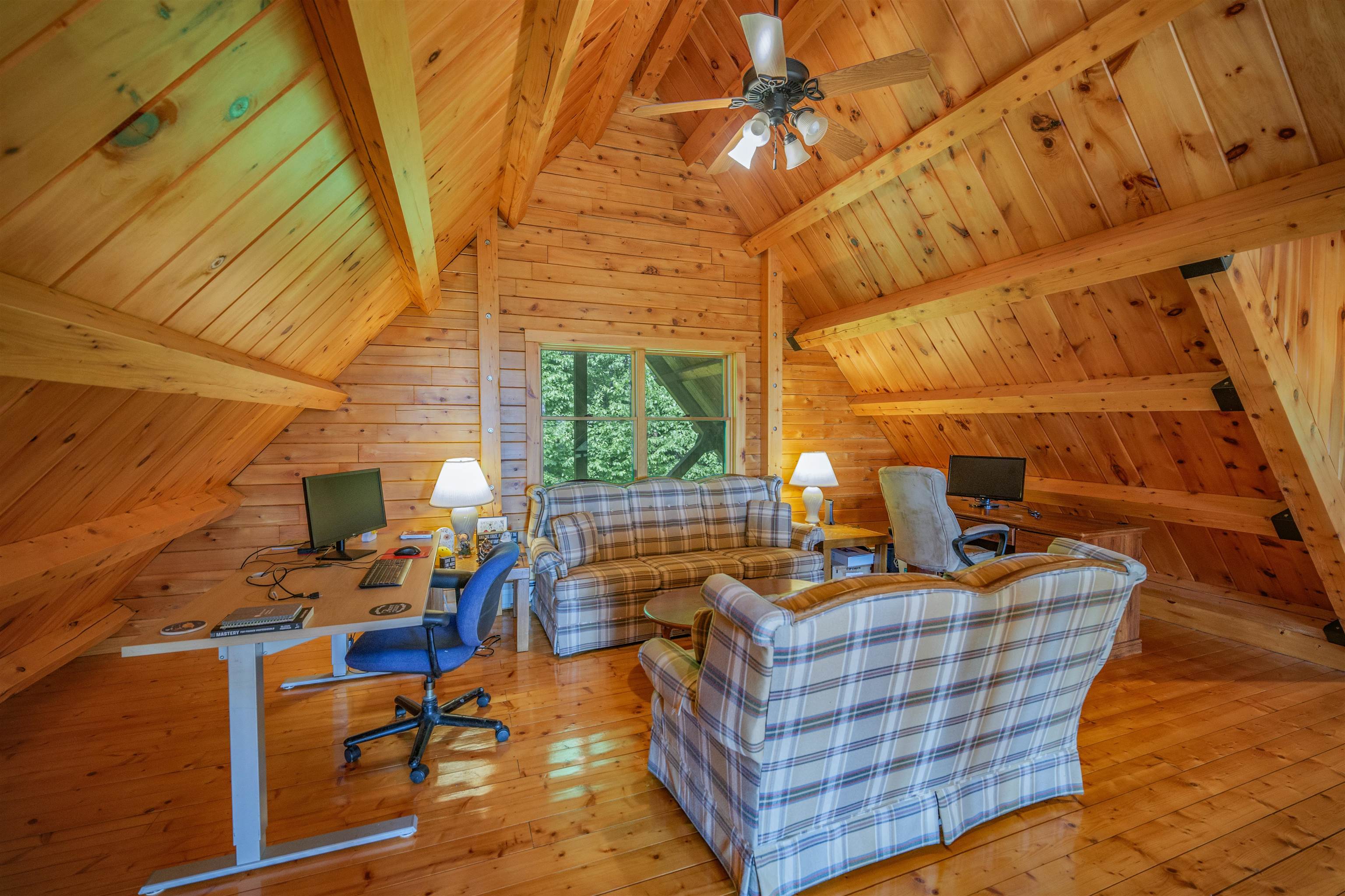 Escape to the Green Mountains with this custom-built Moose Head Cedar Log Cabin, beautifully sited on a private wooded lot in the sought-after Chimney Hill community. Enjoy ridgeline views, peaceful surroundings, and the fresh Vermont air. Inside, the offers timeless craftsmanship and open-concept living, featuring soaring post and beam construction with vaulted ceilings, floor-to-ceiling windows that frame the mountain landscape, a cozy stone woodburning fireplace in the great room, open kitchen with gas range and breakfast bar, beautiful sunlit dining area surrounded by glass and a private rear covered deck perfect for relaxing and grilling year round. The main floor includes two comfortable bedrooms and a bath. Upstairs, a spacious open loft with vaulted beamed ceiling leads to a serene primary suite with walk-in closet, private balcony, and spa-style bath with jetted tub and oversized shower. Downstairs, the finished lower level offers even more, welcoming mudroom entry, large family room with brick fireplace, game room complete with pool table and wet bar, bath, laundry room, utility room, and an on-demand generator for peace of mind. As part of the Chimney Hill community, enjoy access to a Clubhouse with indoor & outdoor pools, fitness center, game & media room. hiking trails, ice rink, and direct VAST snowmobile trail access. Located minutes from Mount Snow and Wilmington’s village shops & dining, this is the ultimate Vermont getaway or full-time residence.
