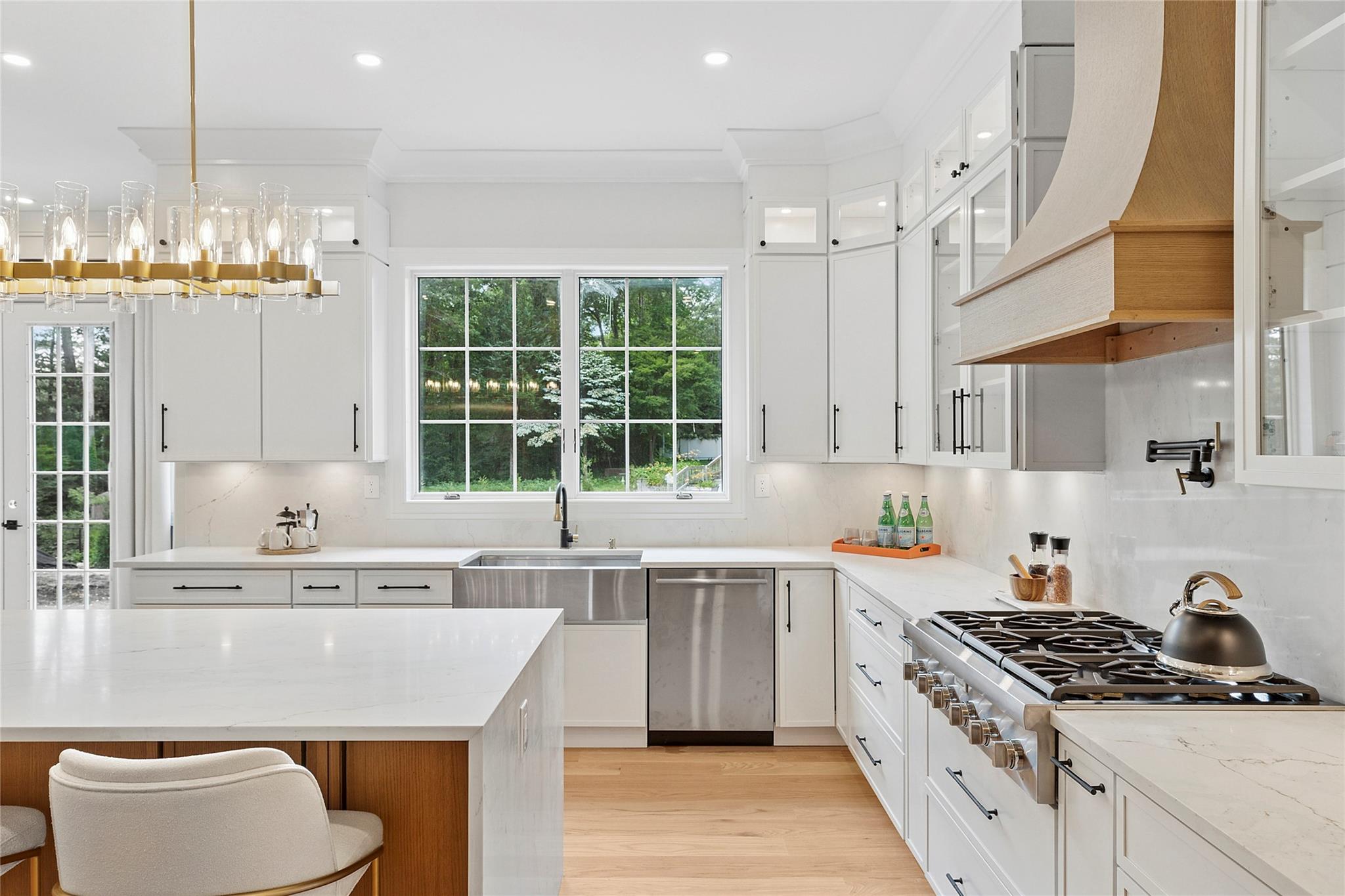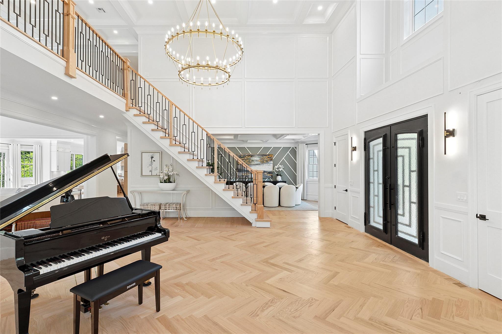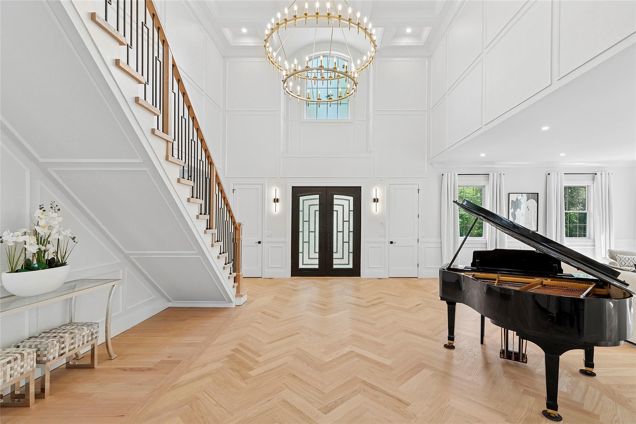 Exquisite French Chateau Style Estate in the Heart of Dix Hills! This newly constructed, custom-built home spans an impressive 9, 000 square feet of luxurious living space, with detailed craftsmanship, all gracefully set on a beautiful, flat 1. 11-acre lot. A true masterpiece, this estate blends classic elegance with modern sophistication. Upon entering the grand two-story foyer, you are immediately captivated by the dramatic staircase, framed by soaring coffered ceilings that create a sense of openness and grandeur. This welcoming space transitions into expansive and open-concept living areas. Featuring a stately two-story den, with a dramatic and gorgeous floor-to-ceiling gas fireplace and oversized windows, which brings in an abundance of natural light. The designer kitchen is a true showstopper, outfitted with top-of-the-line Thermador appliances, custom cabinetry, and a sprawling center island. Equally impressive is the large dining room defined by its coffered ceiling and is complemented by a well-appointed butler’s pantry, ideal for grand scale entertaining. The first floor also features a secondary back staircase for private and easy access to the upper level, as well as a private guest suite with it's own beuatifully appointed full bath. A first floor laundry room and mud room round out the floorplan. The second story features a luxurious and expansive primary suite enhanced with a spa-inspired bathroom with every indulgence, from a soaking tub, rainfall shower and dual vanities, all designed with the finest materials and attention to detail. The primary suite is enhanced with dual walk in closets and it's own private balcony for the ultimate escape. In addition is four generously sized bedrooms, plus three well-appointed bathrooms, a huge bonus room, and a second story laundry center which all flows together via a stylish open air walkway overlooking the main living areas below, ensuring that every corner of the home feels connected and open. The full unfinished basement offers an additional 3, 000 square feet of endless potential for customization — whether you choose to create a private home theater, gym, or recreational space this expansive area can be tailored to suit your lifestyle. To enjoy the best of indoor-outdoor living, a pair of french doors leads to a large covered patio, with vast lawn views. This estate is more than just a home; it is an unparalleled experience of luxury, and comfort. Every detail has been meticulously crafted, with timeless design and impeccable finishes at every turn. Situated in Dix Hills' most sought-after Longwood Estates, It is truly a once-in-a-lifetime opportunity to own an extraordinary estate in the award-winning Half Hollow Hills School District.