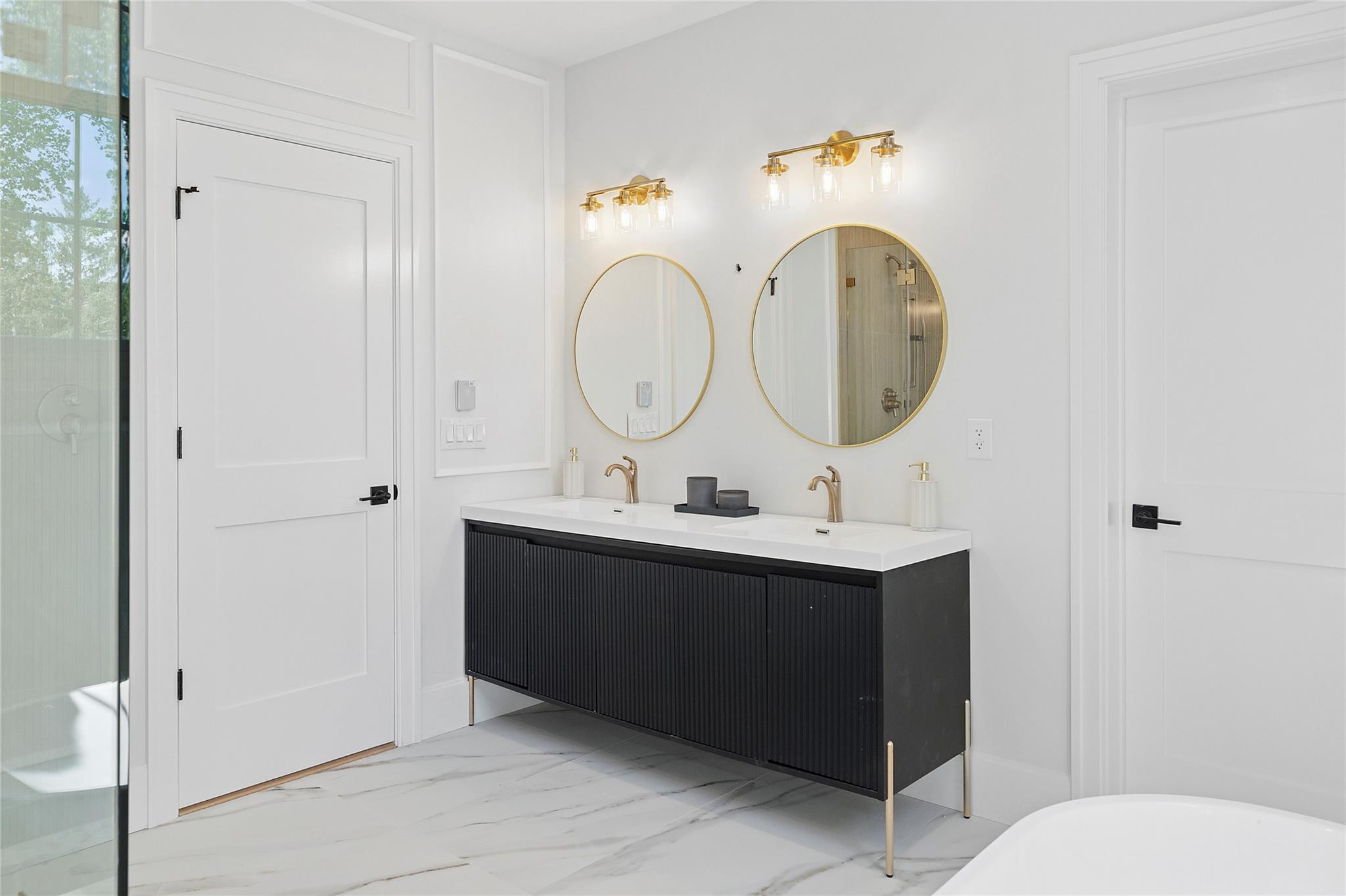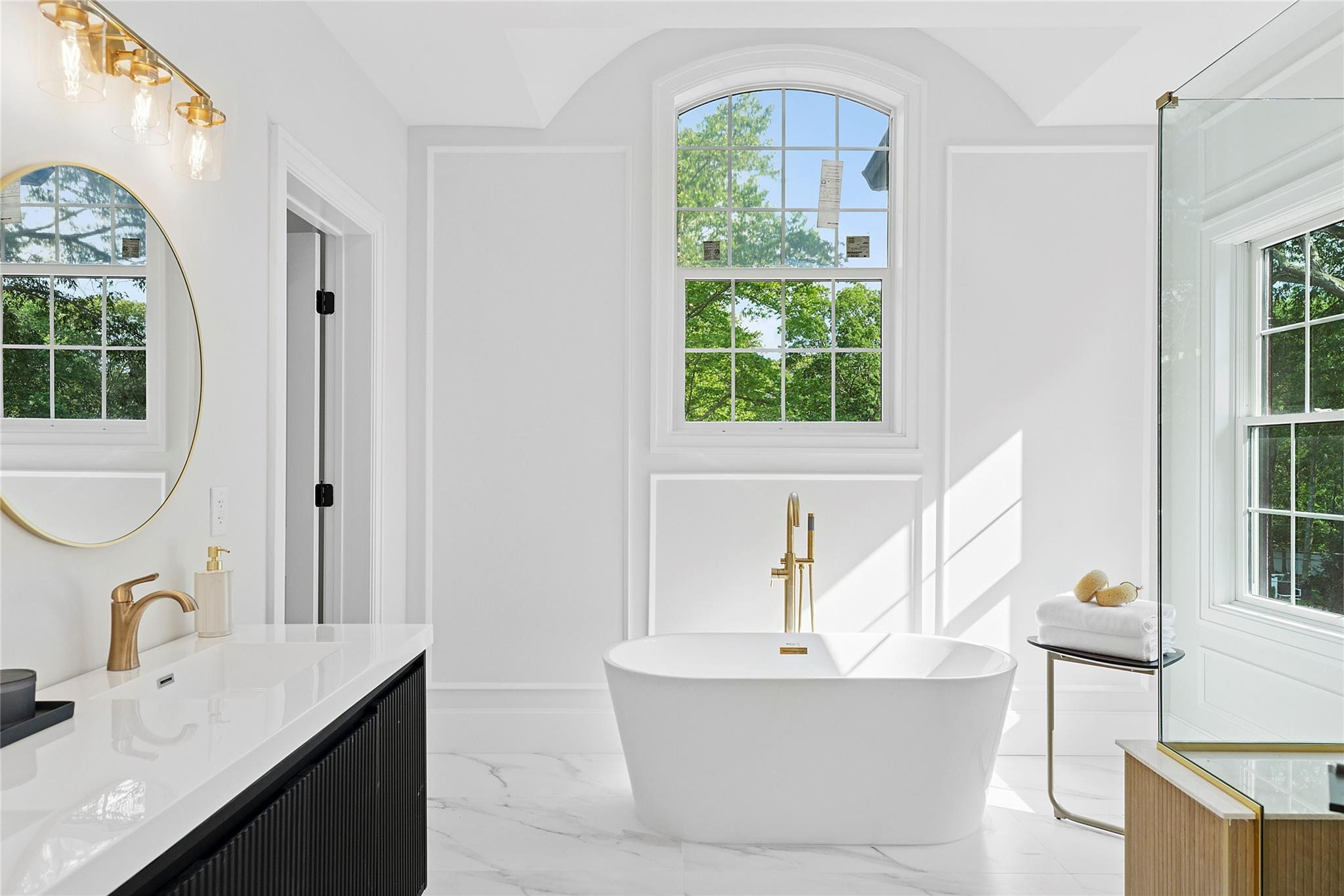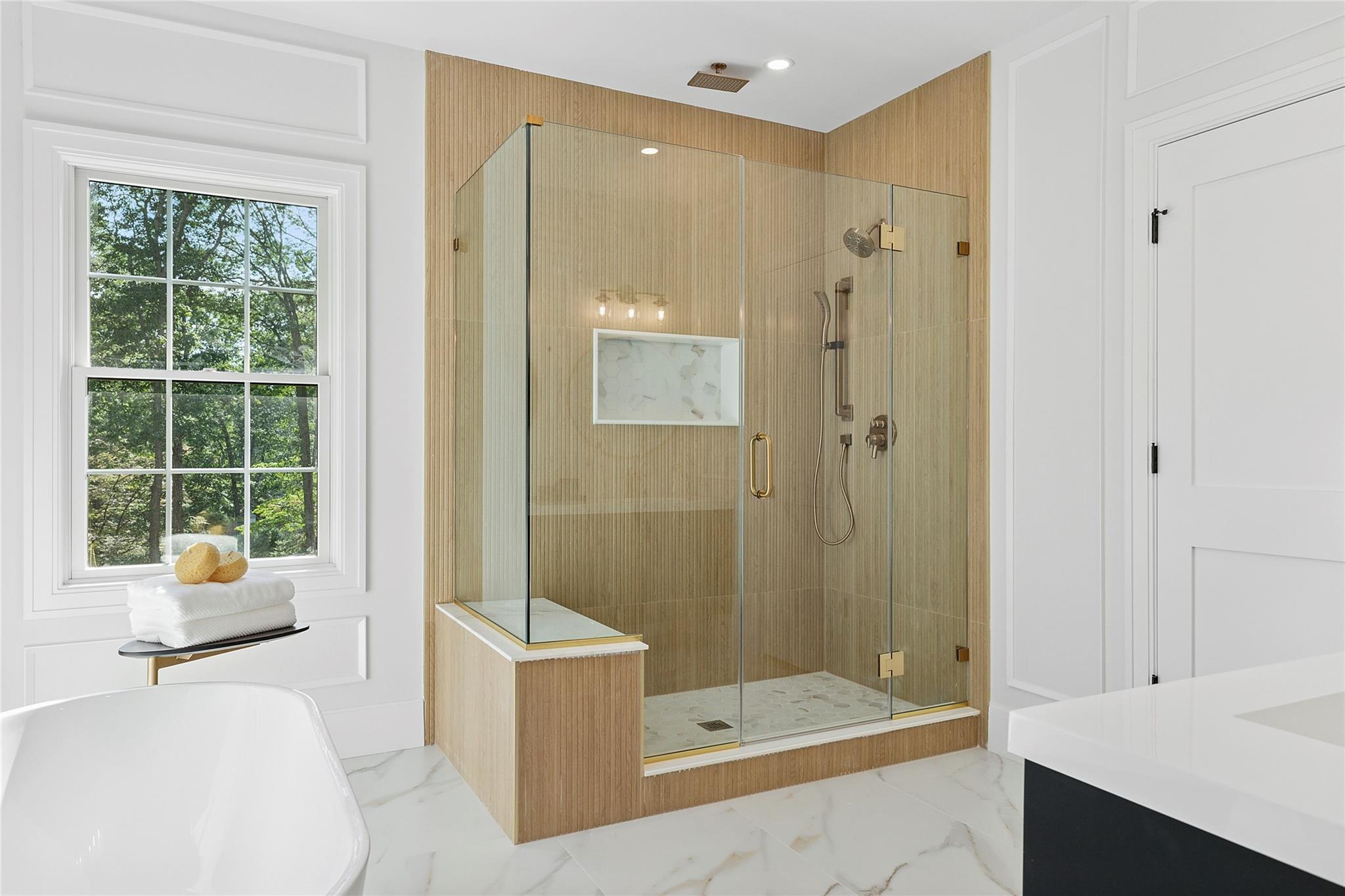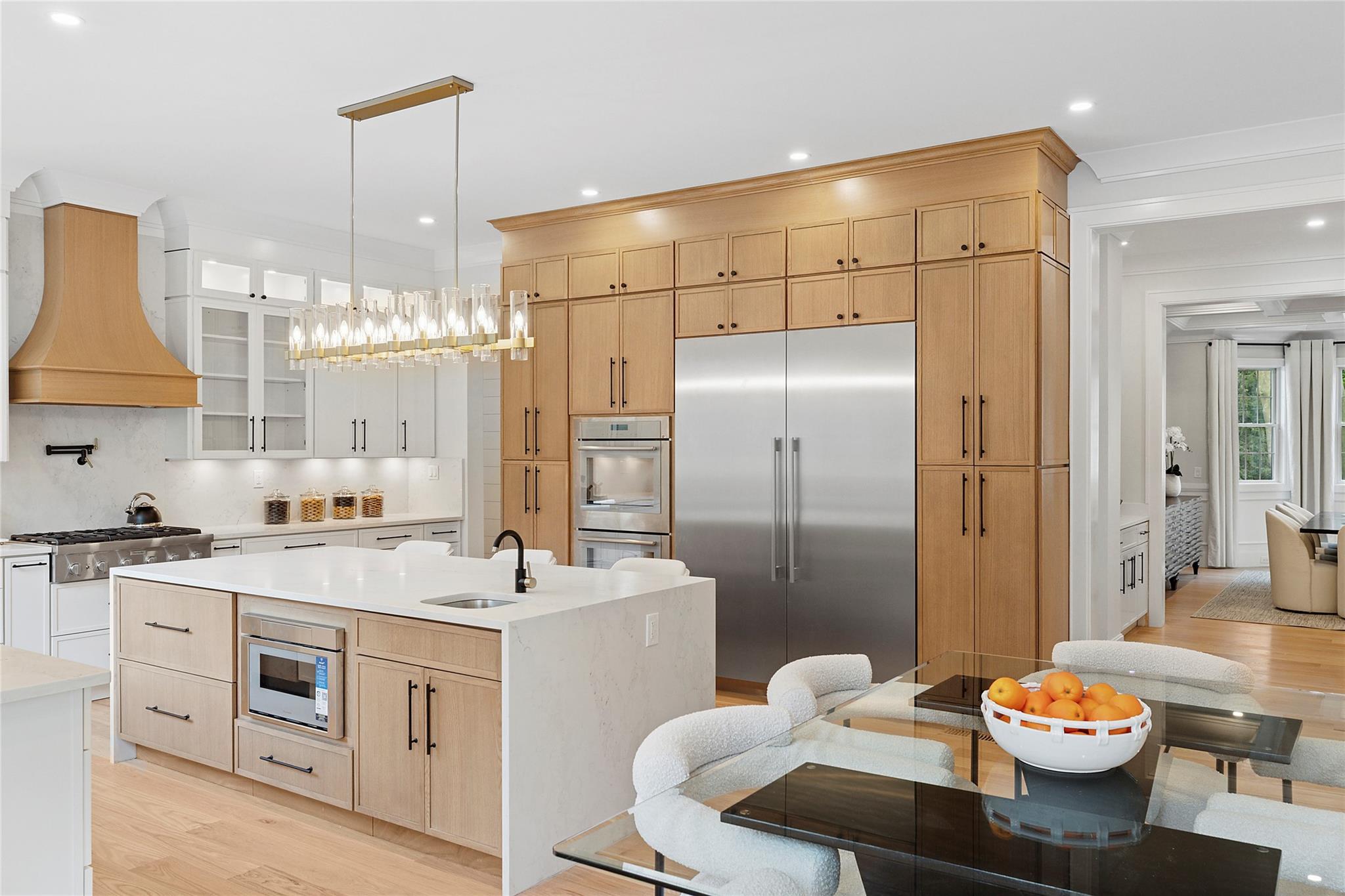 Exquisite French Chateau Style Estate in the Heart of Dix Hills! This newly constructed, custom-built home spans an impressive 9, 000 square feet of luxurious living space, with detailed craftsmanship, all gracefully set on a beautiful, flat 1. 11-acre lot. A true masterpiece, this estate blends classic elegance with modern sophistication. Upon entering the grand two-story foyer, you are immediately captivated by the dramatic staircase, framed by soaring coffered ceilings that create a sense of openness and grandeur. This welcoming space transitions into expansive and open-concept living areas. Featuring a stately two-story den, with a dramatic and gorgeous floor-to-ceiling gas fireplace and oversized windows, which brings in an abundance of natural light. The designer kitchen is a true showstopper, outfitted with top-of-the-line Thermador appliances, custom cabinetry, and a sprawling center island. Equally impressive is the large dining room defined by its coffered ceiling and is complemented by a well-appointed butler’s pantry, ideal for grand scale entertaining. The first floor also features a secondary back staircase for private and easy access to the upper level, as well as a private guest suite with it's own beuatifully appointed full bath. A first floor laundry room and mud room round out the floorplan. The second story features a luxurious and expansive primary suite enhanced with a spa-inspired bathroom with every indulgence, from a soaking tub, rainfall shower and dual vanities, all designed with the finest materials and attention to detail. The primary suite is enhanced with dual walk in closets and it's own private balcony for the ultimate escape. In addition is four generously sized bedrooms, plus three well-appointed bathrooms, a huge bonus room, and a second story laundry center which all flows together via a stylish open air walkway overlooking the main living areas below, ensuring that every corner of the home feels connected and open. The full unfinished basement offers an additional 3, 000 square feet of endless potential for customization — whether you choose to create a private home theater, gym, or recreational space this expansive area can be tailored to suit your lifestyle. To enjoy the best of indoor-outdoor living, a pair of french doors leads to a large covered patio, with vast lawn views. This estate is more than just a home; it is an unparalleled experience of luxury, and comfort. Every detail has been meticulously crafted, with timeless design and impeccable finishes at every turn. Situated in Dix Hills' most sought-after Longwood Estates, It is truly a once-in-a-lifetime opportunity to own an extraordinary estate in the award-winning Half Hollow Hills School District.