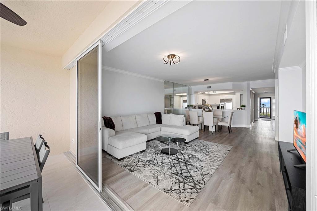This coastal retreat features new floors, a brand-new kitchen, and impact-rated windows throughout. The expansive screened lanai spans the