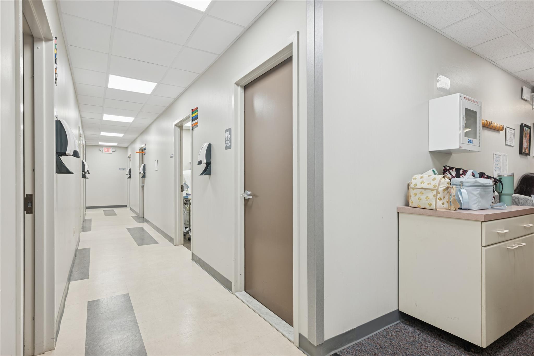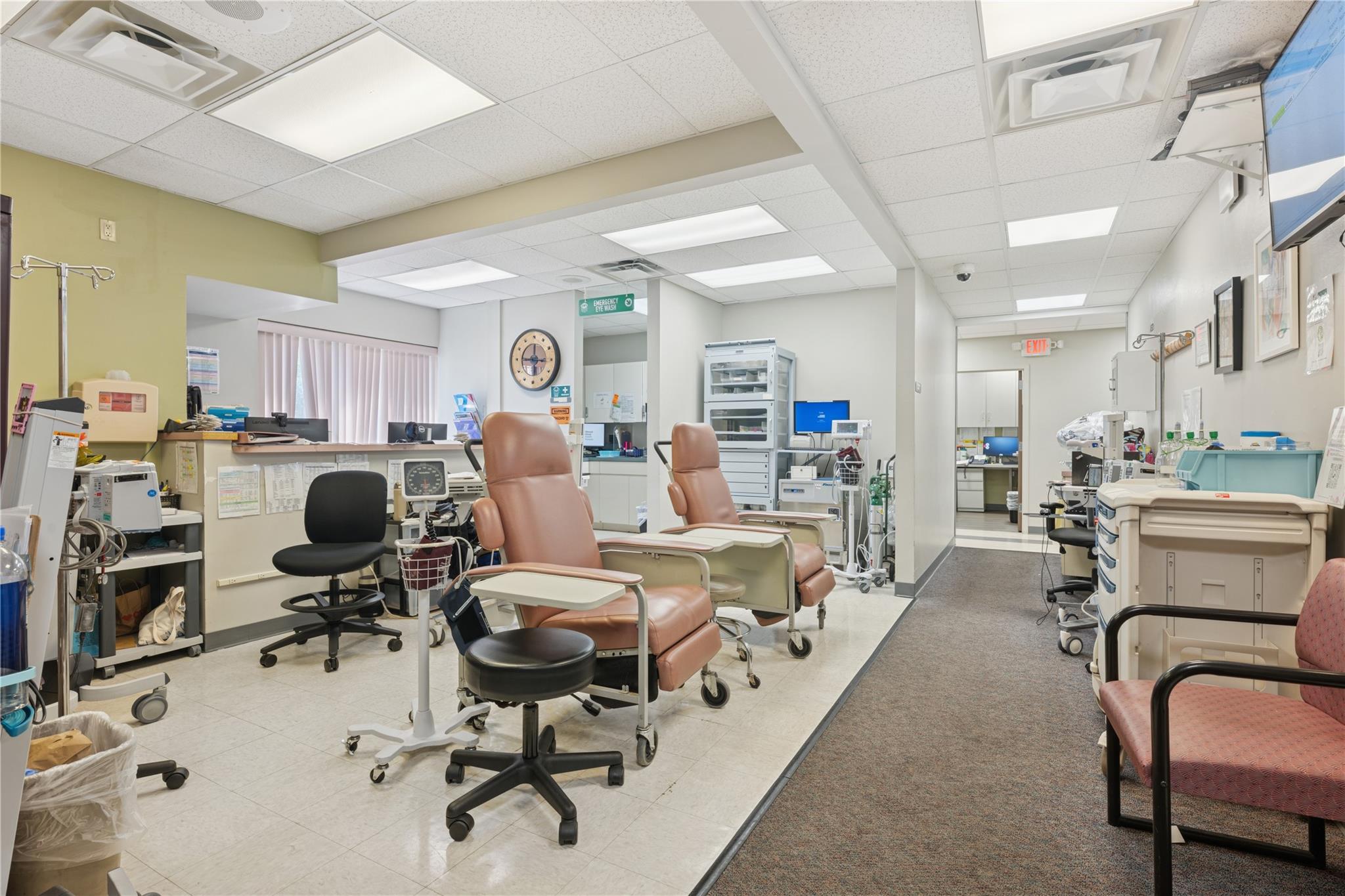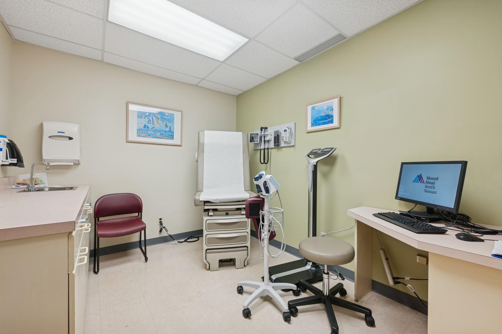 Modern highly visible Merrick Road two story office building with traffic light. Huge 50 + car parking lot at the side and rear of this office building. 1st floor: 1795/3418 = 5212 sq ft total office space. . . . . . . automatic front double doors open to wide foyer. One unit easily dividable with added just one wall straight ahead with floor to ceiling glass doors, waiting is room, reception area, 4 exam rooms, lab, private bath. Storage. Long leaseavailable