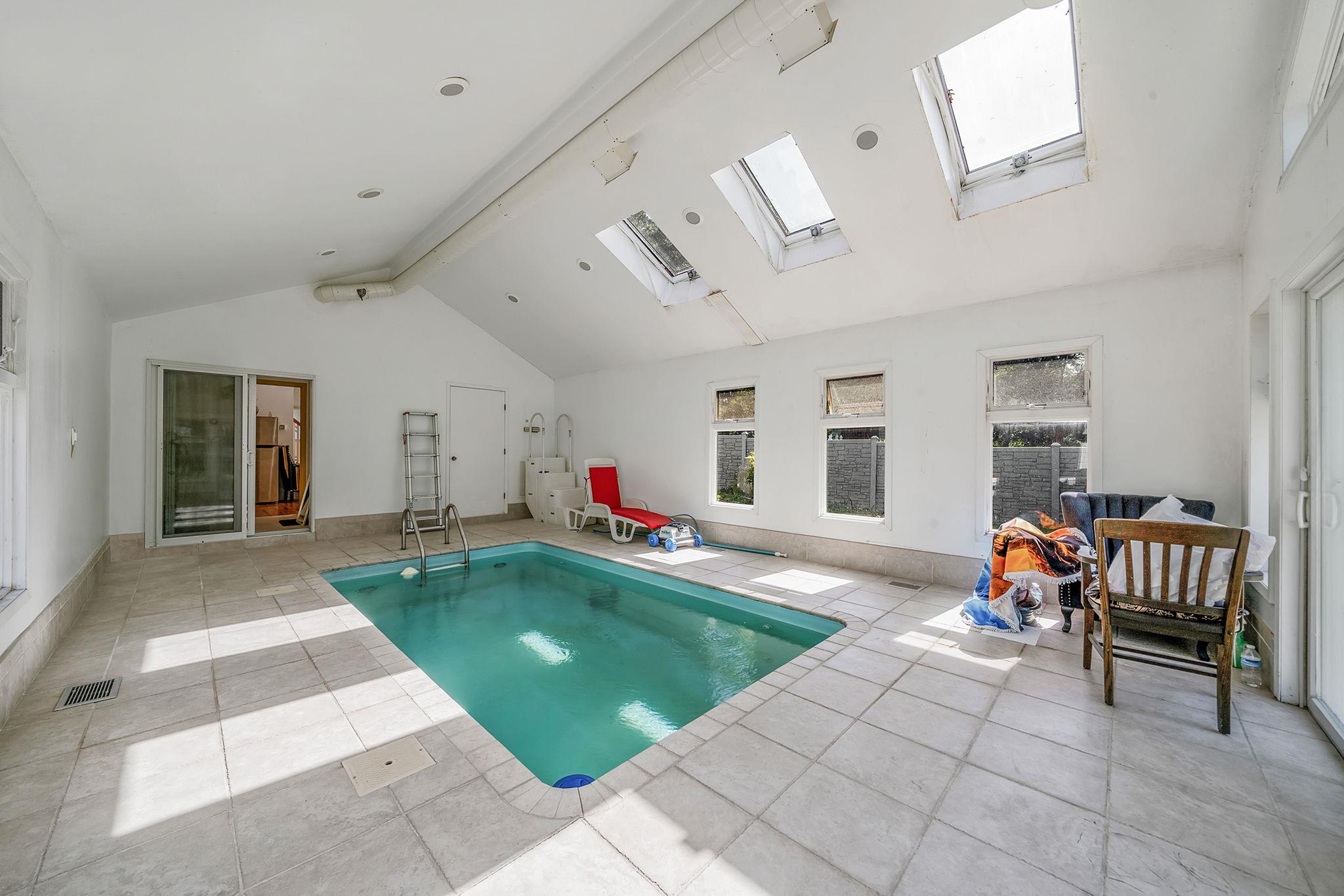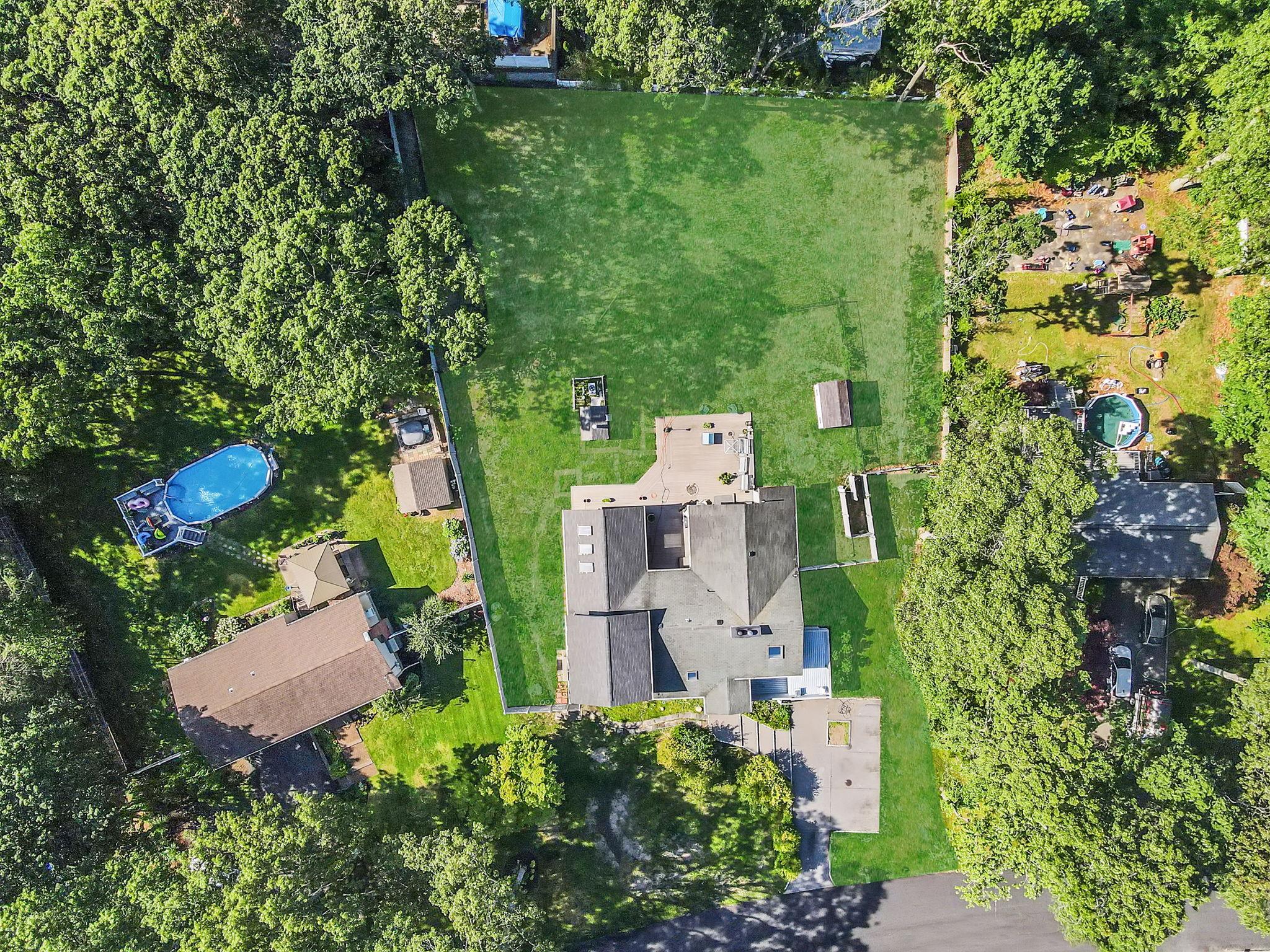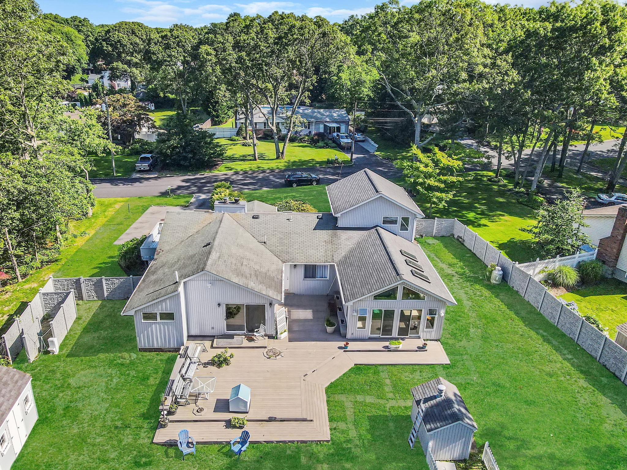 Contemporary Living in Farmingville – Bright, Spacious, and Uniquely Yours Welcome to this beautifully maintained 3-bedroom, 3-bath contemporary home set on a generous . 79-acre lot in the heart of Farmingville. Designed for both comfort and functionality, this home offers abundant closet space, a formal dining room, and a cozy fireplace, perfect for relaxing evenings. Enjoy year-round comfort with central air conditioning and split units, along with an abundance of natural light streaming through oversized windows throughout the home. The upstairs master suite is a private retreat, complete with its own living room, full bath, and easy access to the indoor heated inground pool—ideal for wellness and leisure in every season. Step outside to a low-maintenance Trex deck, surrounded by professionally maintained landscaping and inground sprinklers, offering a perfect space for outdoor entertaining. Additional highlights include an unfinished basement with a separate outside entrance, offering great potential for additional living space, a home office, or storage.