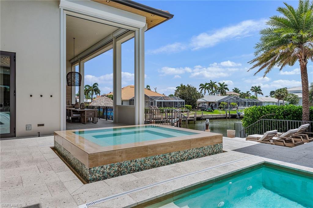Completing this tropical masterpiece is a private dock and boat lift with quick, direct access to the Gulf of Mexico, providing the ultimate gateway to Marco Island’s world-class boating lifestyle.