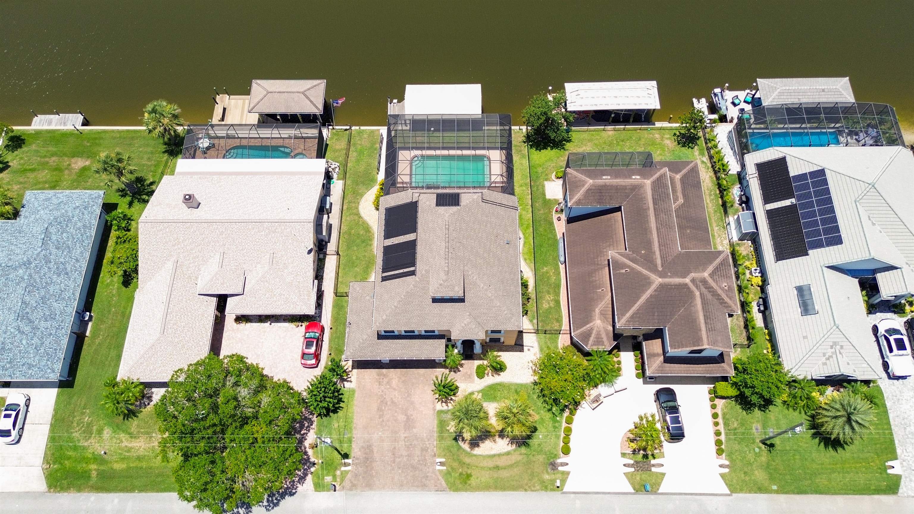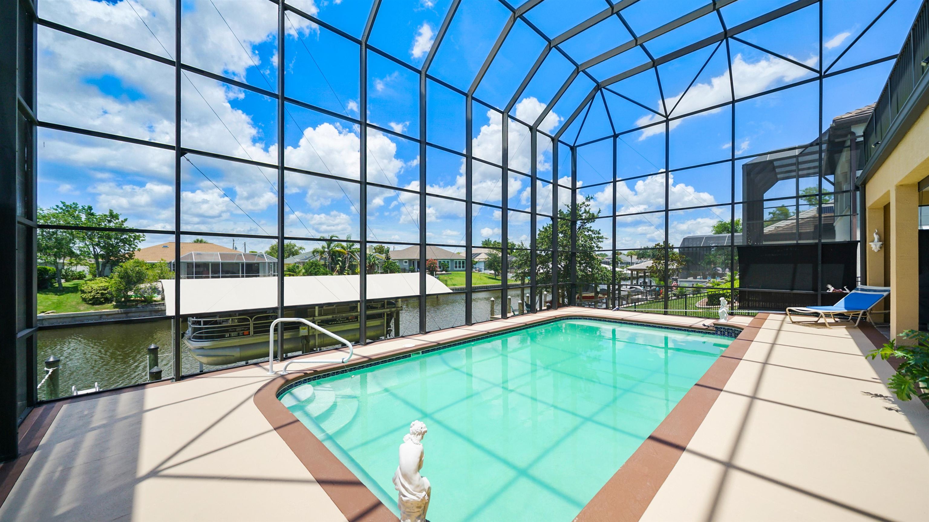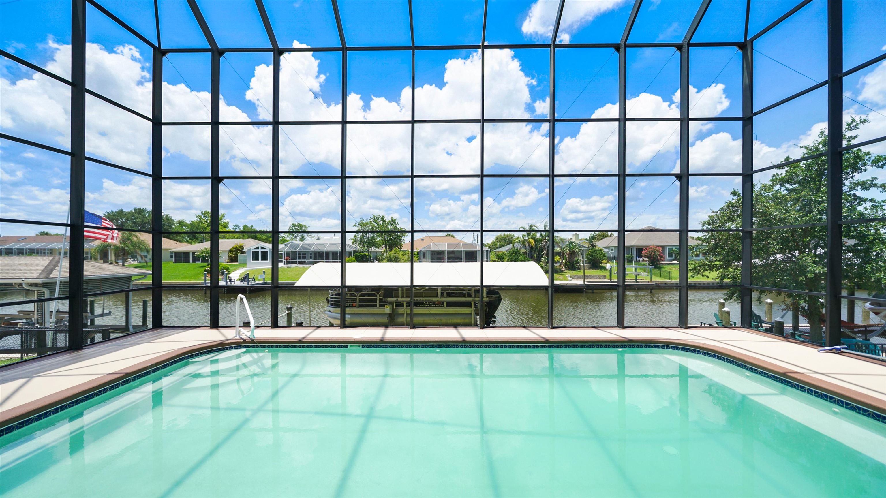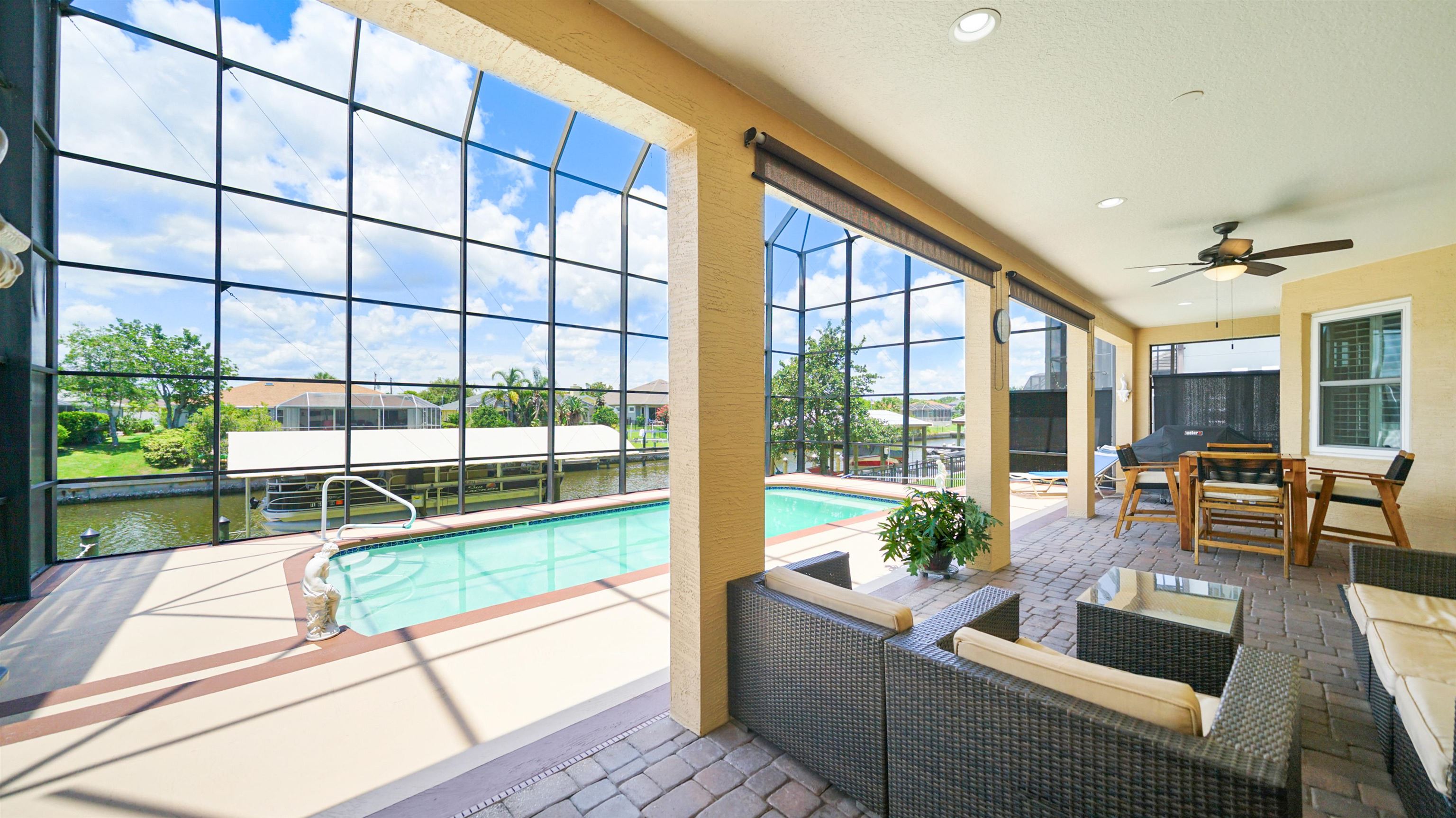 This exceptional concrete block home offers the ideal blend of waterfront luxury and everyday comfort. Nestled on a quiet canal with direct access to the Intracoastal Waterway, the property is a boater’s paradise—complete with a 31-foot dock (13. 5 feet wide), a boat lift, and full water and electric connections already in place. Beautifully landscaped with lush, low-maintenance greenery, the exterior delivers striking curb appeal without the hassle. Step inside to a bright, open-concept layout where the granite and stainless steel kitchen flows seamlessly into the sunlit living area. Elegant details like crown molding and plantation shutters add warmth and sophistication throughout. The nearly 30-foot-long pool invites morning laps or afternoon lounging, all within the dramatic setting of a two-story screened lanai. From the expansive second-story balcony, take in peaceful sunset views over the water. The spacious primary suite is conveniently located on the main level for privacy and ease. Upstairs, you’ll find three oversized bedrooms, a generous loft, and a dedicated media room—perfect for family living or hosting guests. A rare three-car garage offers abundant storage for vehicles, water toys, and more. Turn-key and thoughtfully designed, this low-maintenance home captures the very best of Florida living—boating, swimming, sunsets, and space for everyone to enjoy. All information pertaining to the property is deemed reliable, but not guaranteed. Information to be verified by the Buyer. Be advised that cameras may exist recording audio and video inside/outside the property, such as ring doorbells. Photos are digitally enhanced and could be altered, please verify.