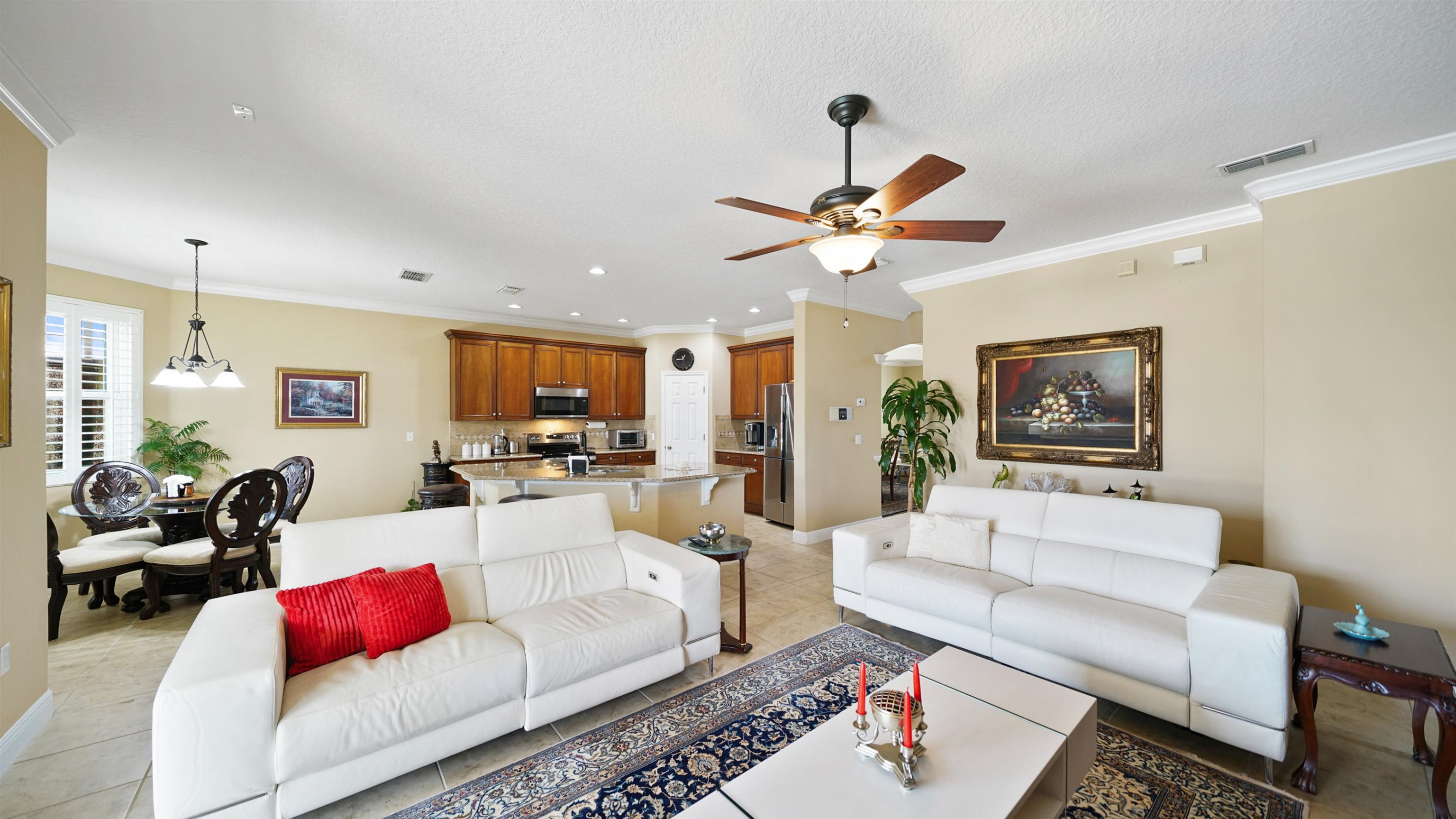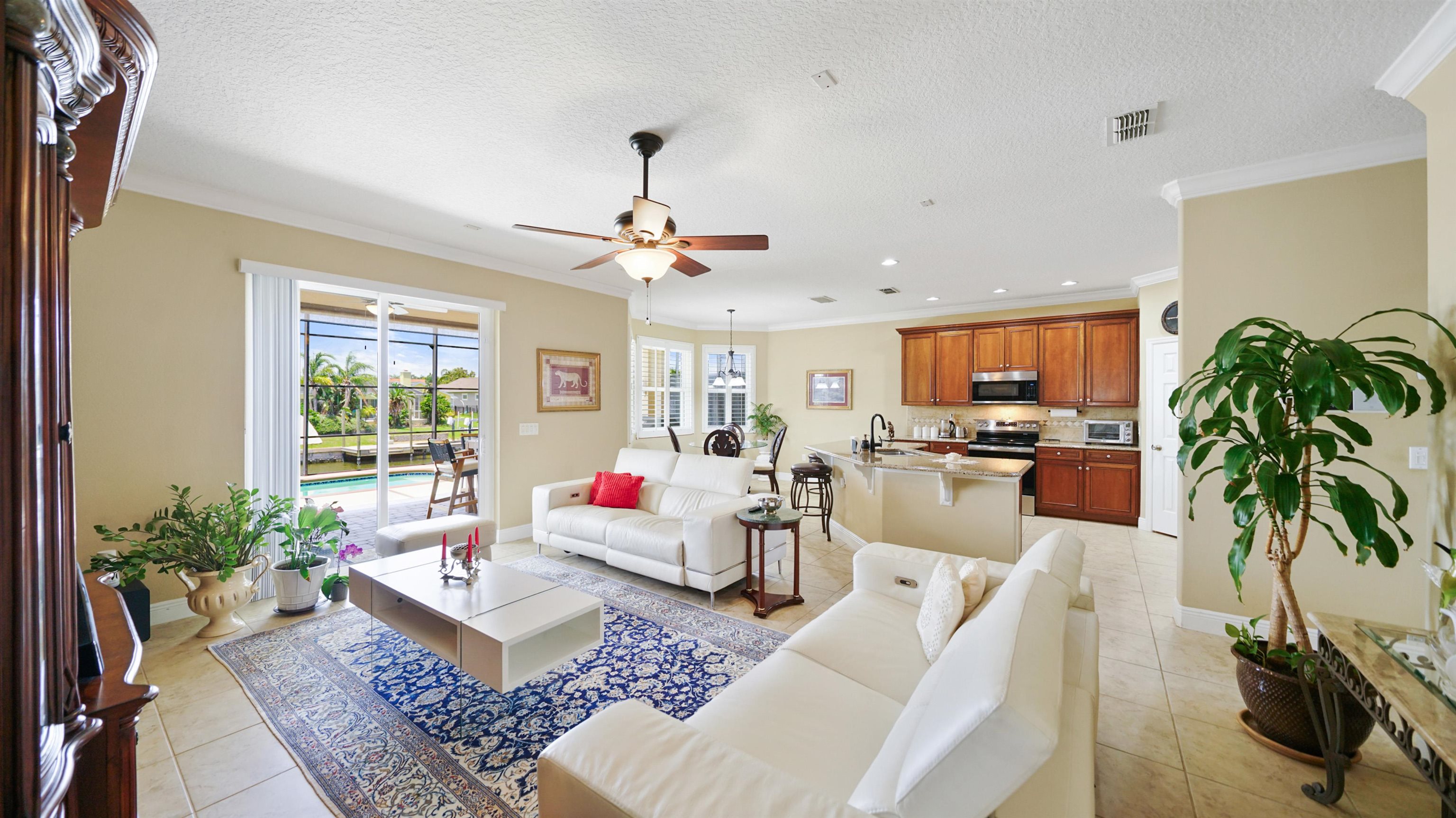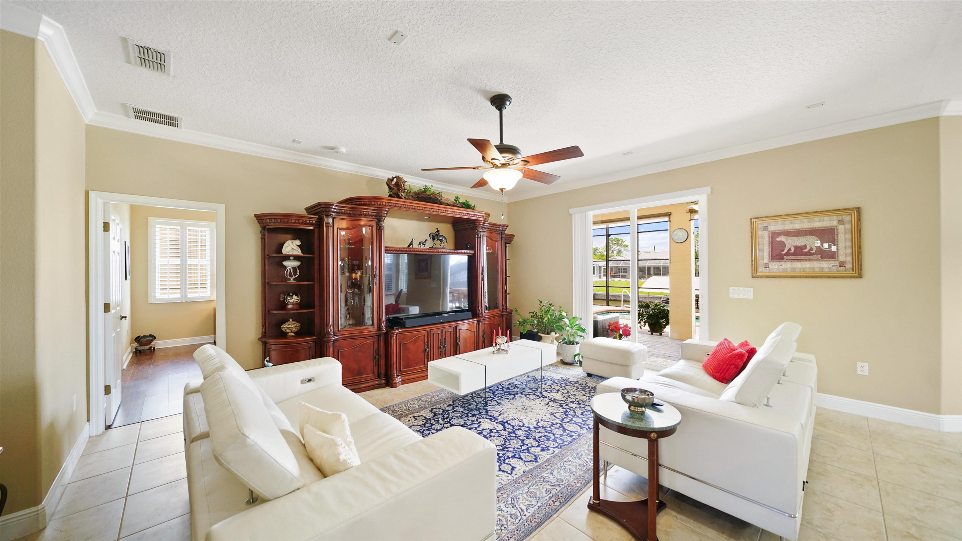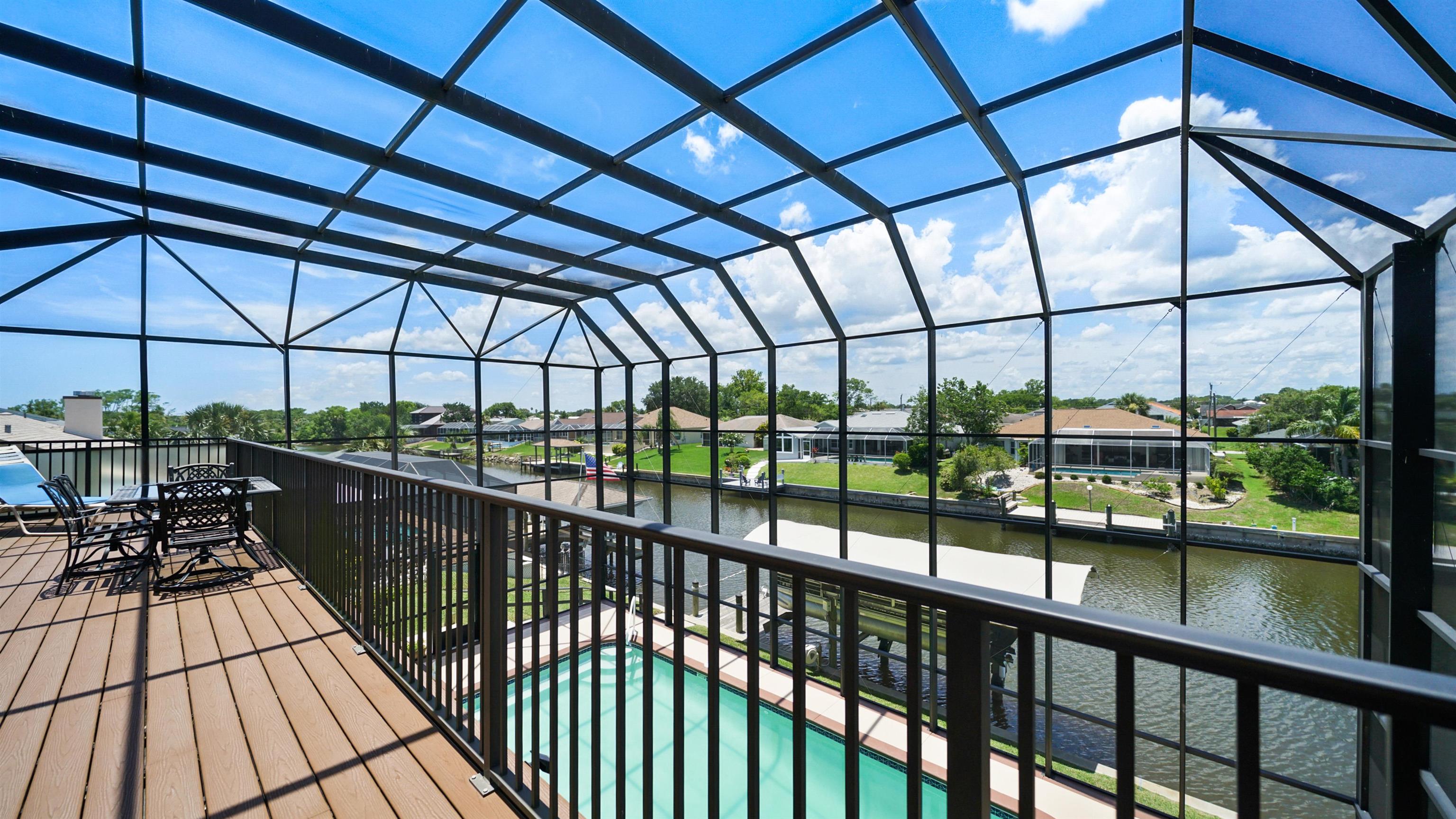 This exceptional concrete block home offers the ideal blend of waterfront luxury and everyday comfort. Nestled on a quiet canal with direct access to the Intracoastal Waterway, the property is a boater’s paradise—complete with a 31-foot dock (13. 5 feet wide), a boat lift, and full water and electric connections already in place. Beautifully landscaped with lush, low-maintenance greenery, the exterior delivers striking curb appeal without the hassle. Step inside to a bright, open-concept layout where the granite and stainless steel kitchen flows seamlessly into the sunlit living area. Elegant details like crown molding and plantation shutters add warmth and sophistication throughout. The nearly 30-foot-long pool invites morning laps or afternoon lounging, all within the dramatic setting of a two-story screened lanai. From the expansive second-story balcony, take in peaceful sunset views over the water. The spacious primary suite is conveniently located on the main level for privacy and ease. Upstairs, you’ll find three oversized bedrooms, a generous loft, and a dedicated media room—perfect for family living or hosting guests. A rare three-car garage offers abundant storage for vehicles, water toys, and more. Turn-key and thoughtfully designed, this low-maintenance home captures the very best of Florida living—boating, swimming, sunsets, and space for everyone to enjoy. All information pertaining to the property is deemed reliable, but not guaranteed. Information to be verified by the Buyer. Be advised that cameras may exist recording audio and video inside/outside the property, such as ring doorbells. Photos are digitally enhanced and could be altered, please verify.