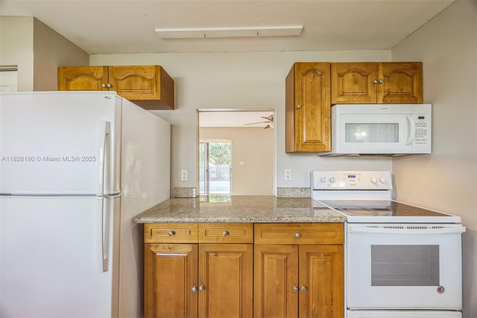 This move-in-ready home offers three bedrooms, two bathrooms, and a stunning backyard retreat with a pool and waterfront view. The open floor plan features an expansive living area and kitchen equipped with granite countertops, updated cabinetry, and white appliances—perfect for both everyday living and entertaining.