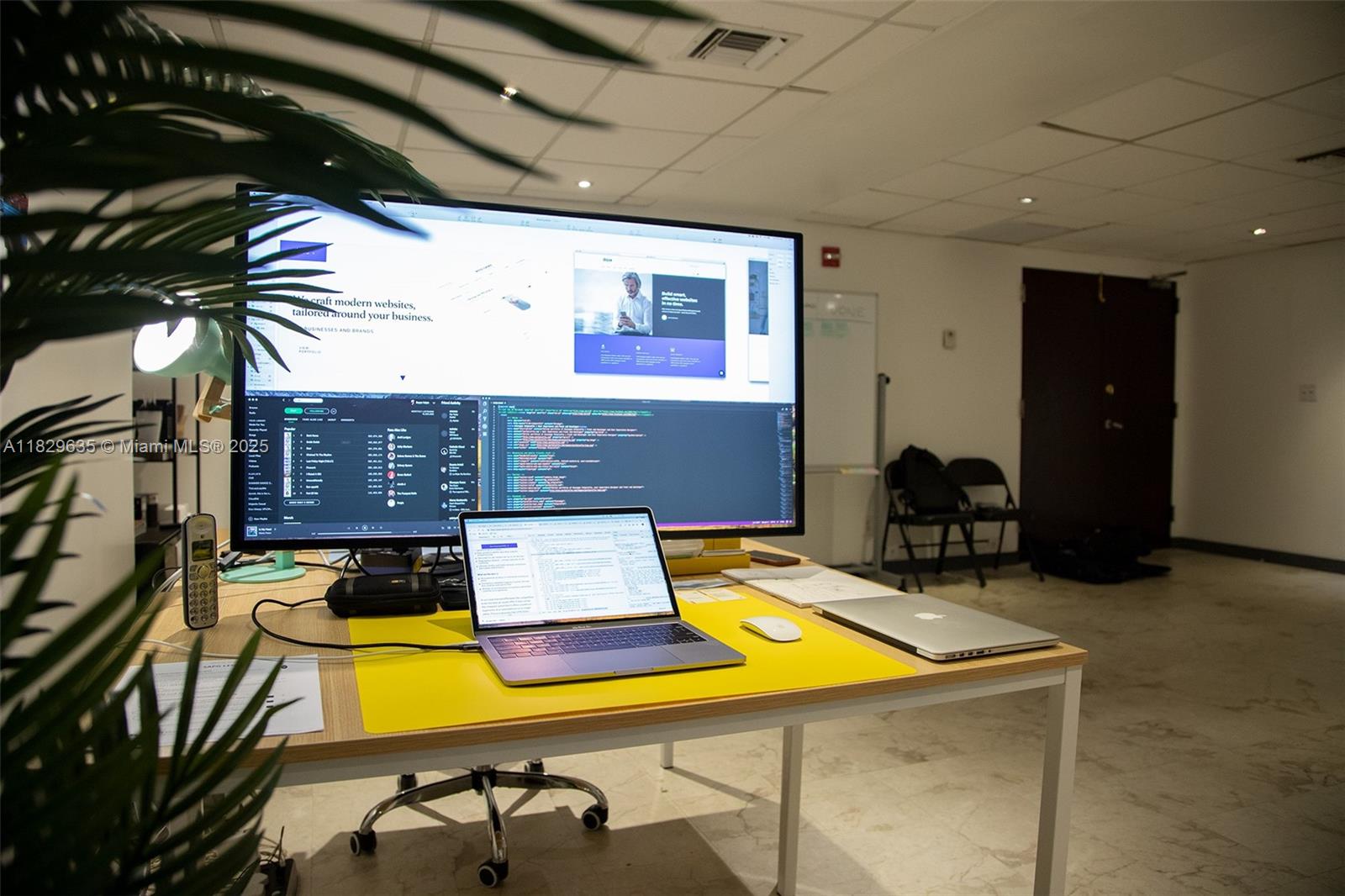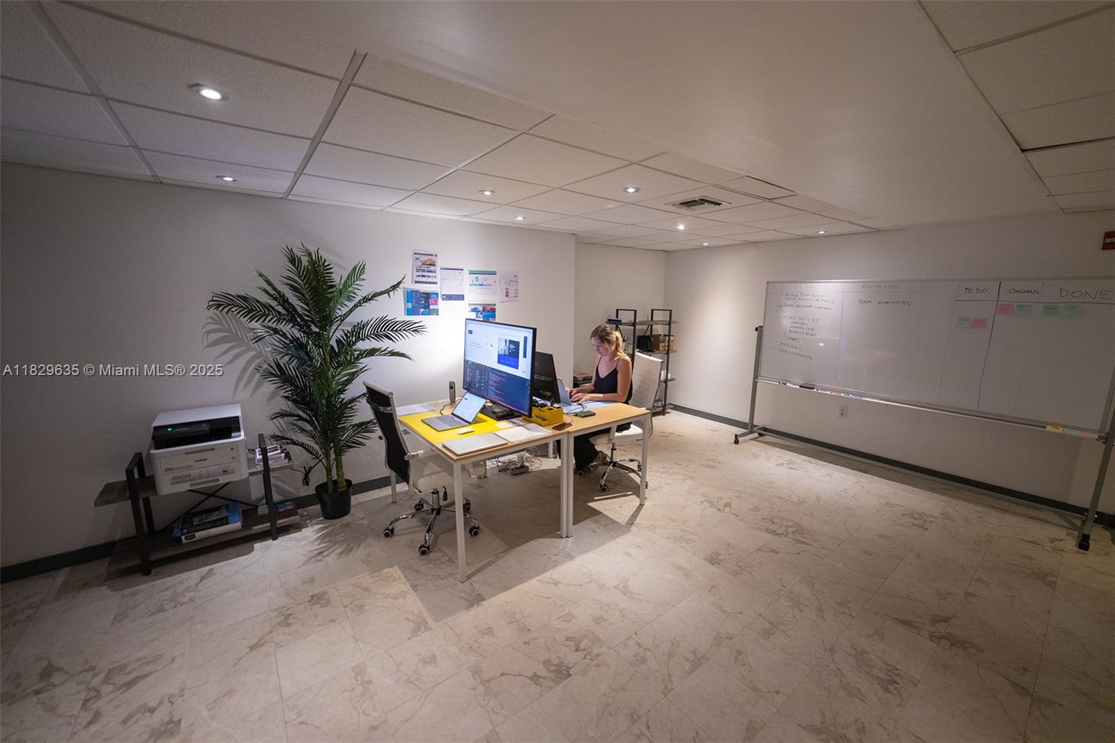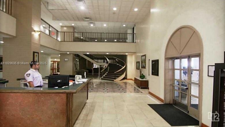 Commercial office for sale, featuring a reception area and three separate small rooms. The unit offers 670 sq ft and is located on the second floor. There is plenty of free parking available for the commercial units on the ground level. The first and second floors of the building consist of commercial offices/units, while the remaining floors are residential. Conveniently situated across the street from several restaurants, including Starbucks. Most uses are allowed: office, medical or small retail warehouse. Eligible for E2 visa investment. AC in great condition, ample ground floor parking, bathrooms, swimming pool.