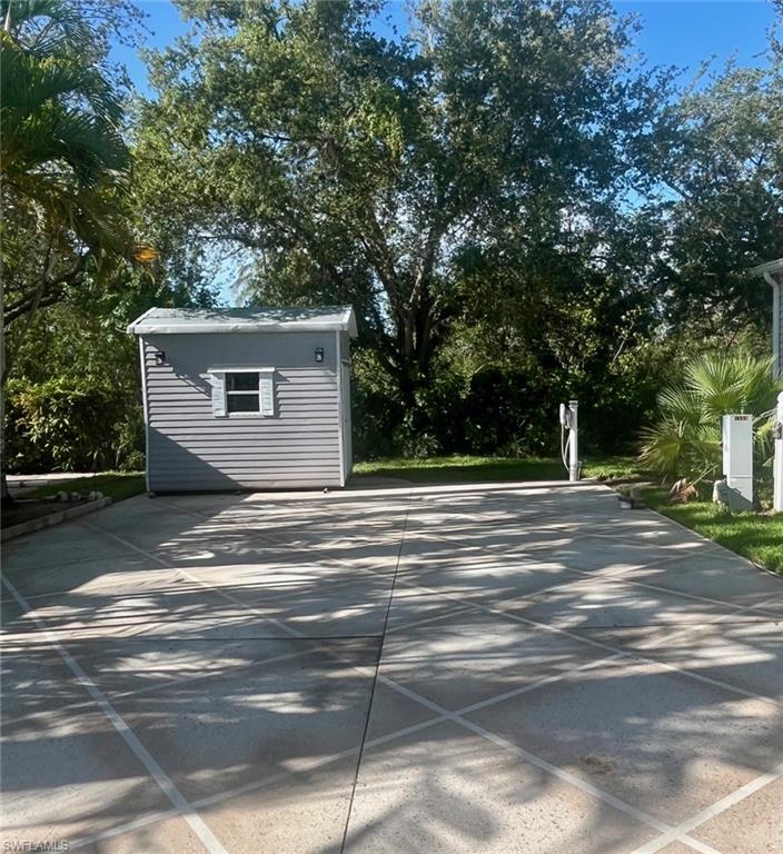 The site features a beautifully painted concrete pad surrounded by lush tropical landscaping, providing both shade and privacy. Designed as a back-in site with desirable northern exposure, it can accommodate any type of RV with ease. A 6x10 storage shed is included and comes with patio furniture and additional storage space—ready for immediate use.