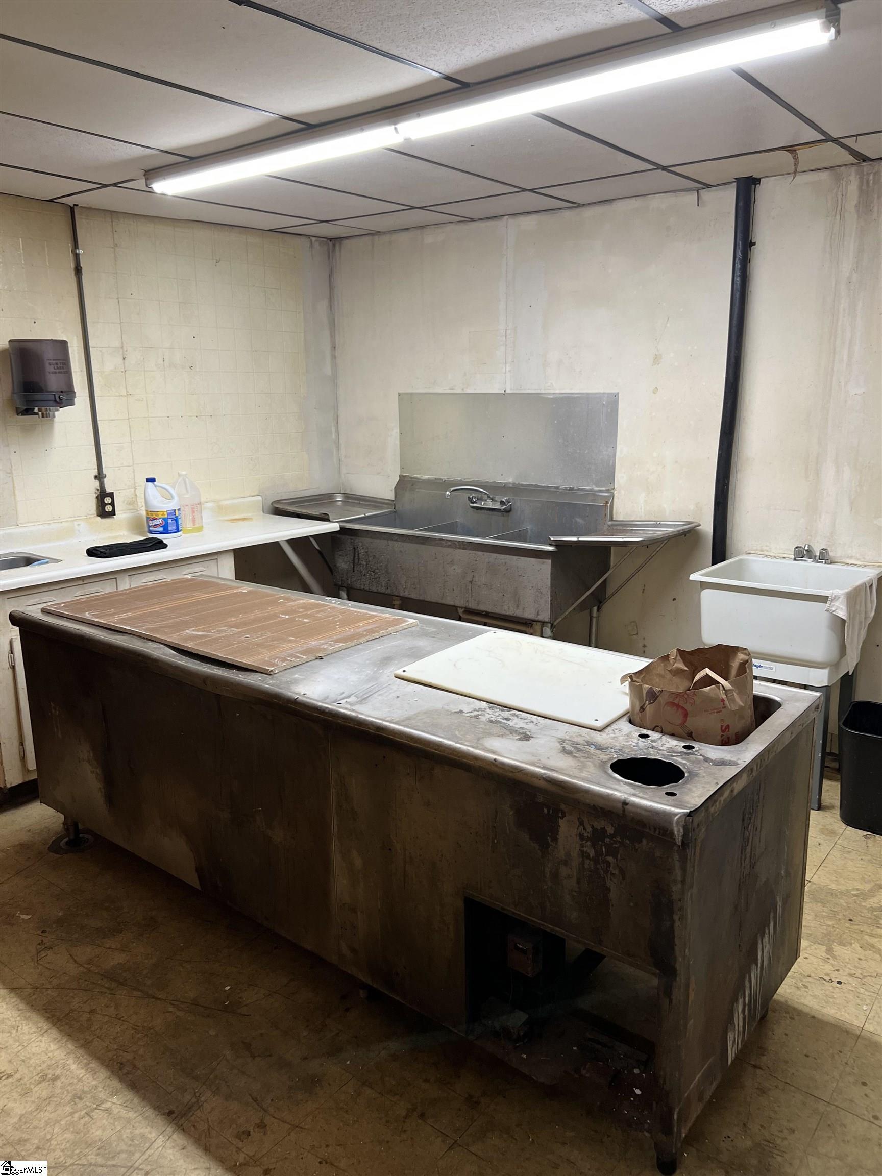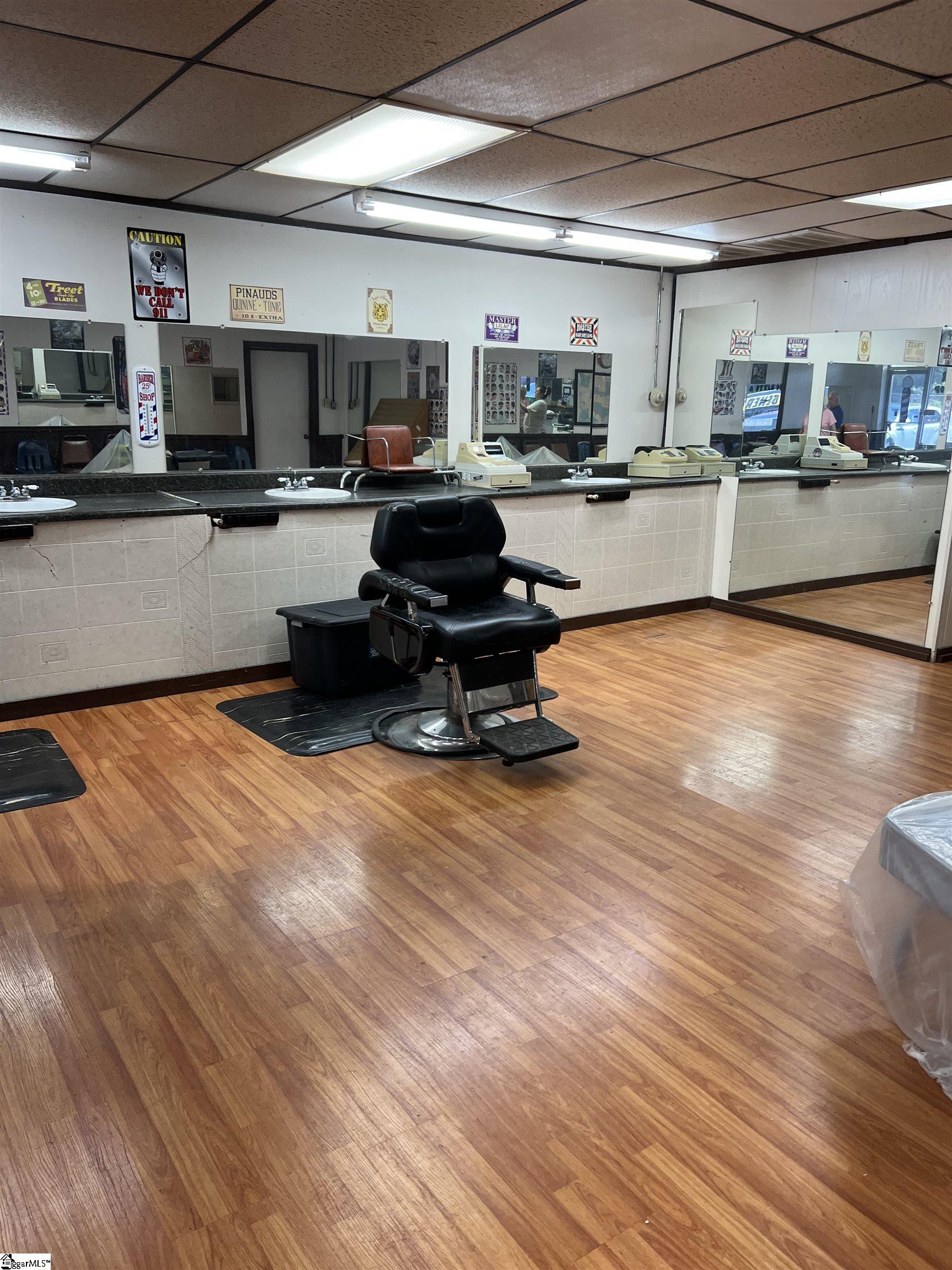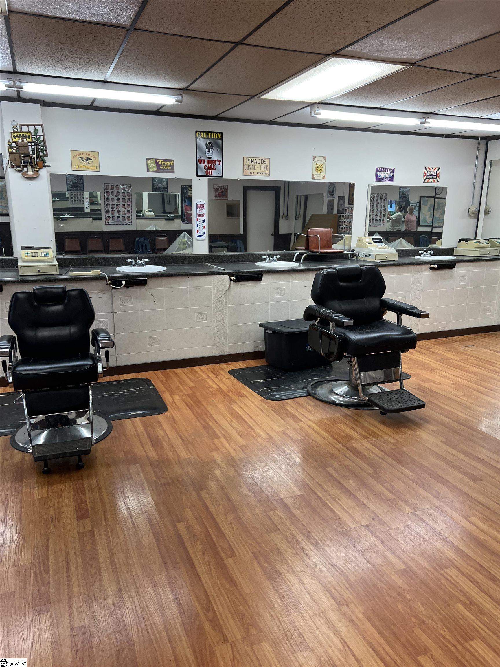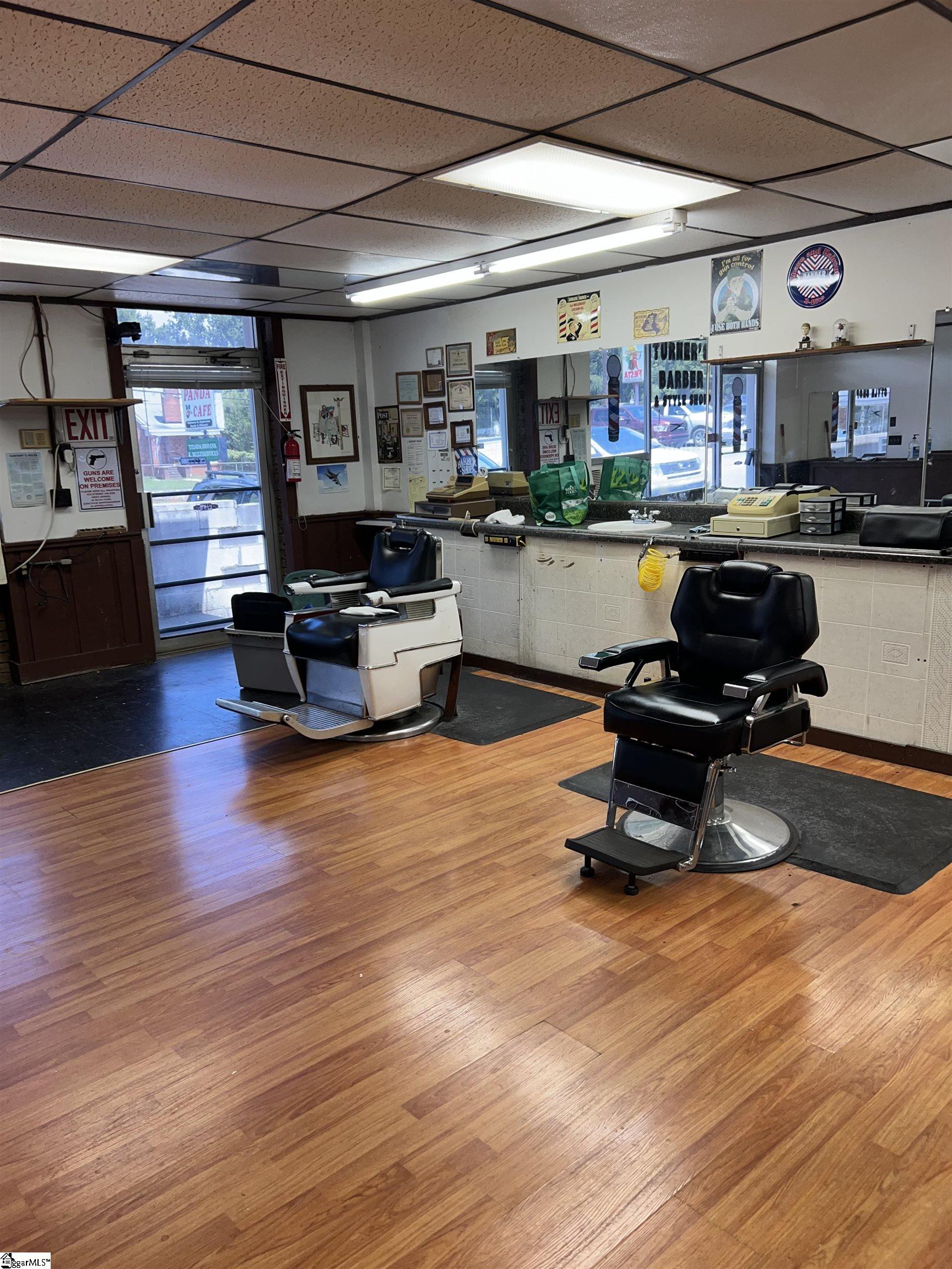 Established Barber Shop Since 1976 and Previously a Restaurant. 4000 sq ft upstairs and 4000 sq ft downstairs with interior stairs. Basement has entrance doors, rollup door, grease pit, and bathroom. Upstairs has previously been a Barber shop on both sides. Per owner, all interior walls can be removed to make one huge open space. Stainless steel commercial sink and stainless workstation are still in place. Two bathrooms and one office. HVAC installed About 15+/- yrs ago and roof installed about 15 +/- yrs ago, per owner. The structure is made out of steel and concrete. Concrete floors and block walls. Has two separate entrances and could be divided into two shops after purchase. Please be careful on stairs to basement. Steep and narrow. Light on left inside the door. Property Sold AS IS. . . . This is in a Prime location on Main Street in Williamston, and walkable to the Mineral Spring Park.