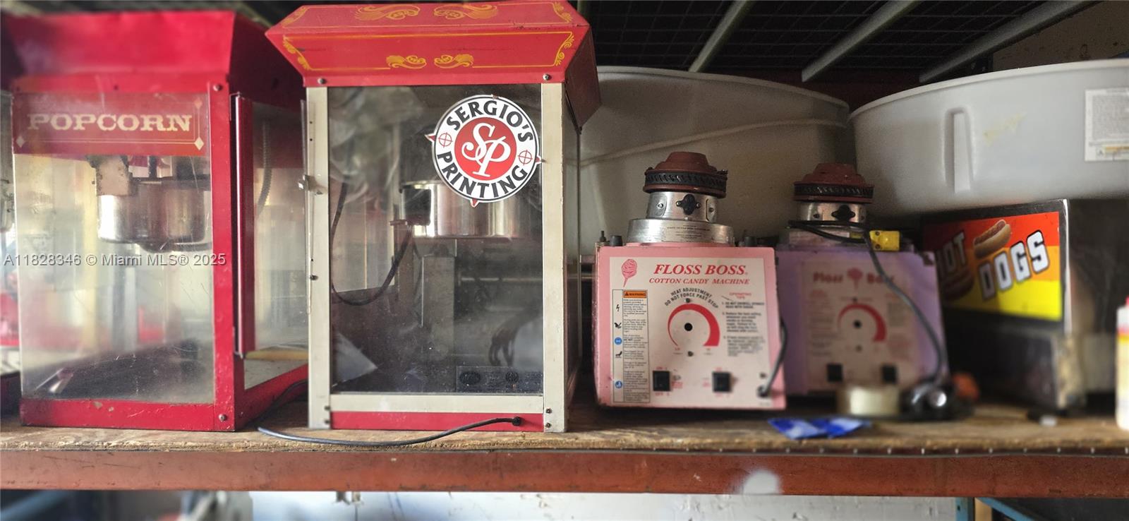 Hot dog, popcorn, snow cone, and cotton candy machines