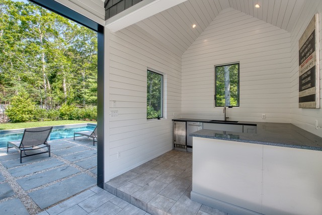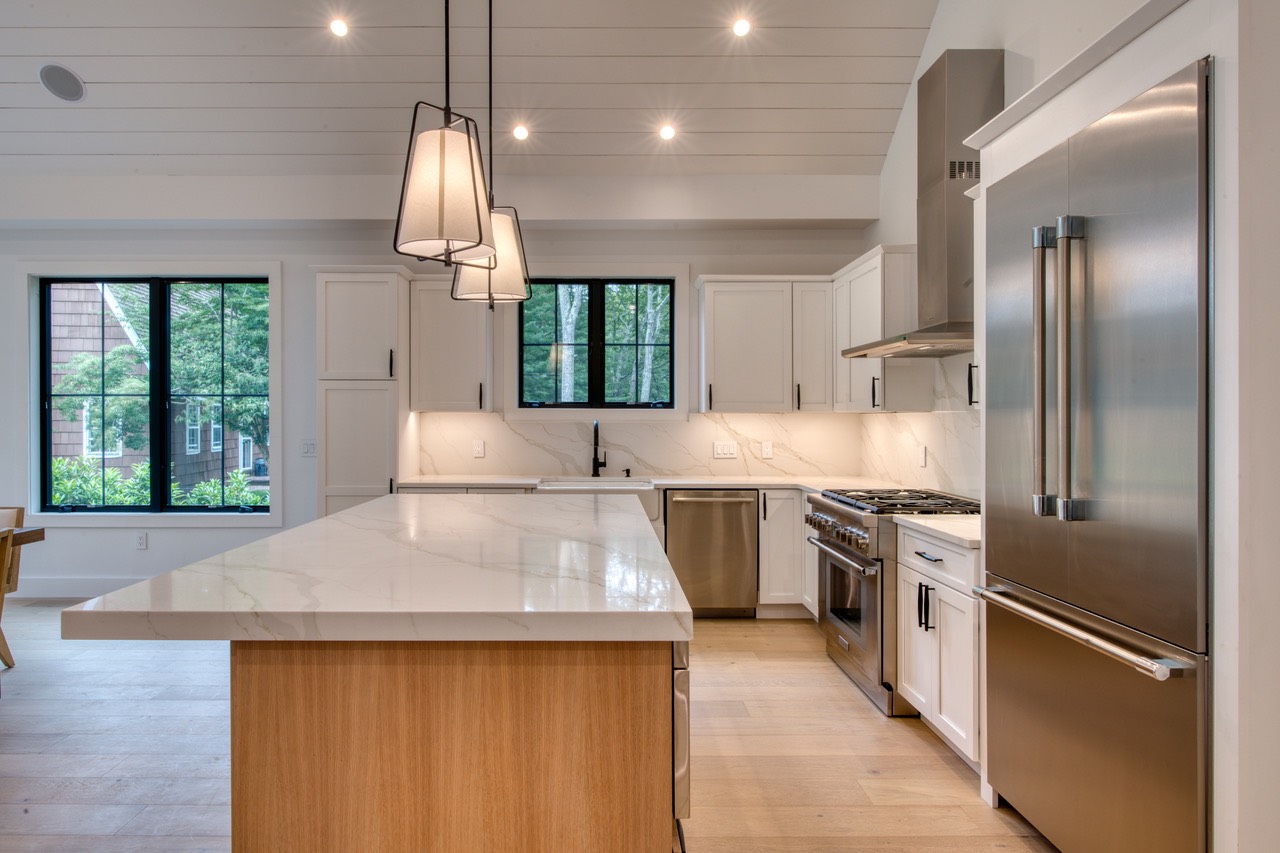 Sycamore Drive your new favorite place to call home! This modern gem features four spacious bedrooms and three and a half baths, all set on a generous half-acre in the vibrant Springs area. As you step through the door, you're met with impressive soaring ceilings and incredible floor-to-ceiling windows that fill the home with natural light. The polished concrete fireplace adds a sleek touch to the open layout, while the 8" white oak flooring brings warmth and elegance throughout. The heart of the home is the custom-designed kitchen, featuring top-of-the-line Thermador appliances and an island topped with an Arctic white and gold vein 2. 5-inch quartz countertop. The primary bedroom boasts a luxurious ensuite bath in addition to sliders out to the back deck. There are also two spacious additional bedrooms, each equipped with a generous closet. Need extra space? There's a versatile office or den with a closet, perfect for work or play. Venture to the 2000 sq ft finished expansive lower level, designed for comfort and entertainment. With 9-foot ceilings and an en-suite bedroom, there's plenty of space for everyone to enjoy. The recreation area is perfect for movie nights or game days, and the mechanics room offers ample storage solutions. Plus, enjoy seamless indoor-outdoor living with double French doors that lead to your backyard oasis. Step outside onto your stunning 400 sq. ft. mahogany deck to a beautifully landscaped yard complete with a stylish pool house, equipped with a kitchenette, bath, and outdoor shower right beside a heated 18x38 gunite pool with blue stone patio. This space is tailor-made for summer lounging and epic gatherings with friends and family. Indoor and outdoor speakers with Sonos system in place. Nestled just outside the Historic Springs district. You're only minutes from the breathtaking beaches on Gerard Drive and just a quick ten-minute drive to East Hampton Village, putting you in the best of Springs.