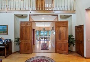This large, warm family home, situated on over 2 acres in a private gated community consists of approx. 7000' sq. of oversized rooms. Constructed with 10' ceilings on the first floor and a second floor walk-out deck, this property is designed to enjoy the beautiful views and privacy of its Forge River location. The home has loads of space and includes 6 bathrooms and 4 1/2 bathrooms including maid's quarters. If you're looking for elbow room, this is it!