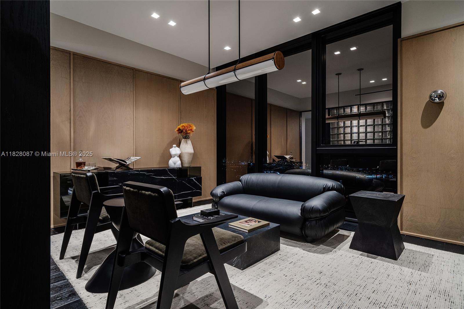 Unparalleled elegance meets sophistication in this one-of-a-kind residence. Customized & reconfigured into a 2BD layout with a theater w/ Mirro ceiling lighting system & custom blue velvet sofa that converts into a bed; expansive executive suite w/ a bespoke desk & ample seating by Monologue & StudioTwentySeven; a sophisticated library w/ custom shelving. Open living space is wrapped in floor-to-ceiling glass, revealing panoramic bay & city views. Custom-stained, burned, & wire-brushed oak floors by Urbanik Surfaces run throughout. The kitchen is a showpiece w/ Nuvolato Apuano marble countertops, Italian marble flooring, GAM Woodwork cabinetry & chef-grade appliances. The grand primary suite, accented w/ walnut paneling, features a waterfront terrace, spa-like bath, & custom wardrobe.