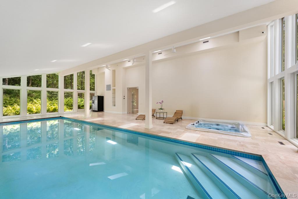 Privately gated and set on 1. 42 acres backing to a nature preserve, this 7, 355 SF modern estate offers unparalleled privacy, light-filled interiors, and resort-style amenities. Designed by architect Martin Scheffer (Zurich) and fully reimagined in 2017, the home features soaring cedar ceilings, wall-to-wall sliders, skylights, imported Italian travertine floors, a chef’s kitchen with Miele appliances, 5 bedrooms, home office, indoor and outdoor gunite pools, sauna, artist studio with terrace, and all-weather tennis court. Surrounded by lush gardens and serene beauty, this is luxury Hamptons living at its finest. (Whole House Generator, Whole House Waterfilter System, Whole House 'Desert Aire' Dehumidifier, Cogan System Constructed-superior structural integrity. )