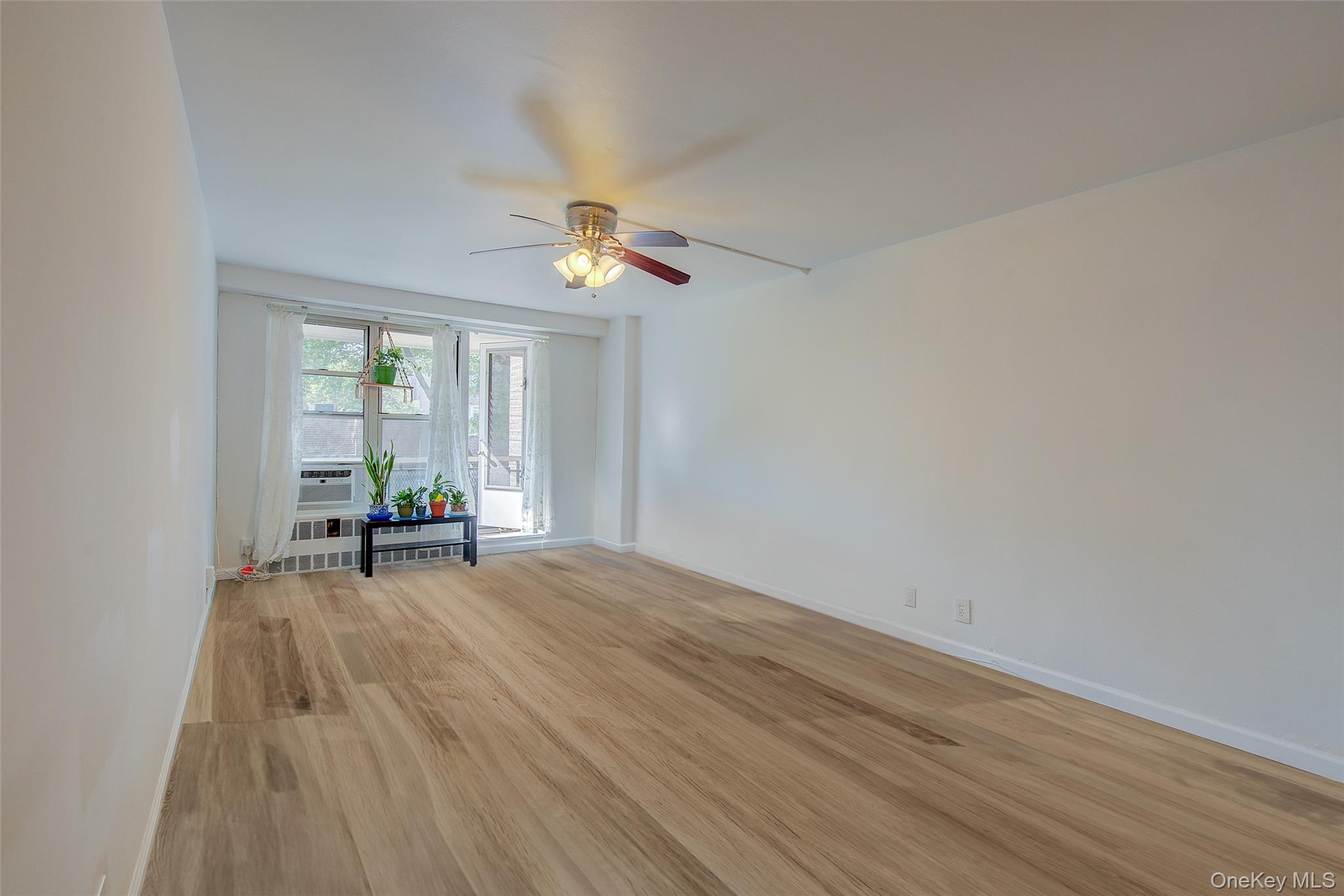 Welcome to this cozy and attractively updated 1-Bedroom co-op apartment boasting a central location and great amenities! This lovely unit showcases beautiful upgrades including new luxury vinyl floors in the living room and bedroom, upgraded lighted ceiling fans, and plenty of natural light! A renovated kitchen shines with white shaker cabinets, stainless steel appliances, and a kitchen window for natural light. The living room provides direct access to a 22-foot terrace overlooking a landscaped area, making for a perfect escape from the hustle and bustle and a wonderful haven for savoring your morning coffee or setting up your potted plants. The living room faces southeast, so as a bonus, you will enjoy the sunrise, while the open-concept dining room faces northwest for nice cross-ventilation breezes. Storage is abundant with a spacious large closet by the dining room, plus there is another closet right outside the bathroom fitted with multiple shelves and the bedroom boasts a closet with mirrored bi-fold doors! The bathroom is primed for relaxation with updated tiles throughout, fresh paint, and a built-in custom cabinet. You will love all the natural light in the bedroom, where the upgraded lighted fan will illuminate your daily activities, and wardrobe space is plentiful. About Roosevelt Terrace: This stately pet-friendly building is one of the few buildings in Jackson Heights where there is about one foot of concrete between the floors. The monthly maintenance includes the utilities. The building amenities are extensive, including a laundry room, storage room, an Amazon locker, live-in super, porters, on-site management, a large private enclosed playground, a community room, and an in-ground and above-ground parking garage. This centrally located gem is tucked between 35th and 37th avenues on 85th Street. It is close to the #7 train, bus, and subway transportation options. This Jackson Heights Historic District area places residents close to a variety of restaurants, shopping, Travers Park, and Greenmarket. Make this apartment your lovely new home!