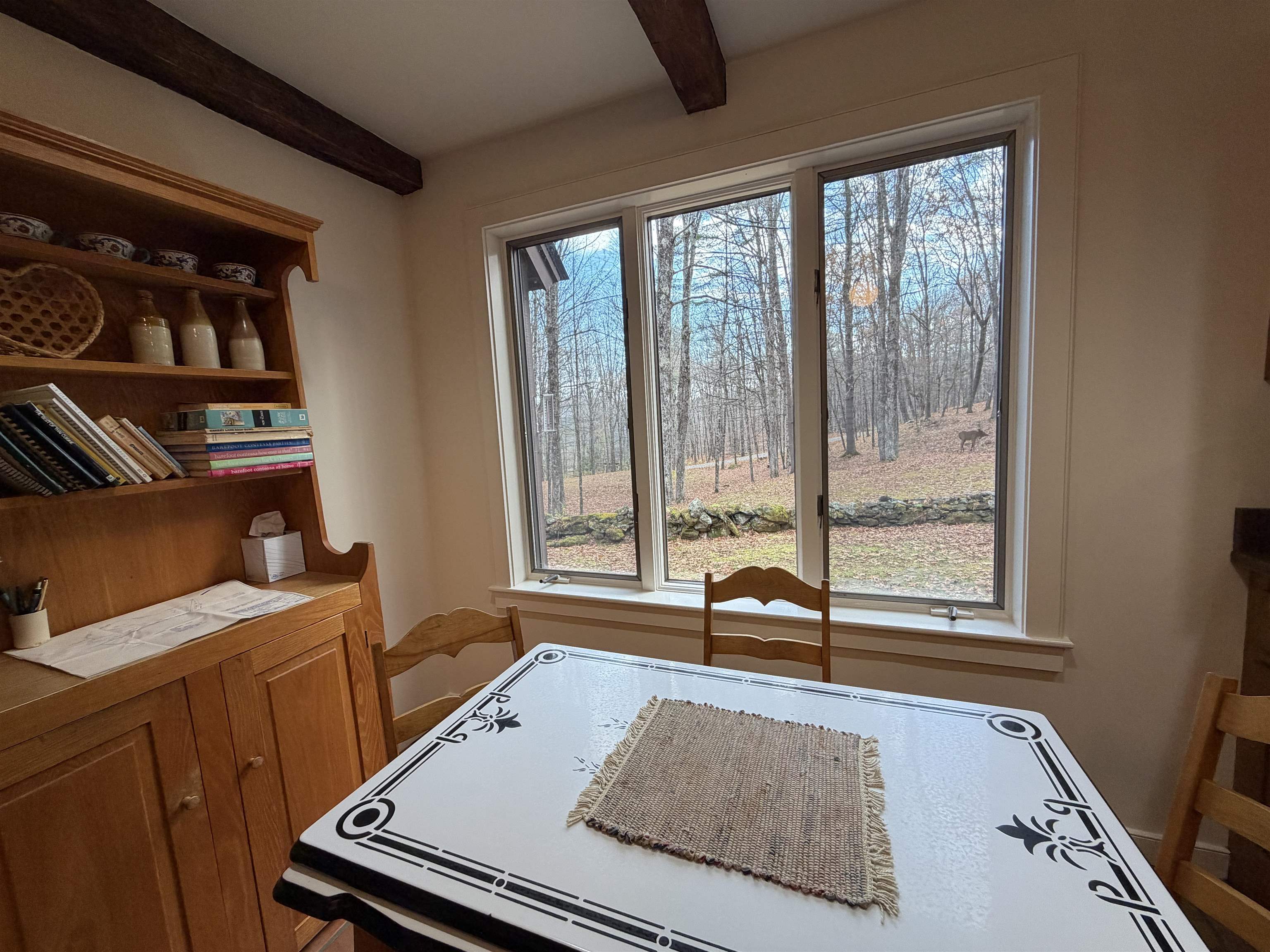 PRIME LOCATION! Tucked away at the end of a peaceful dead-end road in the Westerdale neighborhood is this Vermont Cape Cod home offers the perfect blend of privacy and convenience on just over 6 acres. Surrounded by mature trees and set on a wooded lot overlooking a tranquil pond, you’ll enjoy the calm of nature right outside your doorstep. The freshly installed deck provides a serene spot. Well-planned interior space, inside you will find a warm and inviting atmosphere, offering an eat-in kitchen enhanced by the heat from the wood stove or relax by the fireplace in the living room open to the dining room. The primary bedroom with a full bath featuring a jacuzzi tub, while the remaining rooms provide flexible options for guests. Recent updates like a new oil tanks, freshly painted interior, and a new water pressure tank ensure reliable modern living. Located just minutes from the heart of Woodstock, this home gives you easy access to local favorites like the Billings Farm and year-round fun at Okemo Mountain Resort. Whether you're into skiing, hiking, or something entirely more relaxed, there's something nearby for everyone. The neighborhood boasts a strong sense of an upscale community while maintaining a rural, secluded vibe. It’s that rare find that feels remote but keeps you close to all the essentials. Ideal for year-round living or a seasonal getaway, this property invites you to experience the best of Vermont in a setting that’s equal parts comfort and character.