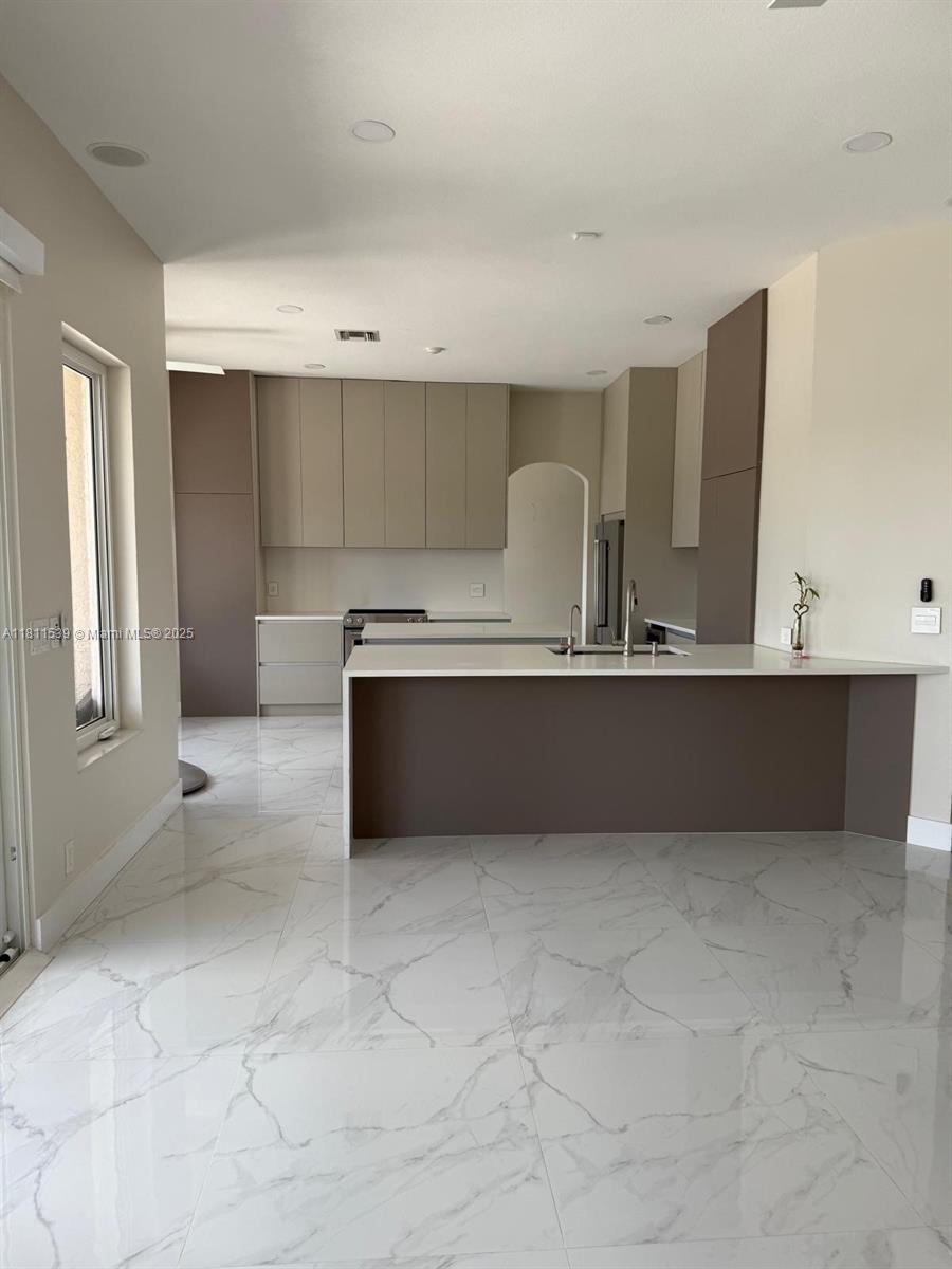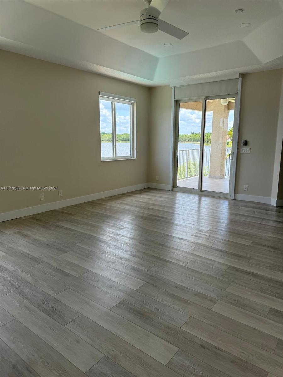 Amazing lakefront view from this beautiful two story home complete renovated with five bedrooms and four full renovated baths. This home is located in the gated community of The Island on a pie shape lot with lots of room to entertain friends and family. Sparkling pool with jacuzzi on the backyard and the most stunning views of the lake from the master suite and balcony. New roof, New and renovated kitchen, New impact windows, electric curtains, wine cooler, walk in pantry. Four bedrooms and three bathrooms upstairs and a fifth bedroom currently used as an office and full cabana bath downstairs.