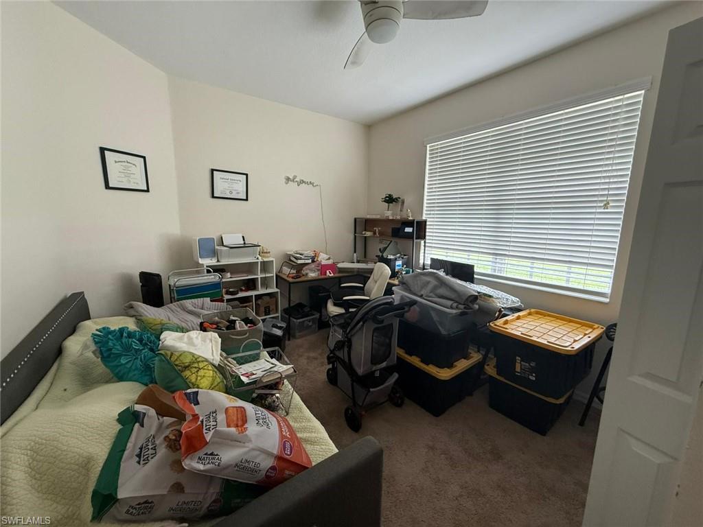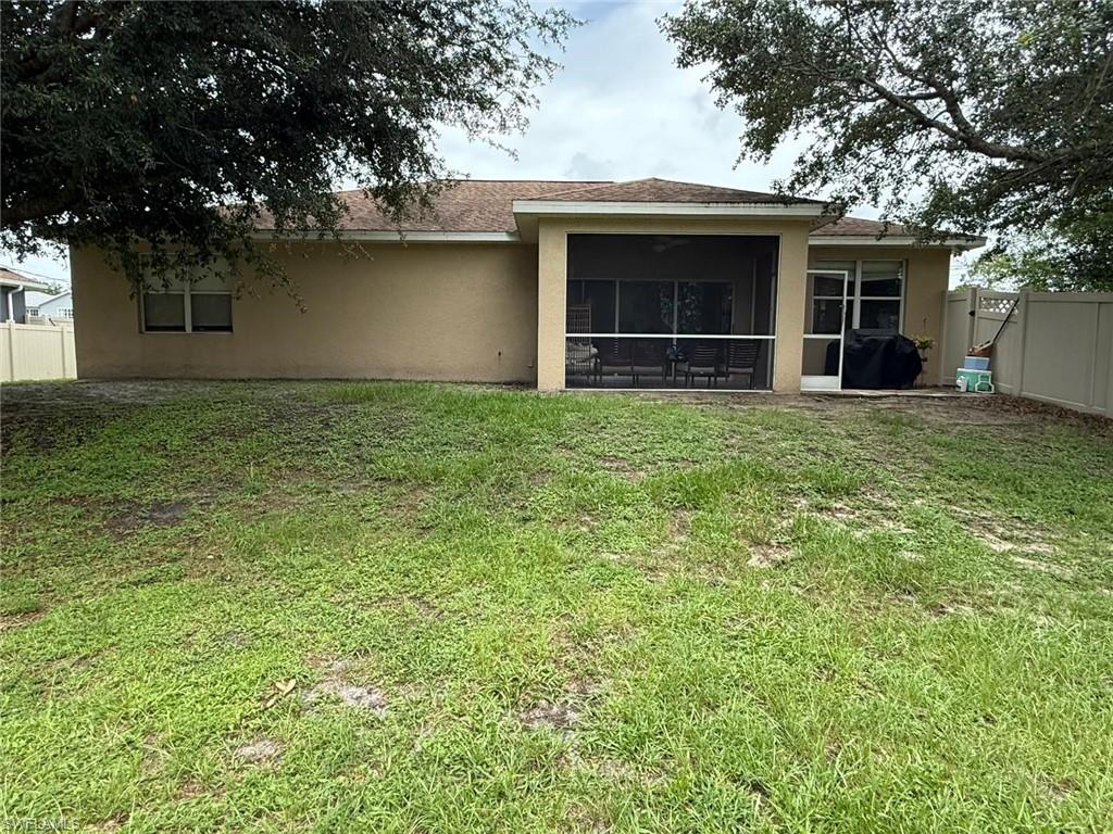 This beautifully designed 4-bedroom, 2-bathroom residence offers the perfect blend of modern comfort and Florida charm. Step inside to an expansive open floor plan filled with natural light, ideal for both entertaining guests and everyday living. The gourmet kitchen is a standout feature, showcasing sleek stainless steel appliances, generous counter space, and a functional layout that will delight any home chef. Each of the four spacious bedrooms includes its own walk-in closet, ensuring ample storage and personal space for everyone. Unwind in the screened-in lanai, the perfect spot to relax and enjoy the Florida breeze bug-free. Vaulted ceilings, ceiling fans throughout, and central air conditioning/heating provide both elegance and year-round comfort.