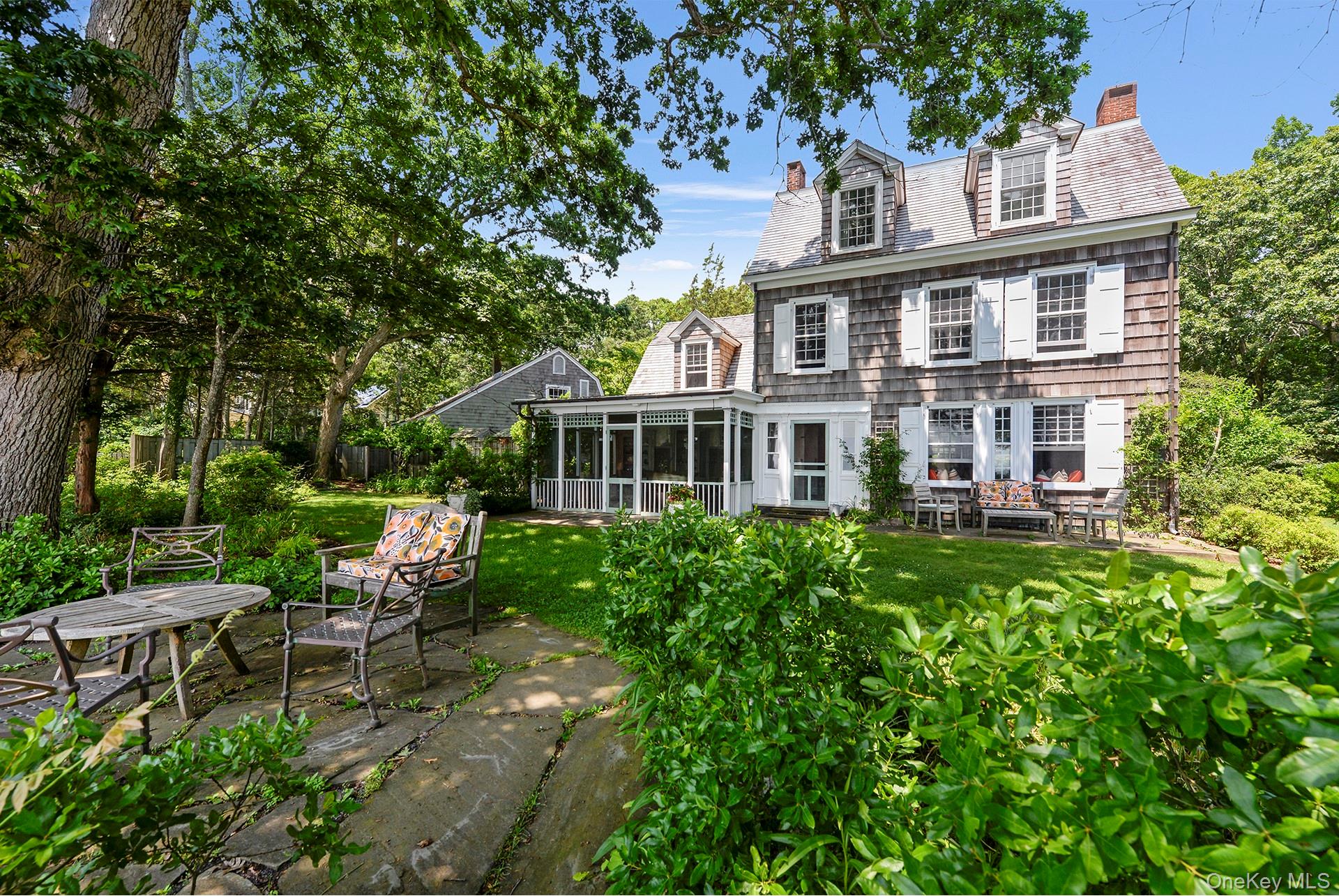 Bayfront historic artist's home in Peconic. Built in 1911, this home was the residence of 2 prominent artists. Gorgeous views of the Peconic Bay with private stairs down to the beach. Peconic bay beach is long and sandy. Several outdoor tables and benches to take in the water views. A large lawn perfect for games. The interiors are decorated with antiques and contemporary furniture. A screened in dining porch with bay views. Evening dinners with the moon over the bay. Large kitchen with a separate pantry. Stairs off the kitchen to a private room that may be used as an office and has a single bed. The 16' X 33' open living/dining room and 4 of the 5 bedrooms have mini split AC. Most of the time the bay breezes and big trees keep the home cool. High speed wifi. Side patio has outdoor shower and changing room and gas grill. This is a place to spend a few weeks and experience the old North Fork at it's best! Available 5/23/26-6/6/26 & 8/22/26-9/1226 with 2 week minimum per Southold Town code.