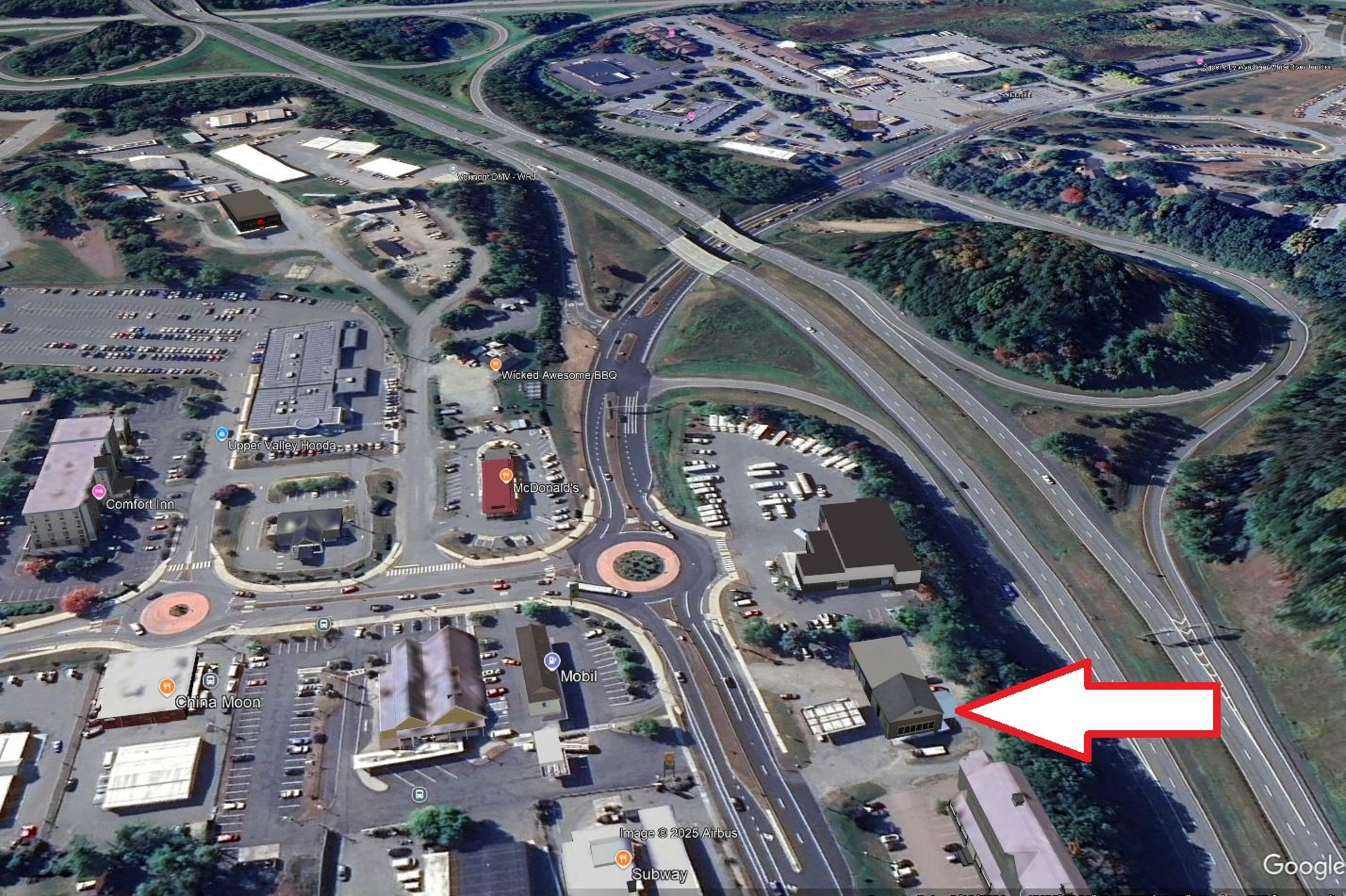 Among last of retail sites at this high demand and very limited commercial zoned properties at this intersection of I-89 and I-91. Just off ramp, visible to travelers at exit. Adjacent to new roundabout. Frontage on I-91 northbound. (sign restrictions to 25ft height, 150 sf). Underserved market for highway travelers into VT & NH. 40, 000 VPD combined for I-89 and I-91. 10, 000 VPD curbside. Lack of food choices and hospitality for this high traffic area. Best remaining site for visibility, and ease of ingress, egress. Currently 2 curb cuts. Zoning for most retail, DRIVE THRU allowed. Only site drive thru capable on main road. (Except MacDonald's nearby. Only 2 other gas stations. Neither have drive thru ability. Only drive thru is DD on "quiet side". No other food service with drive thru. Area of major auto dealerships. Possible uses- Restaurant, bank, convenience store, coffee, fast food, drive through, motel, quick lube, auto related, sales, repairs, rentals. Clean site with Phase I and II, closure report available. Former gas station, 3 repair bays and operating 2 bay car wash (newer equipment-not included, 1980 building of 3174 SF. 480 SF Canopy. Limited VT land use Act 250 review in this zone, saves time and engineering costs. Lot coverage of 90%. Height limit of 60 feet. Potential of a rare opportunity for signage visible to the Interstate. Ideal for hotel, quick serve food.