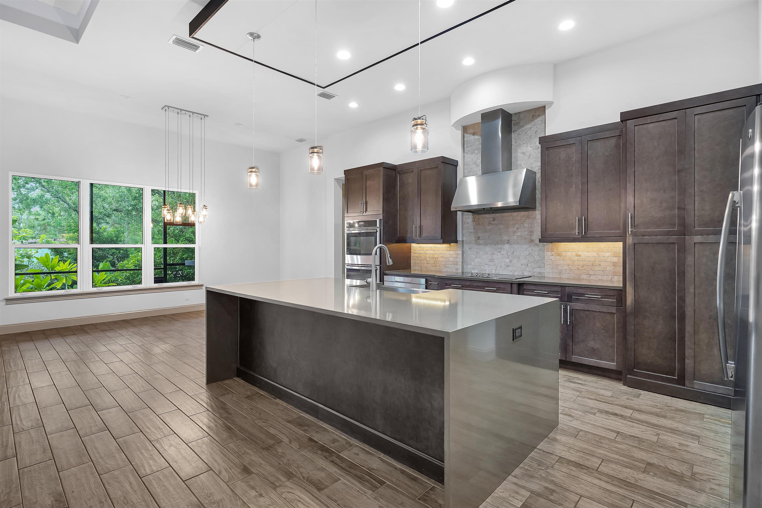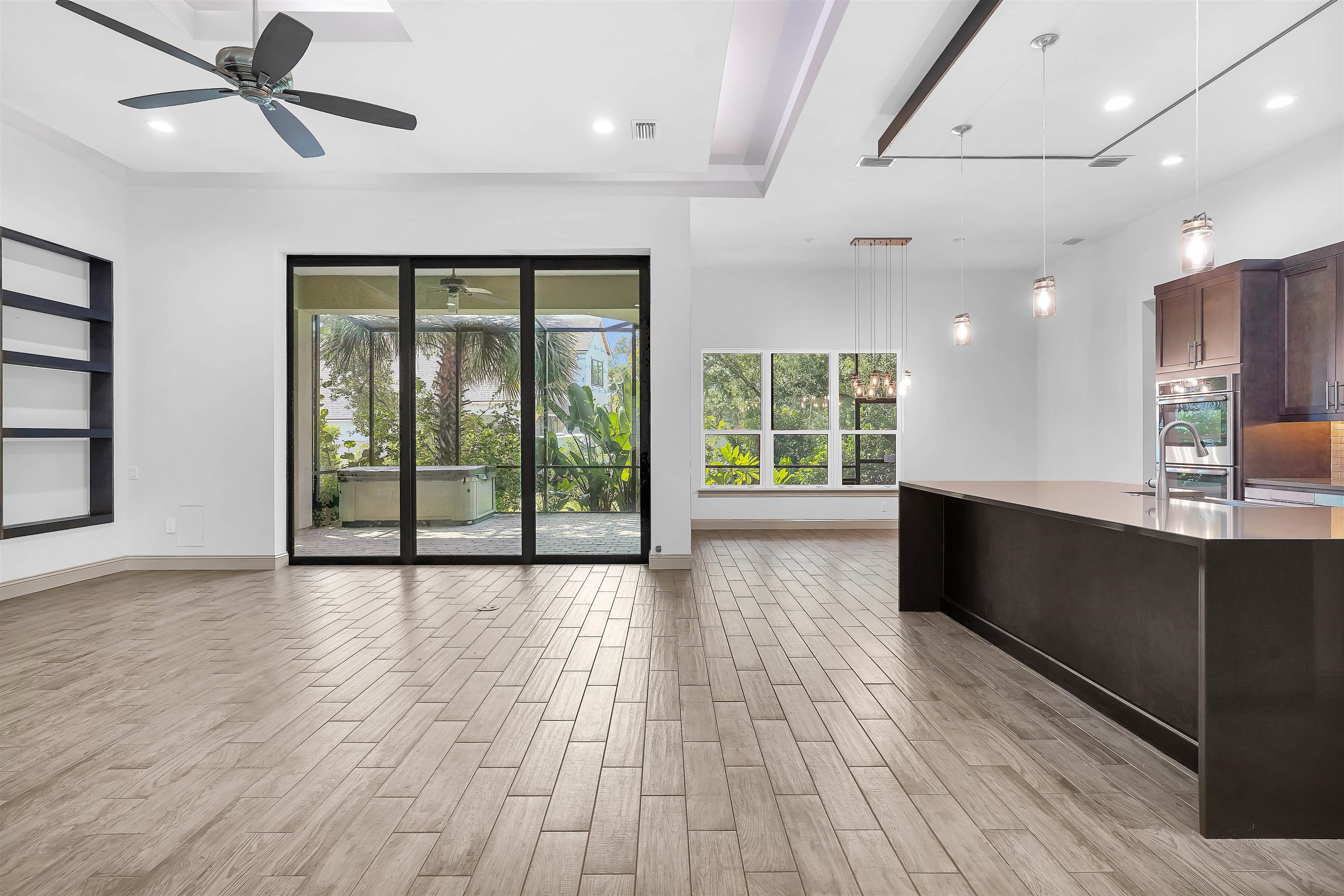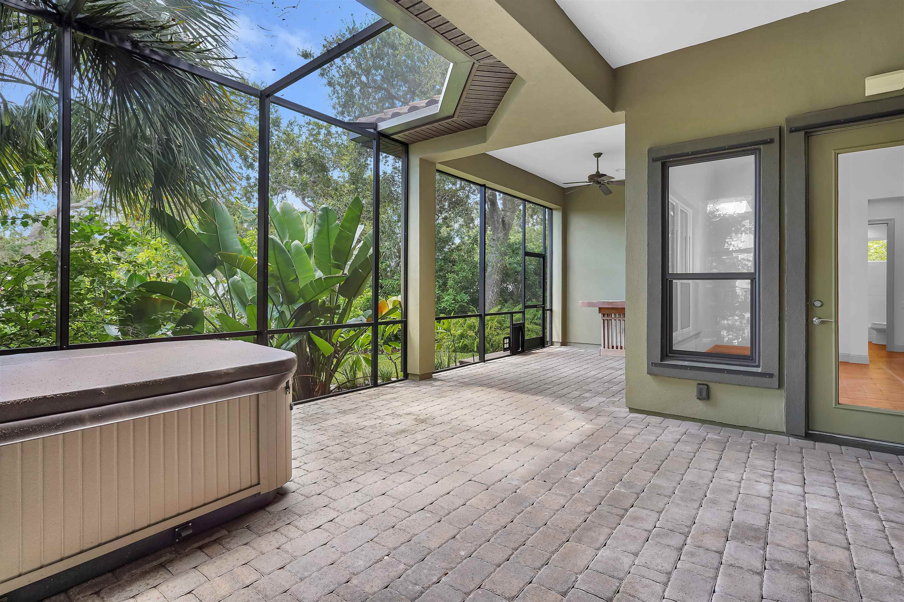 Discover your dream home tucked away between the ocean and the Intracoastal Waterway in the exclusive community of Espanita, featuring just 24 premium lots. This exceptional residence is a short walk to the beach and boasts breathtaking Intracoastal views from its private community trail. Designed by renowned builder Arthur Rutenberg, this single-story masterpiece offers three spacious bedrooms, two luxurious bathrooms, and a versatile private office/den. The open floor plan, accented by soaring 12-foot ceilings and stunning tile flooring throughout, creates an inviting and airy atmosphere. The master suite is your personal retreat, complete with a tray ceiling and a spa-inspired bathroom. The gourmet kitchen, with its elegant "waterfall edge" island, large walk-in pantry, under-counter microwave, and double wall ovens, is a culinary paradise. The adjacent dining area is perfect for hosting gatherings and the triple sliding glass doors, equipped with an automatic opener, lead you to a screened private patio. Here, you can enjoy a relaxing soak in the three-person hot tub, all surrounded by lush, tropical landscaping. This upscale community not only provides unmatched privacy but also features a serene private path where you can stroll to the ICW’s edge and take in the breathtaking sunsets. Don’t miss this opportunity to make this spectacular home yours!