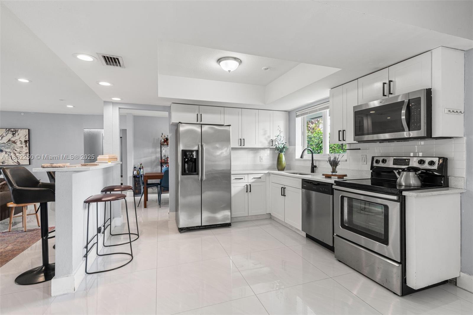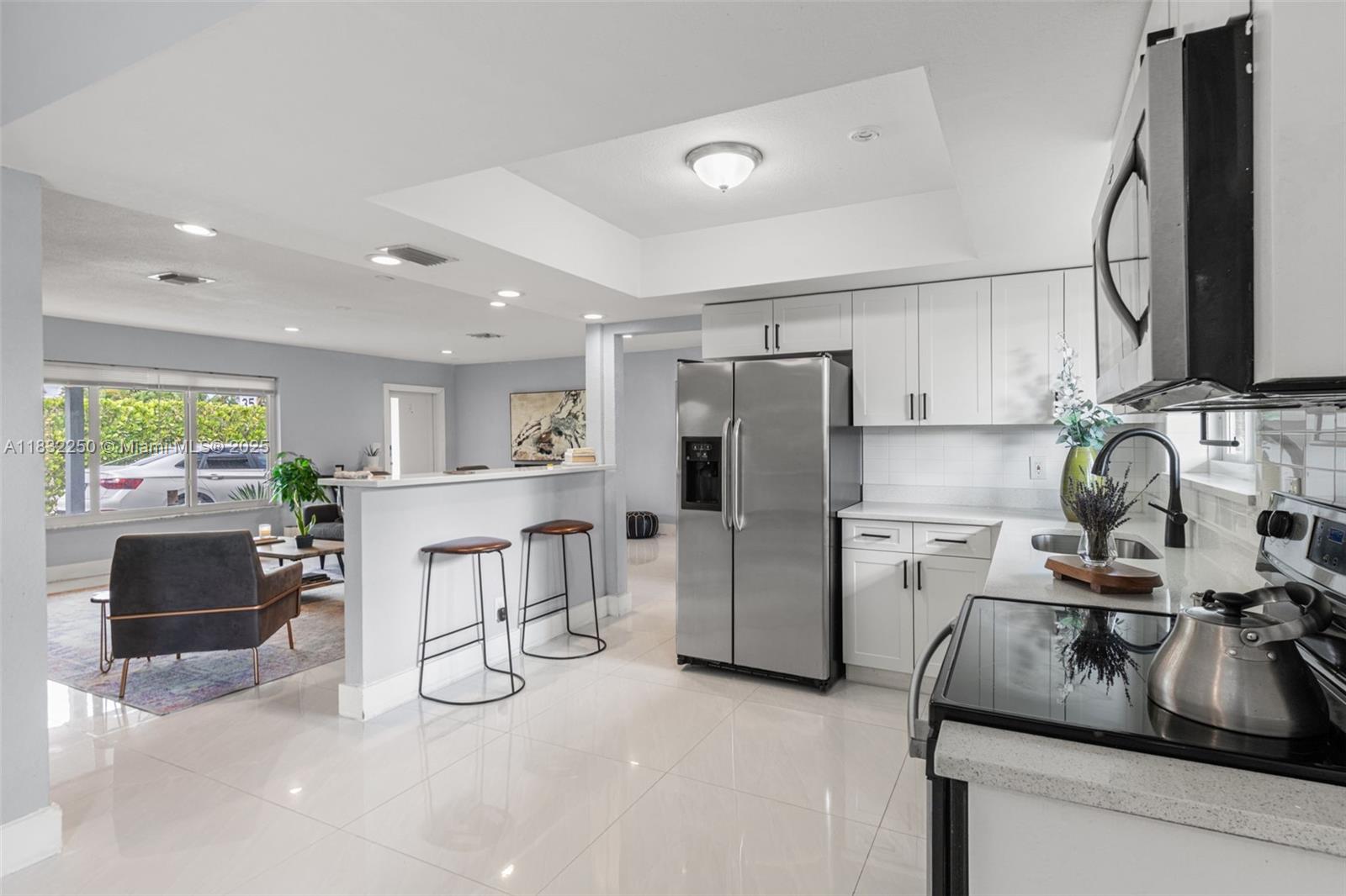 Fully renovated 4 bed, 3 bath home in corner lot in Wilton Manors. Spacious and bright! 36' x 36' tile throughout. Great for entertaining, with formal and informal dining spaces. Glass enclosed showers in bathrooms. Recessed LED lighting in living room and kitchen bar. All impact windows throughout. The fourth bedroom can be used as an office or den with private street entrance off the kitchen, and 3rd bathroom in the 2-car garage. Beautiful outdoor living space with yard, built-in grill in outside patio, with plenty of additional space for entertaining.
