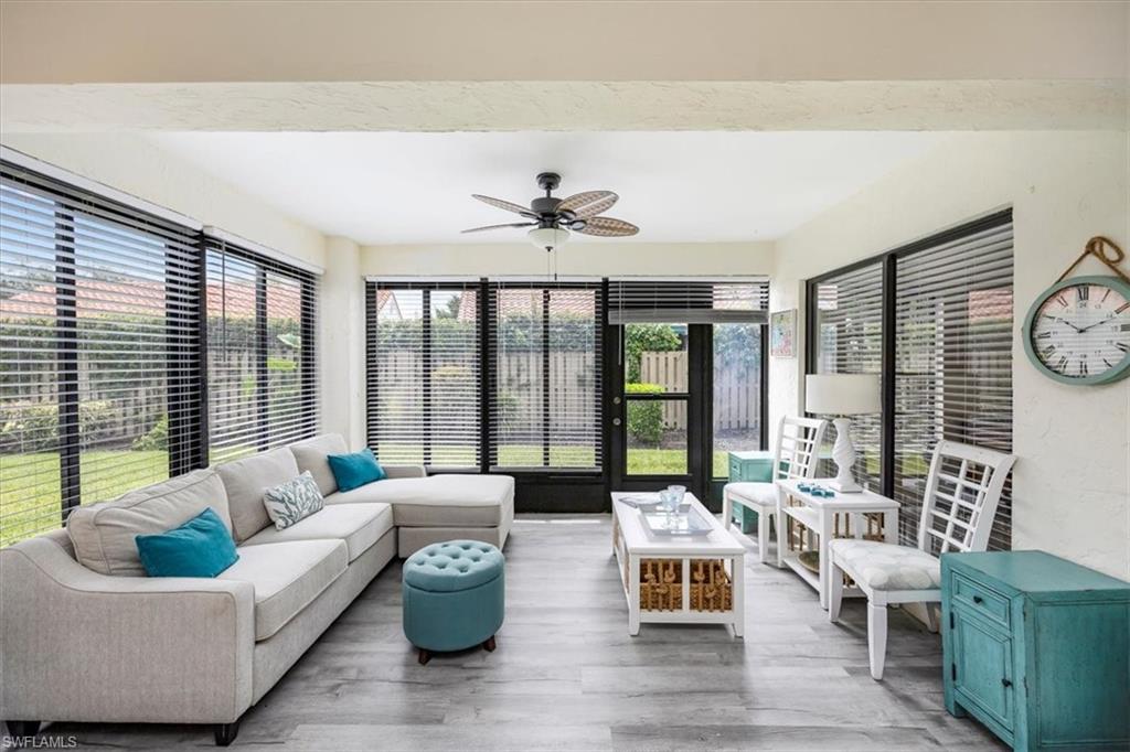 Welcome to this beautifully updated 2-bedroom, 2-bath attached villa in the highly sought-after gated community of Beachwalk. Just a short stroll or bike ride to Vanderbilt Beach and within walking distance to the vibrant dining, shopping, and entertainment of Mercato, this home offers an unbeatable location! The split floorplan provides privacy and comfort, while the newly remodeled kitchen features stainless steel appliances, quartz countertops, and a eat-in kitchen overlooking one of the two outdoor seating areas. Both bathrooms have been tastefully updated, and the enclosed lanai under air adds valuable extra living space with an abundance of windows overlooking the lushly landscaped backyard. Enjoy resort-style amenities including a 24-hour gate attendant, community pool and spa, six tennis courts, bocce, exercise room, and onsite property management. This is the perfect opportunity to enjoy the Naples lifestyle in a prime coastal location.