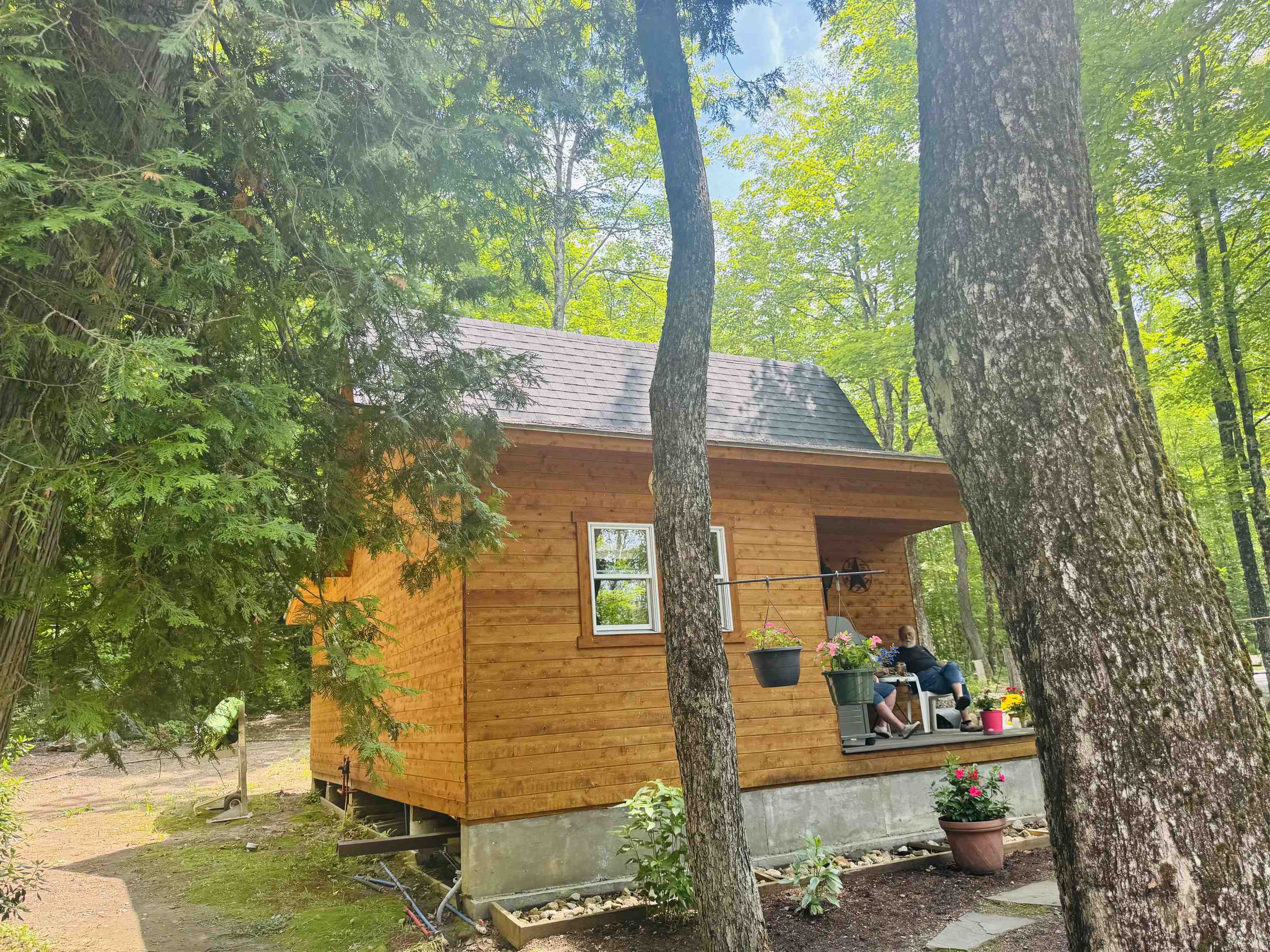 A HUGE price decrease! This is a cute as all get out, lovingly custom crafted compound on . 70 acres that includes a 50 ft ROW to the famed Seymour Lake. 2 bedrooms, 1. 5 baths is what this cottage has. These people live life! The camp lives bigger than what it sounds with a tremendous amount of thought put in to it. Outside is a hand crafted stone patio that is perfectly shaded to allow just enough sun but still keeps cool. At night, enjoy the warmth of a fire pit. There is a He shed, a She shed that could be easily converted into a bunk room and a sugar house where there is 5 gallons of maple syrup just waiting to be made. The 50 ft ROW with only 3 users is a 20 second walk. There is a shared dock with the neighbor and boat moorings too. This is a must see. The sellers realize that they have had a great run but must move on to the next stage. Most everything can stay. It is possible that there can be some owner financing on a case by case basis. In fact the owners would prefer this scenario. This is a great deal waiting to happen!