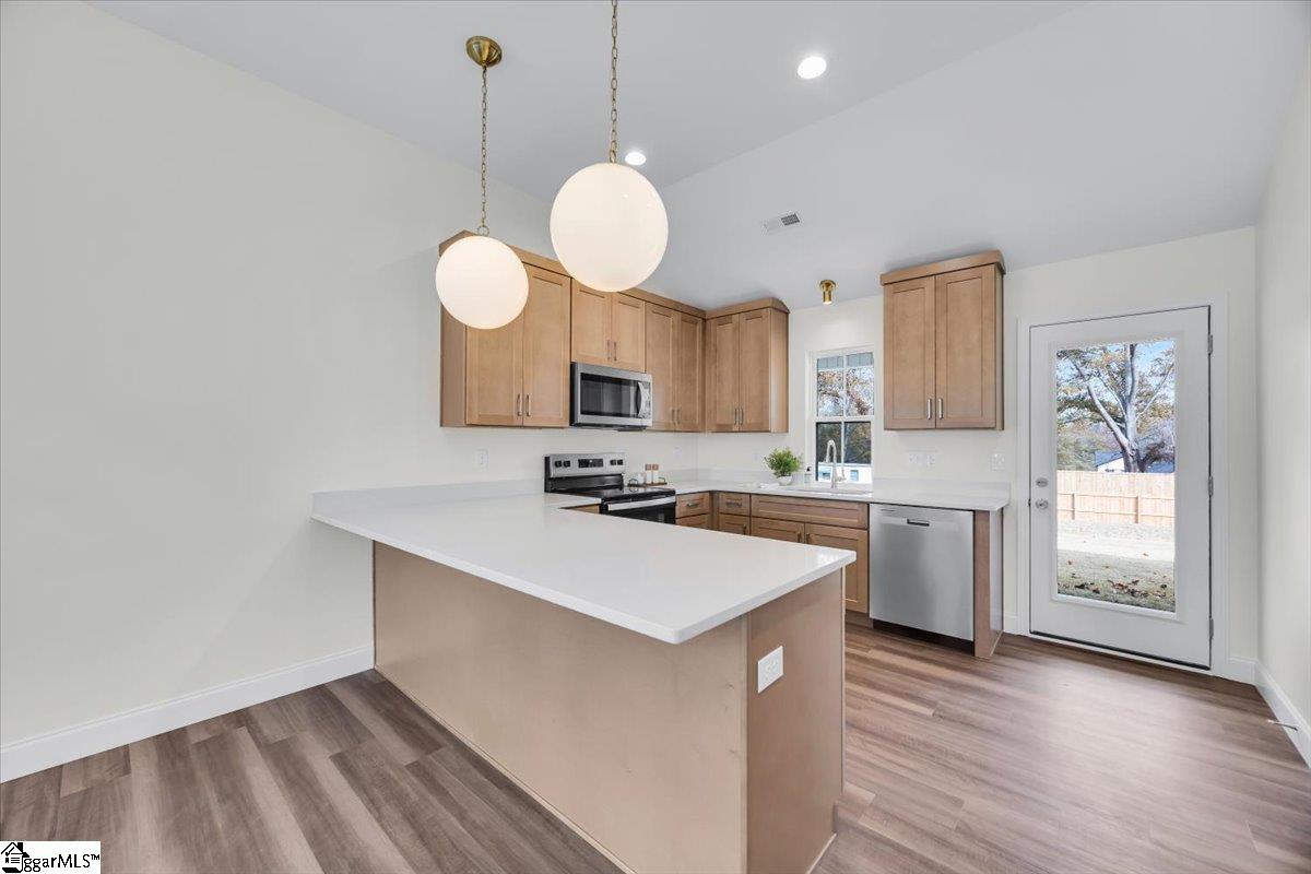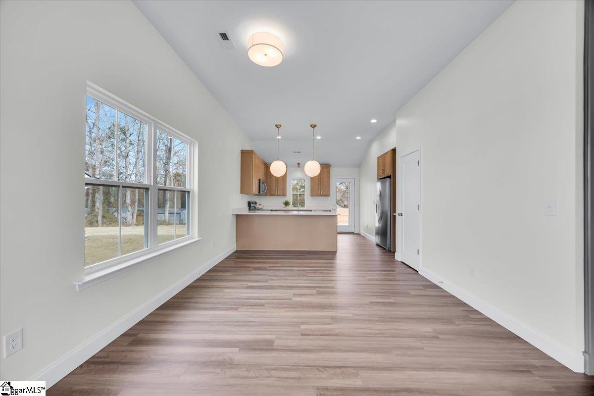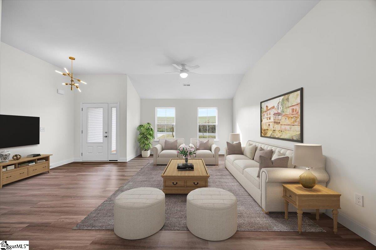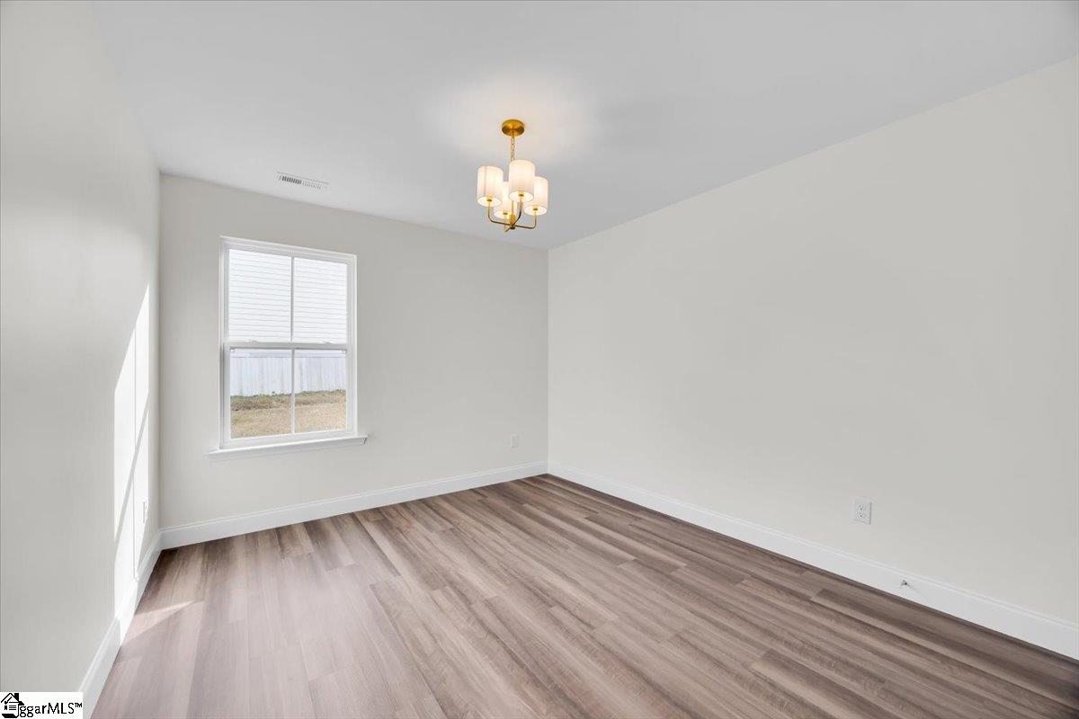 Welcome to your brand new home! This home features a peaceful area without HOA restrictions! The creamy exterior, brass lighting and a lovely soft green front door will have you sold and the sodded yard is ready for you to enjoy! Inside you have a soft green accent wall perfect for a drop zone or artwork. The living room features a ceiling fan and is open to the dining room and kitchen. The kitchen has wood cabinets, quartz countertops, and stainless steel appliances. An upgraded LVP is durable and beautiful and it runs through the entire home. Down the hall there is a walk in laundry room and laundry sink. The guest bathroom has a tub/shower and wood vanity with quartz countertop. There are two guest bedrooms. The primary suite has a tray ceiling and large window as well as an ensuite bathroom. The ensuite has dual vanities with wood cabinets and quartz counters, a walk in shower with a tile surround, and a separate toilet room. There is also a walk in closet. This home also has a 2 car garage. The location is convenient to Campobello and minutes from downtown Landrum and I-26. Make it yours today.