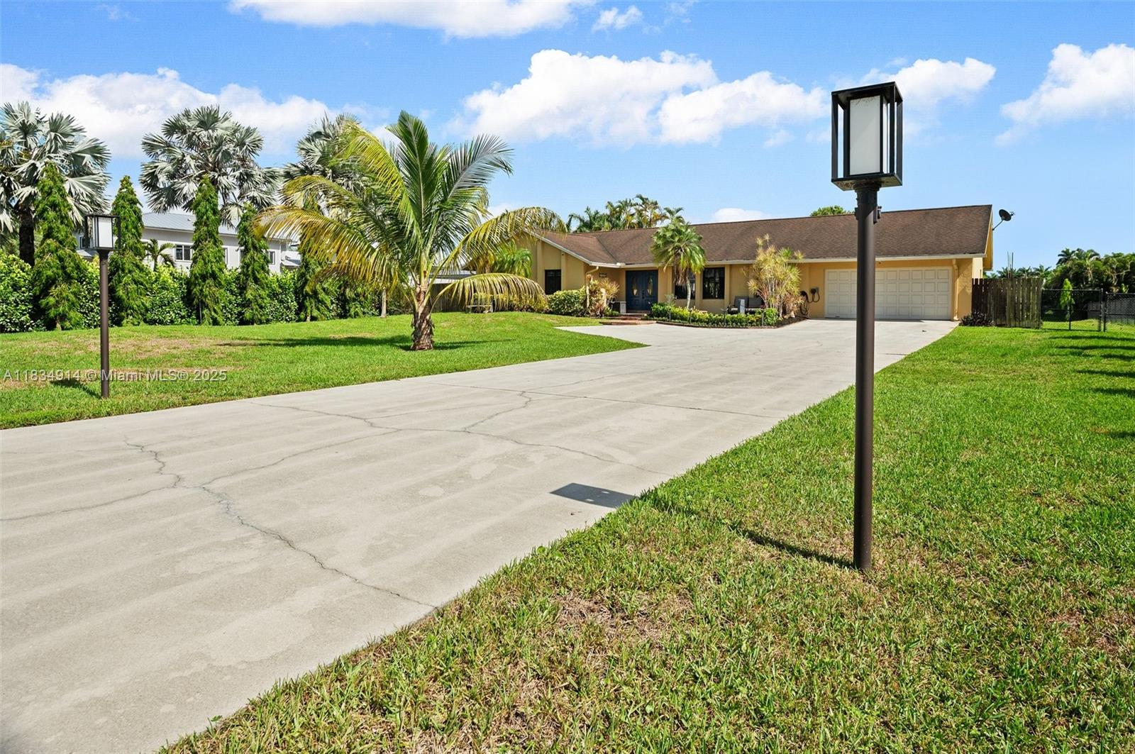 Discover this exceptional opportunity to own a beautifully maintained 3 BED / 2 BATH home situated on a true builder’s acre in one of Davie’s most desirable areas – just minutes from Southwest Ranches. Surrounded by lush, mature landscaping, this serene property offers privacy, space, and flexibility for RVs, boats, horses, or future expansions. Spanish tile flooring throughout, a stylish kitchen with granite countertops, and impact windows for peace of mind. Step outside into your personal oasis – a huge covered patio ideal for entertaining, overlooking a sparkling pool and expansive green space. Doble Washer connection .