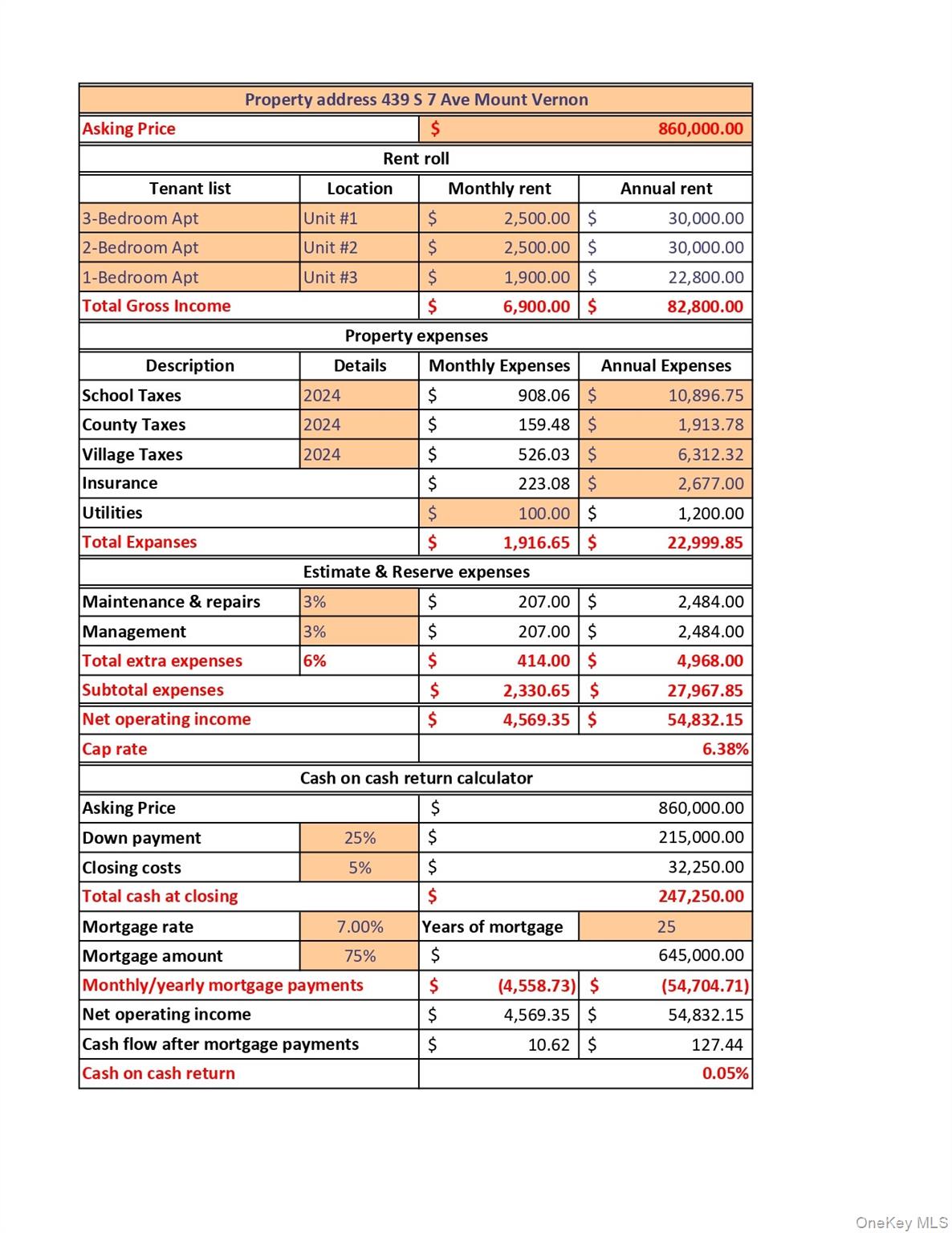 Appointments phone #: 1 201-614- 5749 Beautifully maintained 3-unit property in Mount Vernon with strong rental income. Each unit has split units for heating & A/C. Branded modern kitchen, updated flooring throughout, and good tenants in place. Great opportunity with low maintenance and upside potential!