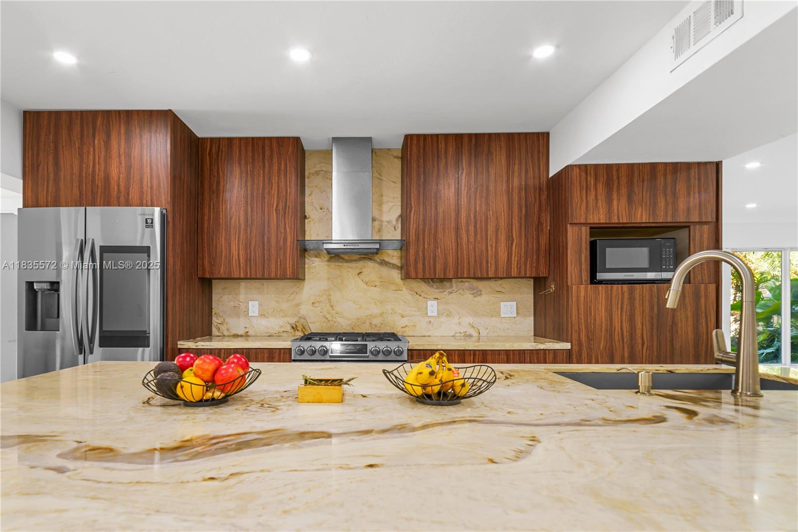 Welcome to this beautifully updated 4-bedroom (two master bedrooms each with direct access to the pool area), 3-bathroom home boasting 2, 875 sqft! conveniently situated near Coral Reef Park. This property features extensive improvements, including new air conditioning, new PBC plumbing, and flooring, along with a remodeled kitchen, 2 spacious master bedrooms and the convenience of a gas generator connection. Outdoor highlights include elegant marble flooring, connections for an outdoor kitchen, and a gas pool water heater for cost savings. A surround sound system in the master bedroom, mosquito screens for the pool area, impact windows for safety, a salt system in the pool, and an outdoor shower for your convenience.