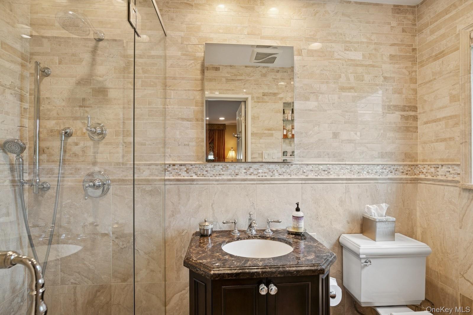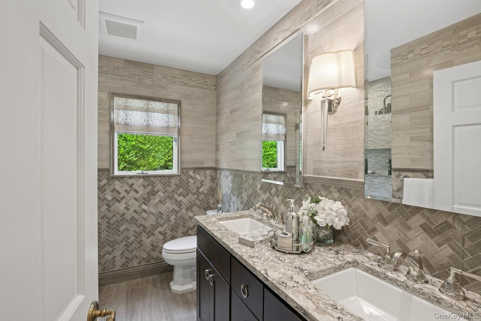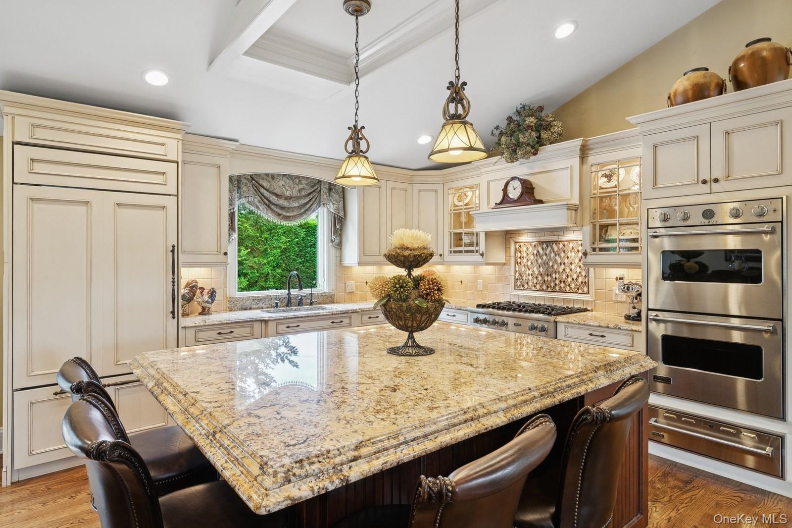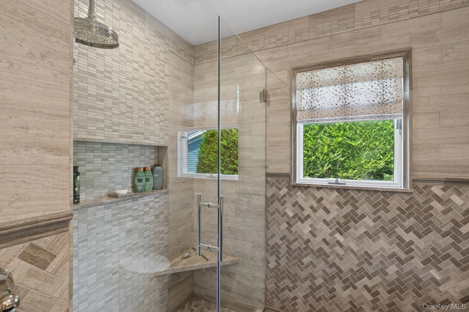 This tastefully fully furnished, renovated and expanded 3-bedroom and 3-bath Split-Level home is nestled on a meticulously landscaped shy quarter-acre. An inviting entry, clad in raised-panel wainscot, offers a double-coat closet and leads to a spacious and bright open main floor that flows effortlessly from the great room to a spectacular kitchen. Open to a palatial-sized dining area, which is perfect for hosting intimate parties and grand celebrations alike, the kitchen features bespoke Wood-Mode cabinetry, a center island with seating, a vaulted ceiling with custom millwork, and high-end appliances - including a Viking gas cooktop and double wall-ovens with a warming and microwave drawer, a commercial-grade exhaust, Sub-Zero refrigerator/freezer, and an Asko dishwasher. The tranquil master suite boasts abundant closet space and a gorgeous marble bath with a spa shower, a marble basketweave floor, and walls with a stunning mother-of-pearl mosaic tile. The additional bedrooms are generously sized with plenty of built-in cabinetry, and the hall bath features a dual vanity, a large shower, and designer fixtures and fittings. The lower level has a charming terracotta tile floor and a family room with a fireplace, laundry room, utility area, office space/home gym, full bath, plenty of storage, and a cedar closet, ideal for stowing out-of-season clothing. The residence showcases a large Trex deck with a remote-controlled awning for elegant outdoor entertaining, a sparkling hot tub, lush landscaping, specimen plantings, a lovely patio, firepit, a shed, and is fully enclosed in maintenance-free vinyl fencing. Highlights include a Sonos sound system, generator, fire and burglar alarm, central vac, gleaming hardwood floors, exquisite millwork, plenty of additional storage, 7-zone sprinkler system, landscape lighting, heated gutters, and durable vinyl siding. Enjoy the convenience of nearby transportation with easy access to shopping, dining, major highways, parks, and beaches.