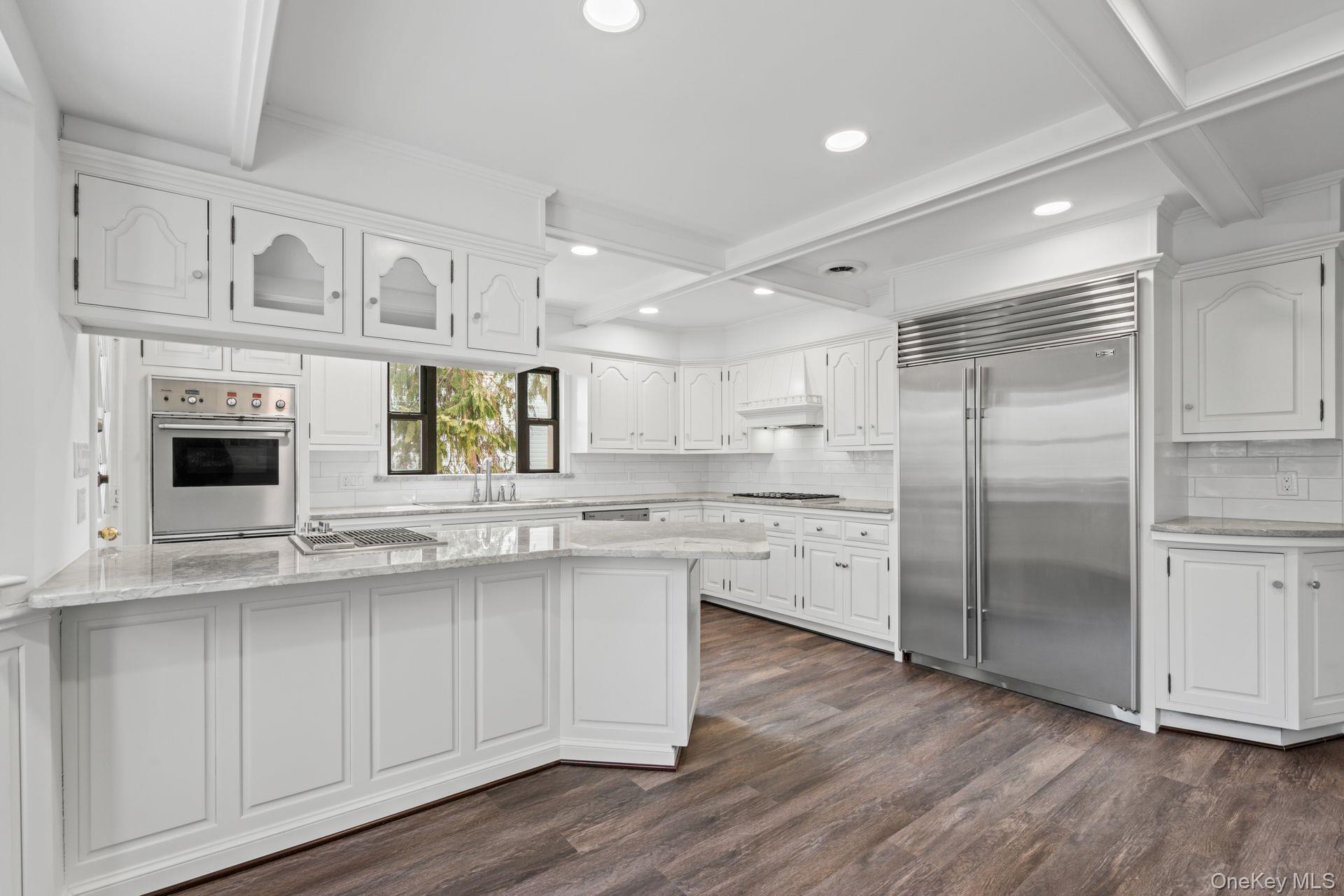 This beautifully move-in ready, renovated home in the sought-after Suburban Woods of Manhasset Hills offers the perfect balance of comfort and sophistication. Nestled on a quiet cul-de-sac just half a mile from Ridder’s Pond Park, the residence spans approximately 3, 978 square feet and has been meticulously updated throughout, blending timeless design with refined modern touches. The main level features brand-new engineered flooring with a ceramic finish and waterproofing, an open living space that flows into the family room with a wood-burning fireplace, and a spacious formal dining room. The powder room is finished with elegant Venetian plaster walls and marble floors. The kitchen boasts newly installed marble countertops and ceramic tile backsplash, refinished solid wood cabinetry, and high-end appliances including a commercial-grade Miele dishwasher, Thermador appliances, and a Subzero refrigerator. Upstairs, you'll find hardwood floors throughout and a spacious primary suite with a custom bathroom featuring a mix of marble and large-format porcelain tile imported from Italy. It includes a walk-in shower, double vanity, and his-and-her walk-in closets. Three more bedrooms share a stylish full bathroom with a beautiful blend of imported porcelain and marble, complete with a double vanity, garden tub, and separate shower. The fully finished basement offers additional versatile living space, featuring 8-foot ceilings and a brand-new egress window. It includes a laundry room and a beautifully designed full bathroom with a walk-in shower and elegant, Italian-imported porcelain tile. The expansive layout is ideal for guest quarters, a home office, or both—and it’s already prepped for a bar or kitchenette, making it perfectly suited for entertaining or extended family living. The outdoor space is equally impressive, with a dry, elevated, two-tier backyard surrounded by mature landscaping, new LED lighting, a gas cooking hookup, and newly installed paver patios and walkways. The exterior is solid brick with two inches of fiberglass insulation, fully waterproofed and finished with stucco, along with a brand-new 40-year roof and oversized 8-inch gutter system. Additional improvements include a new central air conditioning system, brand-new two-zone heating, a 75-gallon hot water heater, a newly installed gas line and meter, brand new 200-amp electric service, wired smoke detectors, and all-new interior and exterior LED lighting and electrical outlets. Please note: Taxes are currently in the grievance process, with an expected reduction of approximately 10–20%. " This is a rare opportunity to own a true turnkey home in one of Manhasset Hills’ most sought-after neighborhoods. Schedule your private showing today.