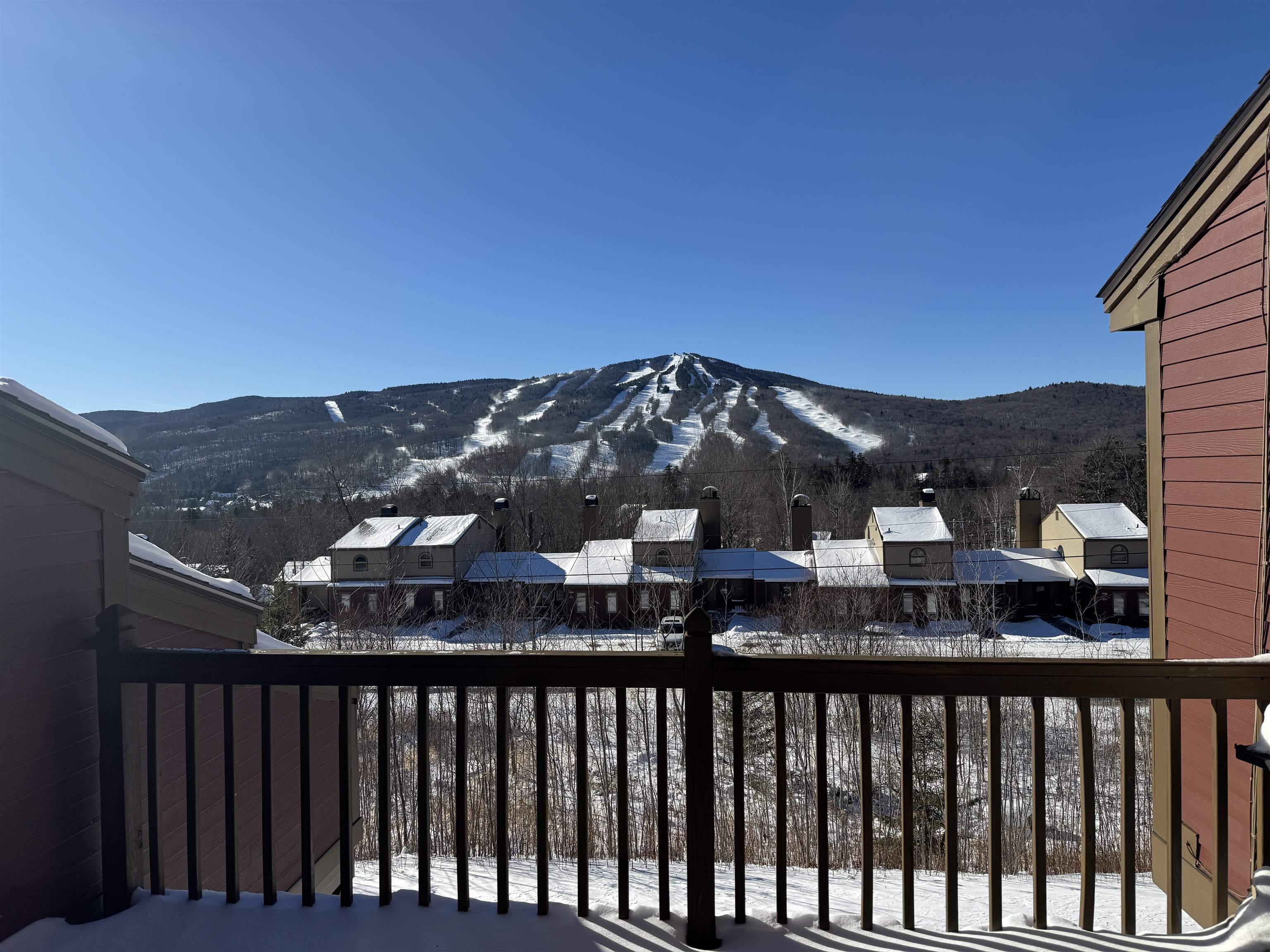 Welcome to the best Mount Snow view at Timber Cree. ! This 3 bedroom 2 bath condo has been owned and loved by the same family since its inception. You'll enjoy being right across the street from the North entrance to Mount Snow with access to a free shuttle, along with all the benefits of the Sugarhouse club house and sports complex. There's a basketball court, tennis/pickleball courts, racquetball, an indoor & outdoor pool, hot tub, gym, locker rooms, cross country ski trails, and a large kitchen/entertainment space owners can use by request. Inside you'll enjoy gorgeous mountain views from the kitchen, the living room, dining room, primary bedroom, and even the bunk room! Return from a great day on the slopes to your cozy abode and relax next to the crackle of the wood burning fireplace while you enjoy the company of friends and family. You'll find there's plenty of room for entertaining and accommodations for everyone. The deck makes a great spot for barbecuing or sipping your morning coffee while you take in the gorgeous scenery. This is a great opportunity to get a prime unit in a great location that you can then make your own and begin creating lifelong memories.