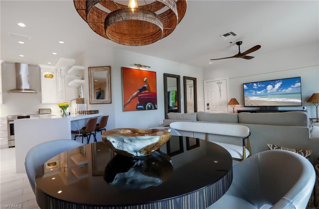Newly available for the 2025–2026 season! This exceptional two bedroom two bathroom penthouse is one of only seven exclusive residences, located at 365 Fifth Avenue South. A wonderful location to enjoy urban living in downtown Naples. Offering PGT impact-rated windows, porcelain tile flooring, custom closet systems, and Porcelanosa, vanities and trim, this condominium is one of style and refinement. The living room offers a comfortable, white upholstered couch, side chair, and entertainment center with a large TV. The kitchen has beautiful, white cabinetry, quartz counters and bar area, and is equipped with a subzero refrigerator, Bosch induction range and microwave, a wine cooler, and 2 bar stools. The dining area offers a round dining table for four. A perfect space for entertaining. The primary suite offers an upholstered bedframe with a king size bed, side tables, dresser, desk area, walk-in closet, and a private bath with a walk-in shower. The guest bedroom offers and a poster bedframe with a queen size bed, end tables, dresser, and bath with a walk-in shower. Enjoy the outdoor space with two comfortable chairs, as well as a dining table (w/umbrella), for four. The perfect location, just blocks from the white sandy beaches, this residence is located in a quiet area of 5th Ave. S. , and yet walking distance to exceptional restaurants, luxury shopping, Naples Player’s Theatre, the Von Liebig Art center, Norris Tennis Center, and the outdoor Atrium featuring a variety of music events. An easy walk or drive to the Third Street restaurants and shops. Enjoy having two assigned parking spaces. This is a rare opportunity in Olde Naples. Priced under value to have a quality seasonal guest for 90 days or longer.
