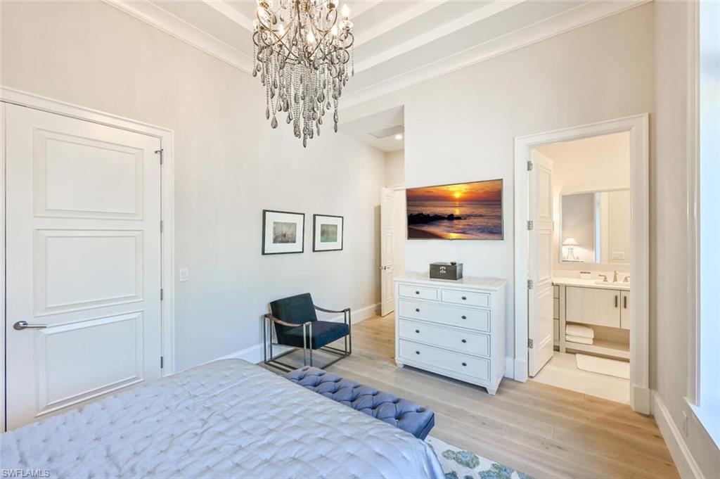 This custom-built single-family home is located in prestigious Pelican Bay with the Ritz Carlton to the north and Waterside Shops and restaurants to the south. Contemporary elegance abounds in this 5-bedroom home that features an extensive island kitchen with Sub-Zero and Wolf appliances, butler’s pantry, climate-controlled wine room, wet bar, Smart Home controls, expansive resort-style outdoor living area with salt-water pool and spa and 4 car garage. The primary retreat offers a king-sized bed, wall mounted TV, soaking tub and spa shower with electric controls. 3 of the guest bedrooms (3 with ensuite bathrooms) feature king beds and the 4th bedroom boasts a queen bed. Enjoy your morning coffee in the outdoor oasis, complete with a summer kitchen and bar, large dining area, TV and family seating area all while overlooking the resort style pool and spa. World class amenities offered at Pelican Bay include tram service to private beaches, private beachfront restaurants, beach services, tennis programs, fitness, spa and community center. Live exceptionally in Pelican Bay!