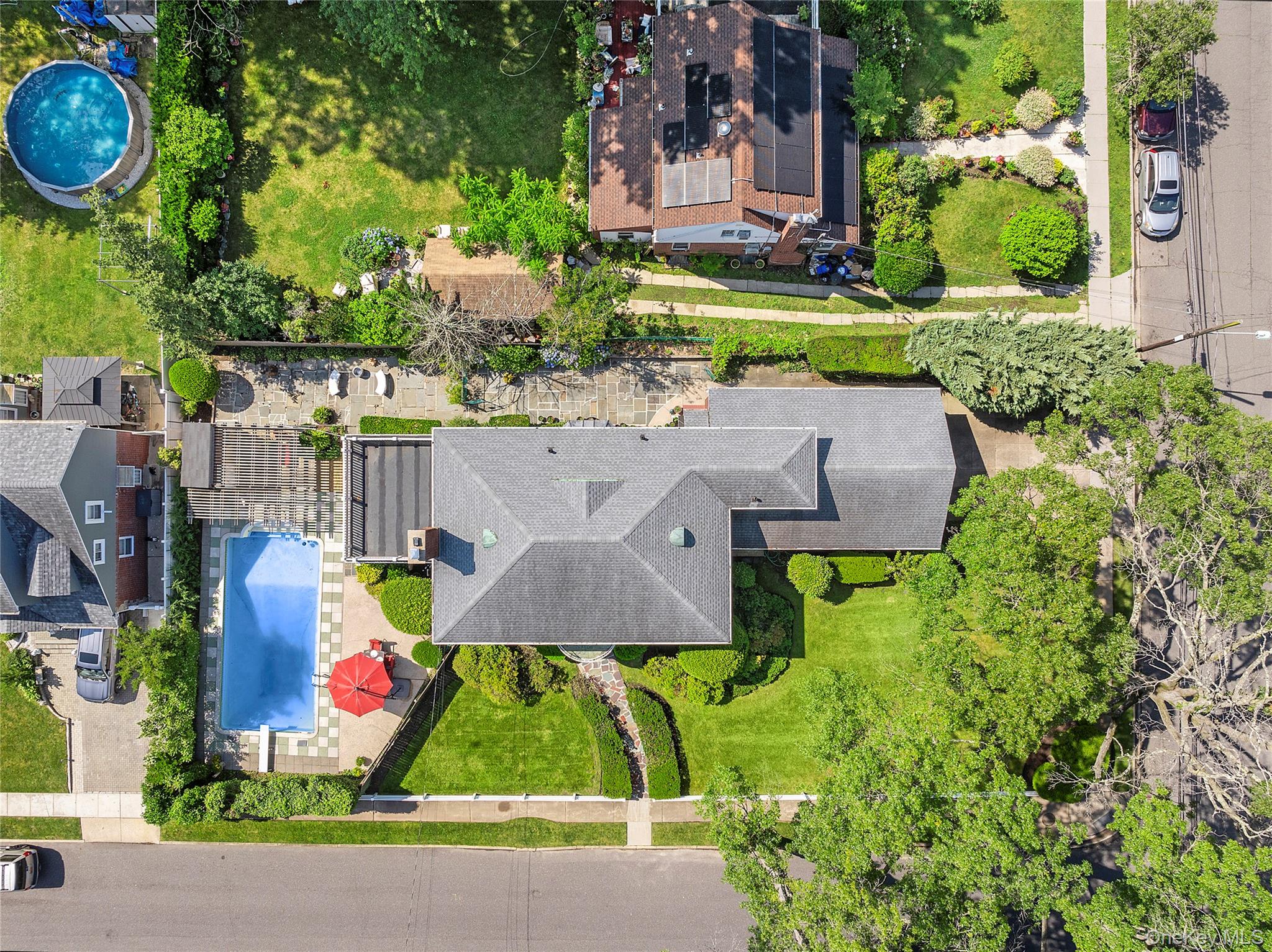 Nestled in the prestigious Stearns Park section of Freeport, within the Baldwin School District, discover this stately Center Hall Brick Colonial. This expansive 4-bedroom, 3- Full Bathrooms with Bonus Room nursery/office, Brand New Inground Pool, Cabana and Fireplace home masterfully blends original architectural details with casual elegance, offering an ideal setting on a lovely tree lined street. You will find beautifully refinished White oak hardwood floors throughout the first and second floors, and a sun-drenched living room, with a handsome wood-burning fireplace, leading to a heated den with views and access to your private outdoor oasis featuring a patio, in-ground swimming pool, and cabana. A formal dining room, perfect for hosting, complements the eat-in kitchen, complete with quartz countertops, a farm sink, and stainless-steel appliances. A versatile first-floor bedroom and full bathroom offer the potential for a private office or guest suite. Upstairs, the primary bedroom suite awaits, featuring an ensuite marble bath and a spacious walk-in closet. Two additional generously sized bedrooms, a walk-in cedar closet, and a bonus 5th room that can serve as a nursery or office complete the second level. The oversized lower level with retro bar provides ample additional space for entertaining, with an egress window, utility room, and laundry facilities. Outside, your serene, landscaped yard beckons, offering brand new in-ground swimming pool, cabana, ample patio space, and lush green areas – perfect for all your outdoor entertaining needs. Renovated in-ground swimming pool to be completed before closing. Additional notable features include over 3, 000 sq ft of interior living space, new windows, a 40-gallon hot water heater (2024), a new roof (2022), 5-zone heating, in-ground sprinklers, an alarm system, and a 2-car garage. Freeport is celebrated for its vibrant Nautical Mile waterfront dining, close proximity to world class beaches, numerous parks and recreation options, and a convenient 40-minute LIRR commute to NYC. Don't miss this exceptional opportunity to experience the best of suburban living – schedule your private tour today!