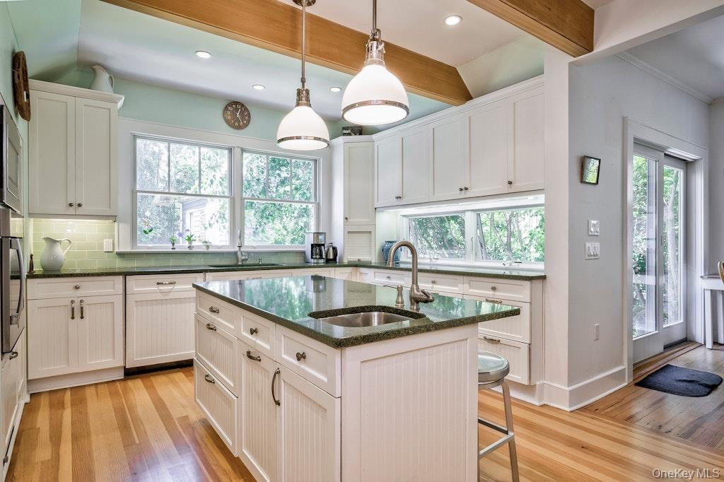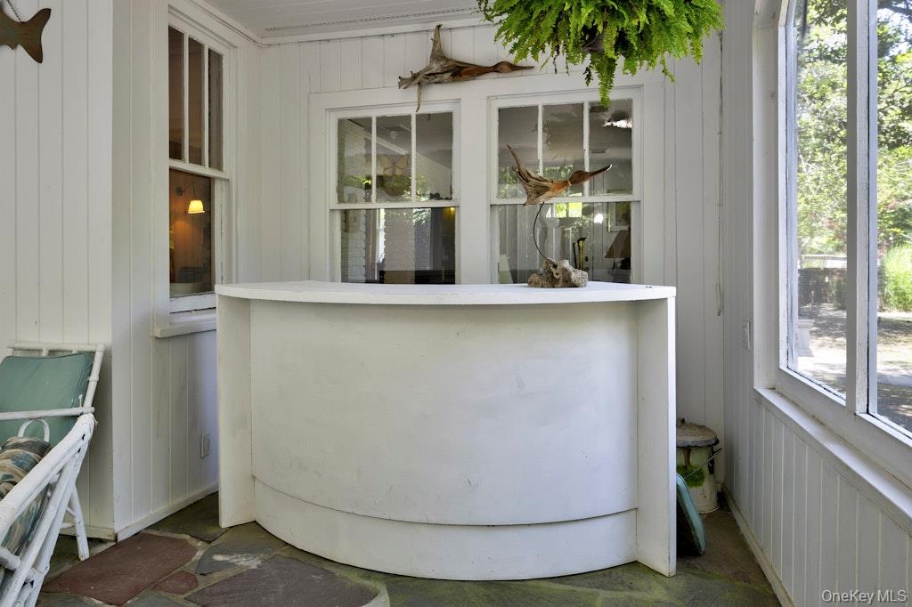 Tucked away in the heart of Seaview, this rare and charming 1930s beach home is steeped in history, character, and stories that only time can tell. With its exposed brick, original cabinetry, and handcrafted wood accents throughout, 37 Duneway is the kind of place that feels like a page out of a novel - nostalgic, grounded, and full of soul. Step into a massive living room with original hardwood floors, wood-burning fireplace, and cedar paneling, flooded with natural light from every angle. The kitchen has been lovingly updated with new appliances, a six-burner gas stove, and new windows, while still preserving the warmth and craftsmanship of the home’s original build. Formal dining feels timeless beneath the soft glow of a Japanese grasscloth-wrapped fixture, surrounded by vintage charm. The main level features a cozy bedroom with sliding doors out to the yard, and a half bathroom, renovated post-Sandy with thoughtful finishes. Upstairs, you’ll find three additional bedrooms and two full baths - including a primary suite with French doors that open to a private sun deck. Every room is unique, and the massive hallway closets offer abundant storage for beach gear and beyond. Step outside to discover the ultimate Fire Island lifestyle: an outdoor living room with a built-in bar, outdoor shower, a lush yard ready for gatherings, and a guest house that invites multi-generational living, creative retreat space, or additional rental income. As a Seaview homeowner, you’ll have access to the community’s private pool, tennis courts, and clubhouse - a hidden world just for locals. Whether you're ready to make this your personal summer sanctuary or join the island’s vibrant vacation rental scene, 37 Duneway is a rare chance to own a home with history, soul, and room to dream.