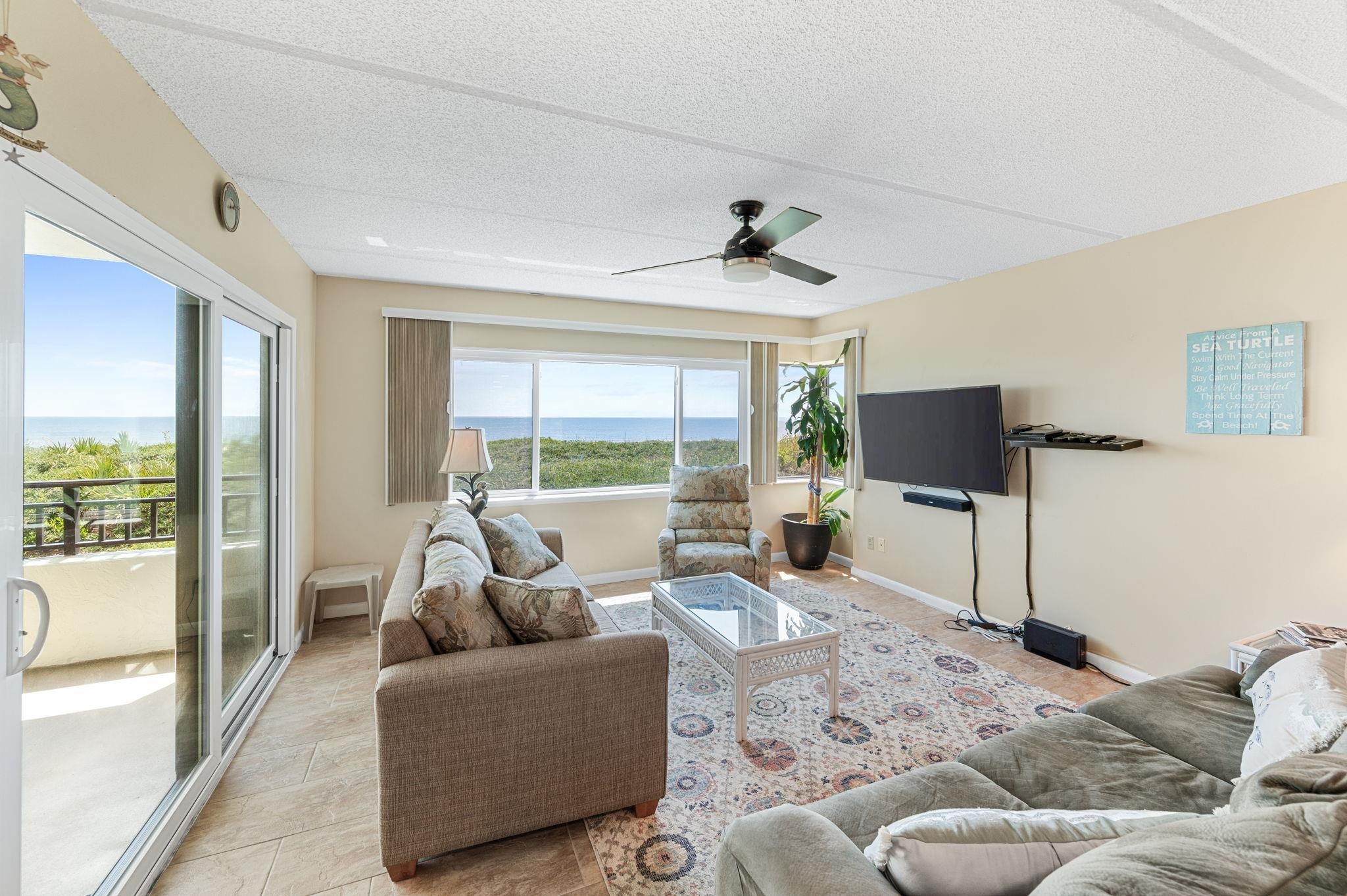 Direct oceanfront 3-bedroom, end unit condo with spectacular views of The Atlantic and the Intercoastal waterway. This 3-bedroom unit is offered fully furnished and ready for you to make it your own private vacation paradise, or share it with the world as your amazing vacation rental with outstanding income potential. Both guest bedrooms offer intercoastal views while the master opens up to The sights and sounds of the ocean coming through the sliding doors. The community boats a covered parking garage, storage units for owners, pool, tennis, a grilling area and private beach walkover access.
