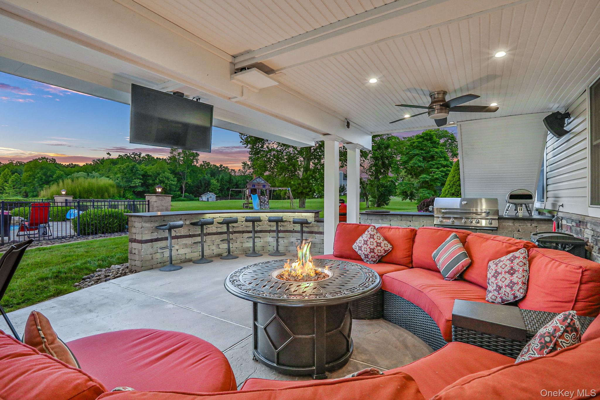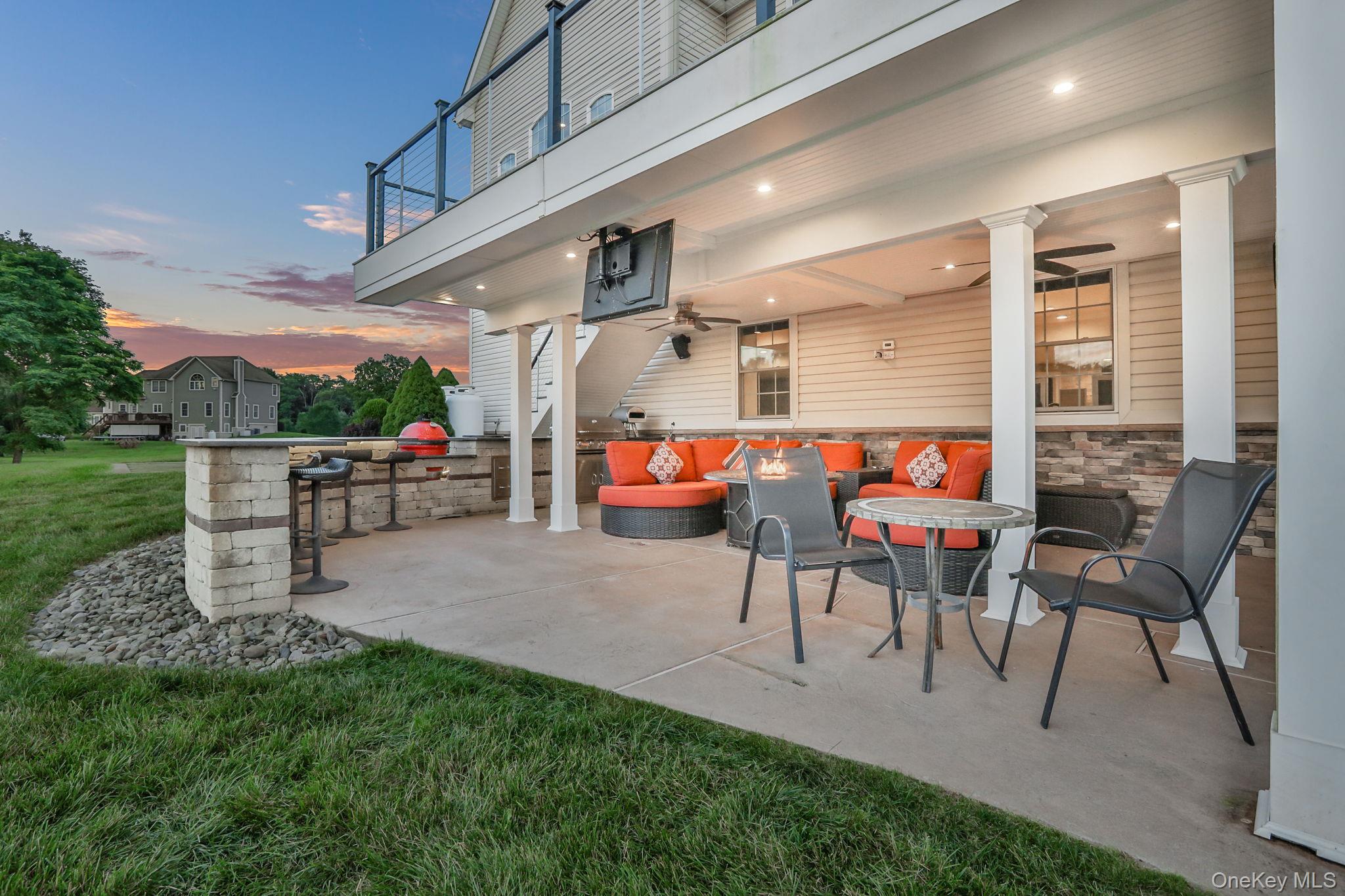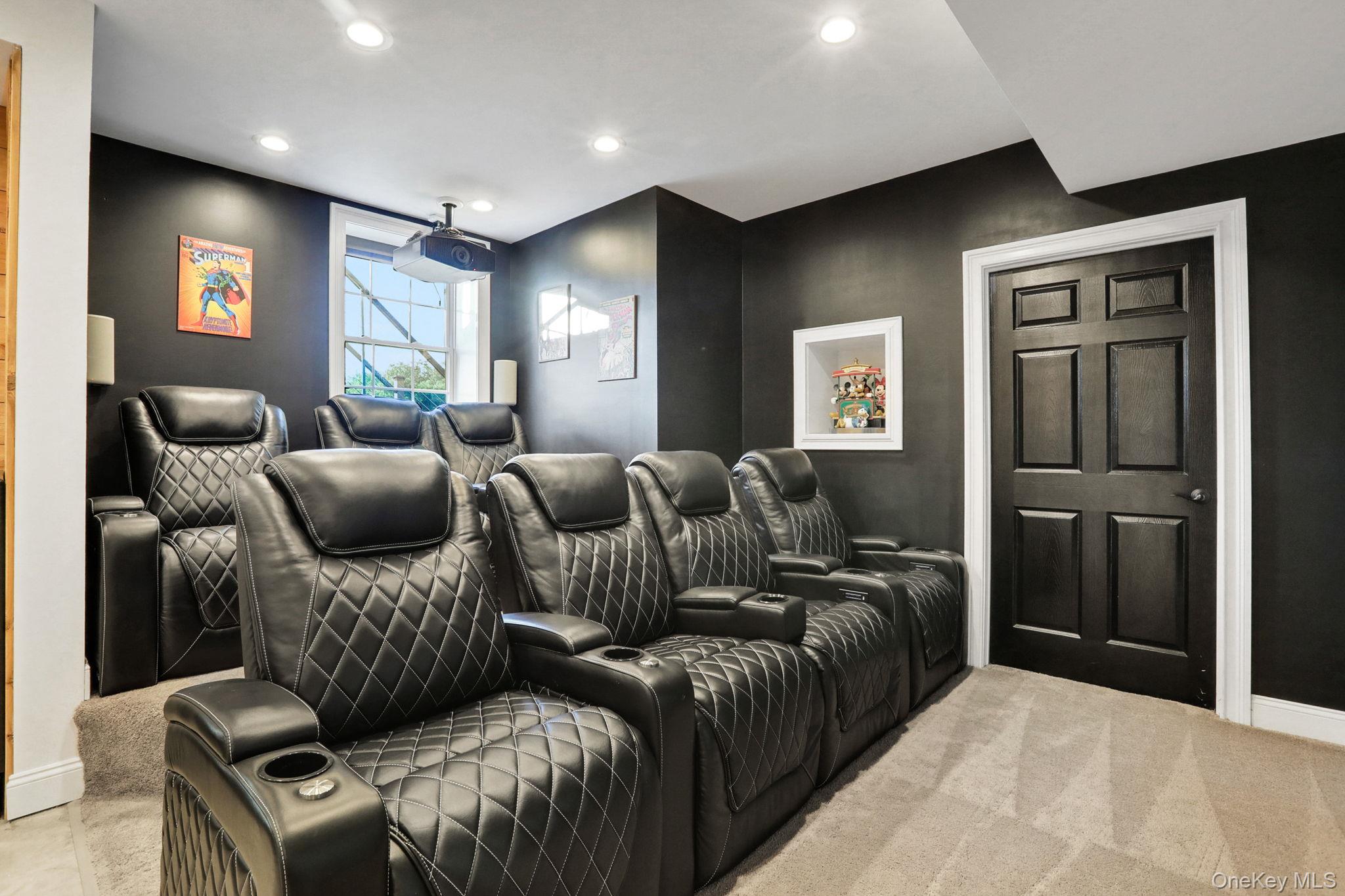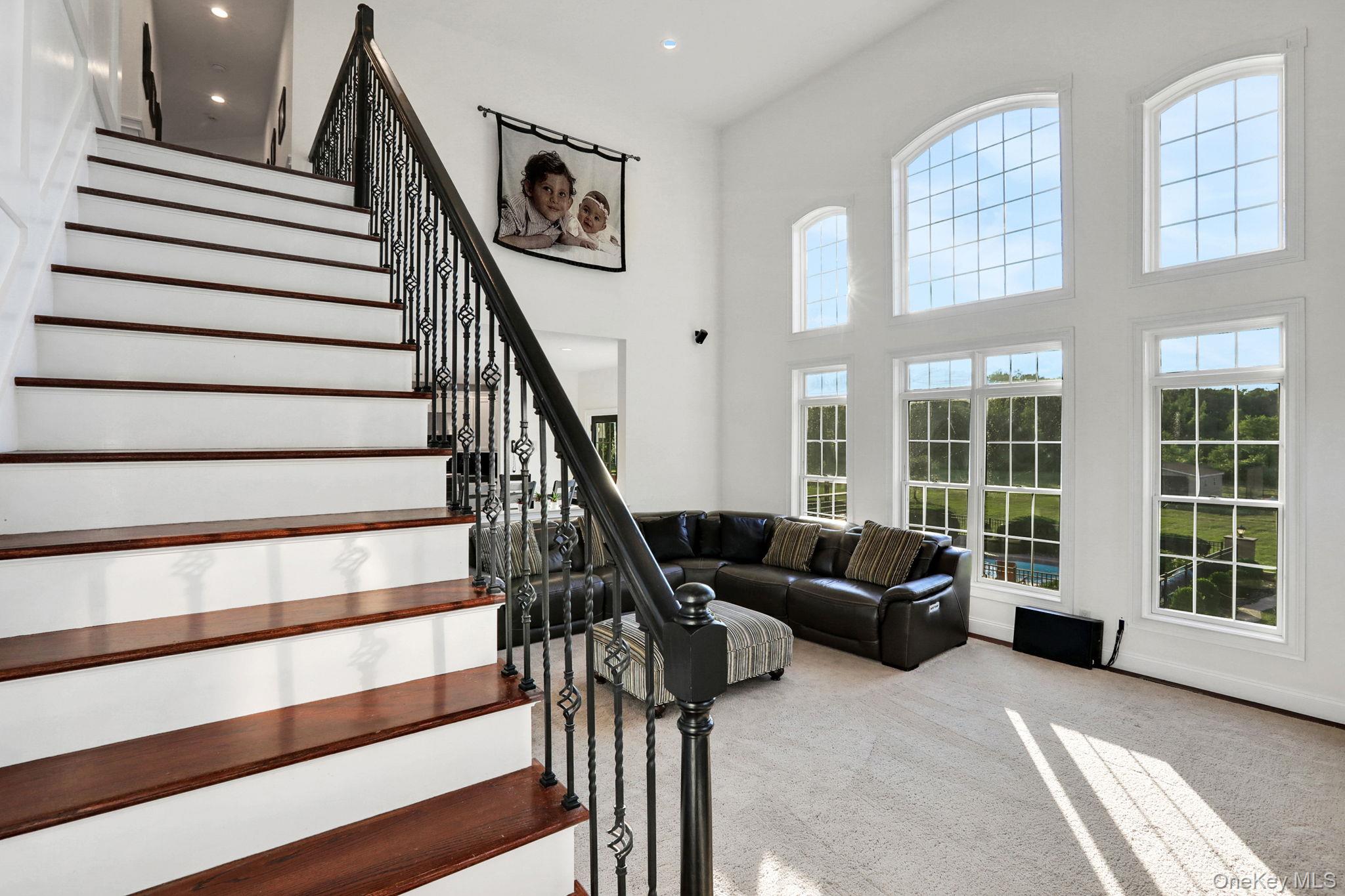 Discover the epitome of elegance in this timeless four-bedroom, six-bathroom estate, just over one hour from NYC via the George Washington Bridge. Nestled in the breathtaking Hudson Valley, this luxurious retreat captivates both NYC clients and locals alike, offering an unrivaled blend of sophistication and resort-style living. Arrive via the concrete diamond-stamped driveway and walkway, stepping through grand 8-foot double doors with wrought iron railings into a stunning foyer with 18-foot ceilings and flawless hardwood floors. The opulent entryway flows into a sitting room, formal dining room, sunroom, and office (which can be easily converted into a fifth bedroom), as well as a full bath. Over 200 LED high-hat lights and textured wall coverings illuminate the estate’s timeless allure. The seamless flow continues to an oversized chef’s kitchen, featuring granite and quartz countertops, newer appliances, and exquisite white cabinetry, opening effortlessly to the family and entertaining areas. The eat-in kitchen connects to a magnificent family room with 18-foot ceilings, floor-to-ceiling windows, and a 18-foot stone pellet stove fireplace. Sliding doors lead to a beautiful composite deck with cable railings, overlooking a resort-like backyard. A central vacuum system and whole-home Generac generator ensure ultimate convenience and peace of mind. Upstairs, the oversized primary suite radiates luxury with cauffed ceilings, a gas fireplace, a sitting area, a jacuzzi tub, a shower, dual sinks, and two walk-in closets. A laundry room off the primary suite leads to three oversized bedrooms, one with a full bath and two share a Jack-and-Jill bath. The lower level is an entertainer’s paradise, featuring a theater/media room with seven leather-stitched reclining seats, a full gym, Sauna, and a billiards room with an oversized granite kitchenette, wet bar, coffee station, and built-in seating for 12. Step through double sliding doors to a resort-style backyard, complete with an outdoor kitchen and bar boasting granite countertops, a Kamado Joe smoker, a grill, and a pizza oven. Enjoy a heated saltwater pool with a waterfall, a golf facility featuring a teeing area and a 6-hole practice green, as well as a synthetic basketball court and pond, all located on the property. An oversized shed provides ample storage. Spanning nearly 2 acres, the grounds feature full irrigation, an ADT security system, and an indoor-outdoor Bose sound system. Fully Bluetooth-enabled, control indoor and outdoor lights, blinds, washer, dryer, security, and a Bose system from your phone. The car collector’s dream garage includes epoxy flooring, a hydraulic lift, parking for four vehicles, and four EV charging stations with two dedicated power lines. This Hudson Valley masterpiece offers timeless luxury and modern sophistication, just over an hour from NYC. Schedule your private tour today!