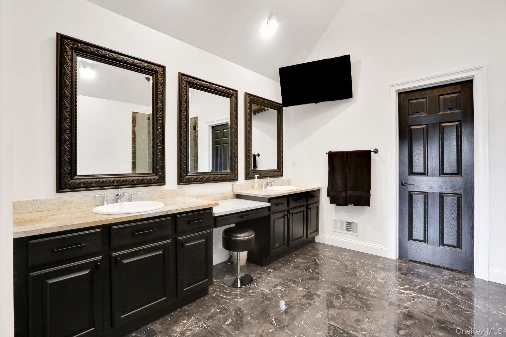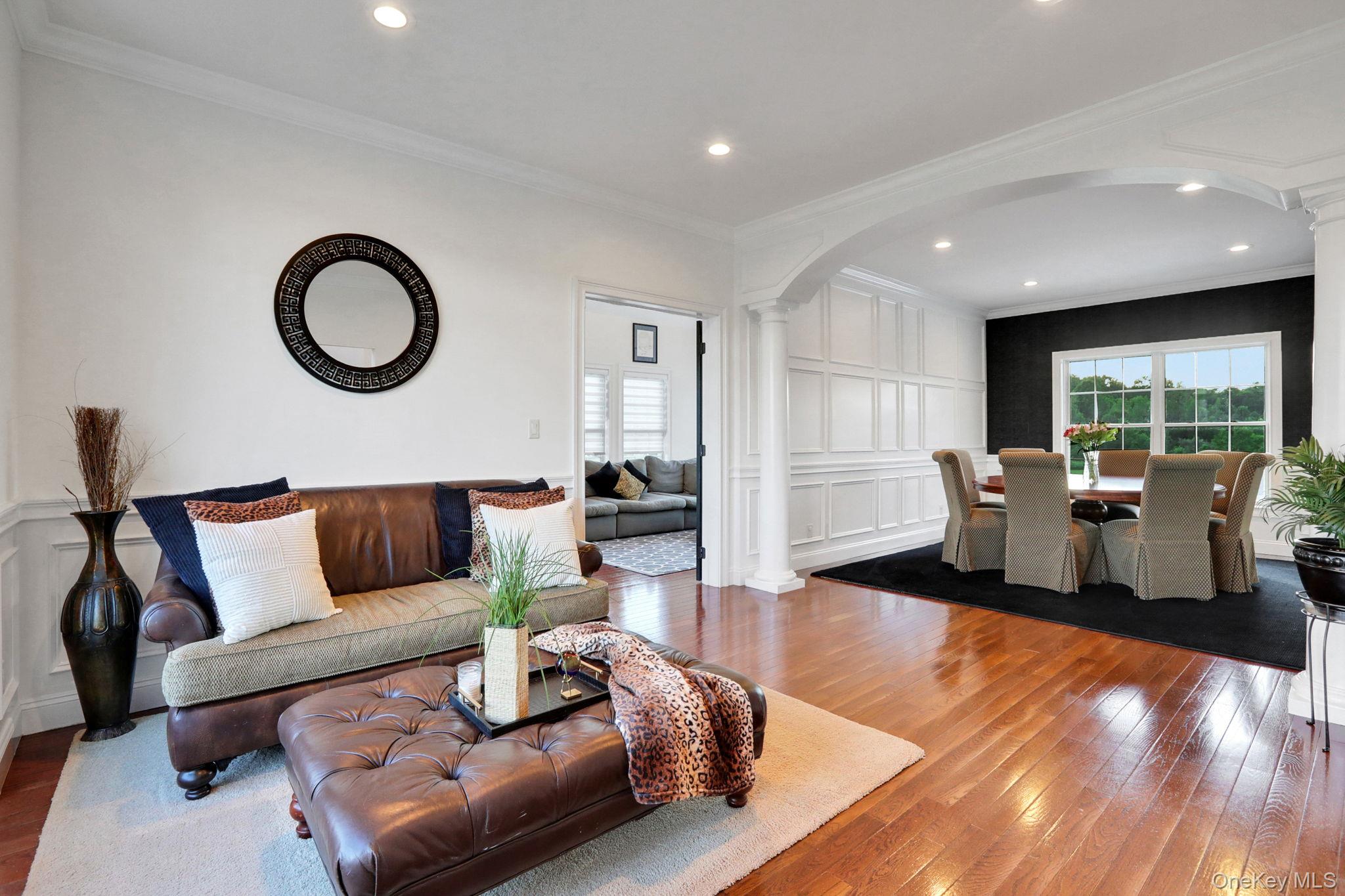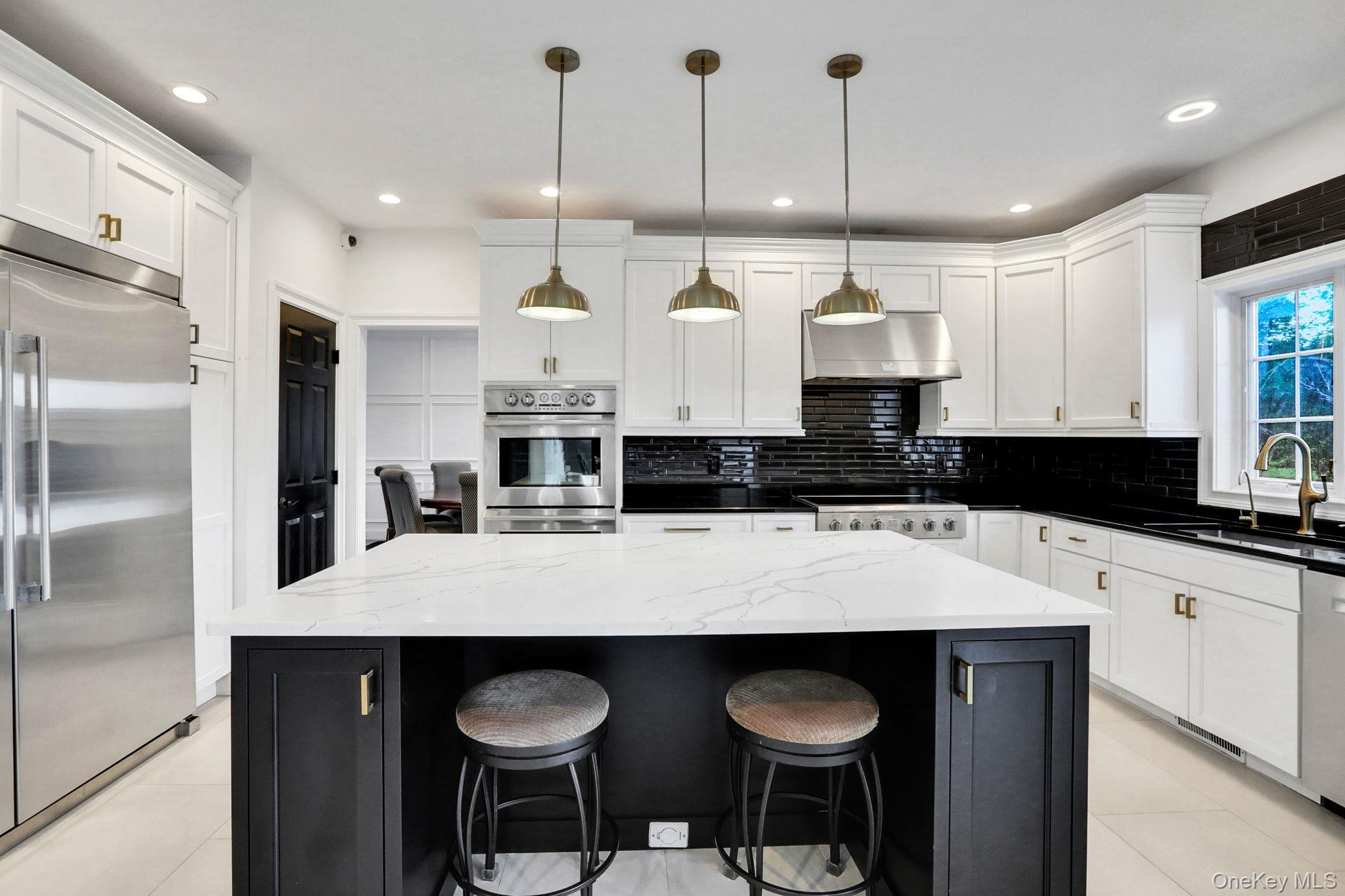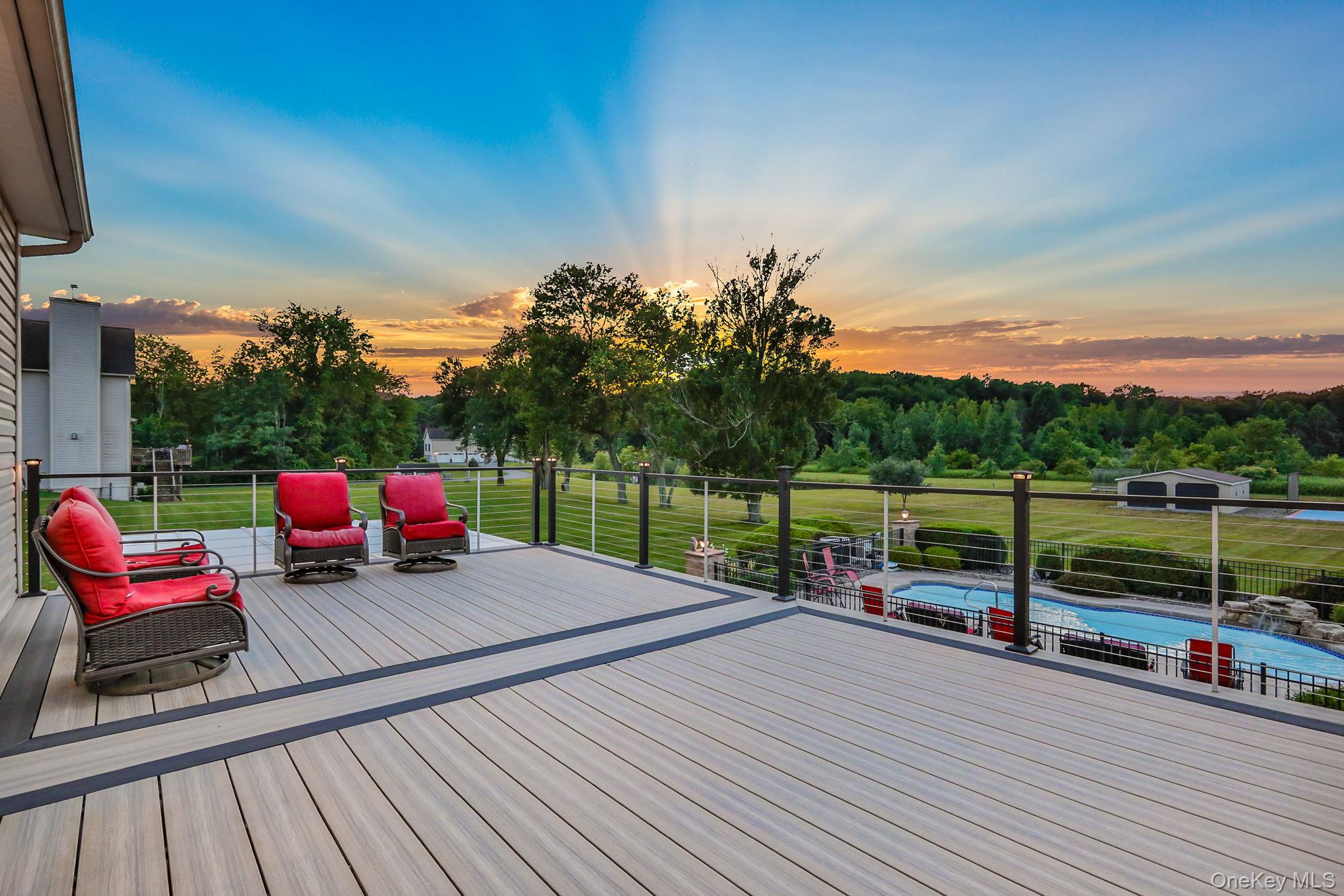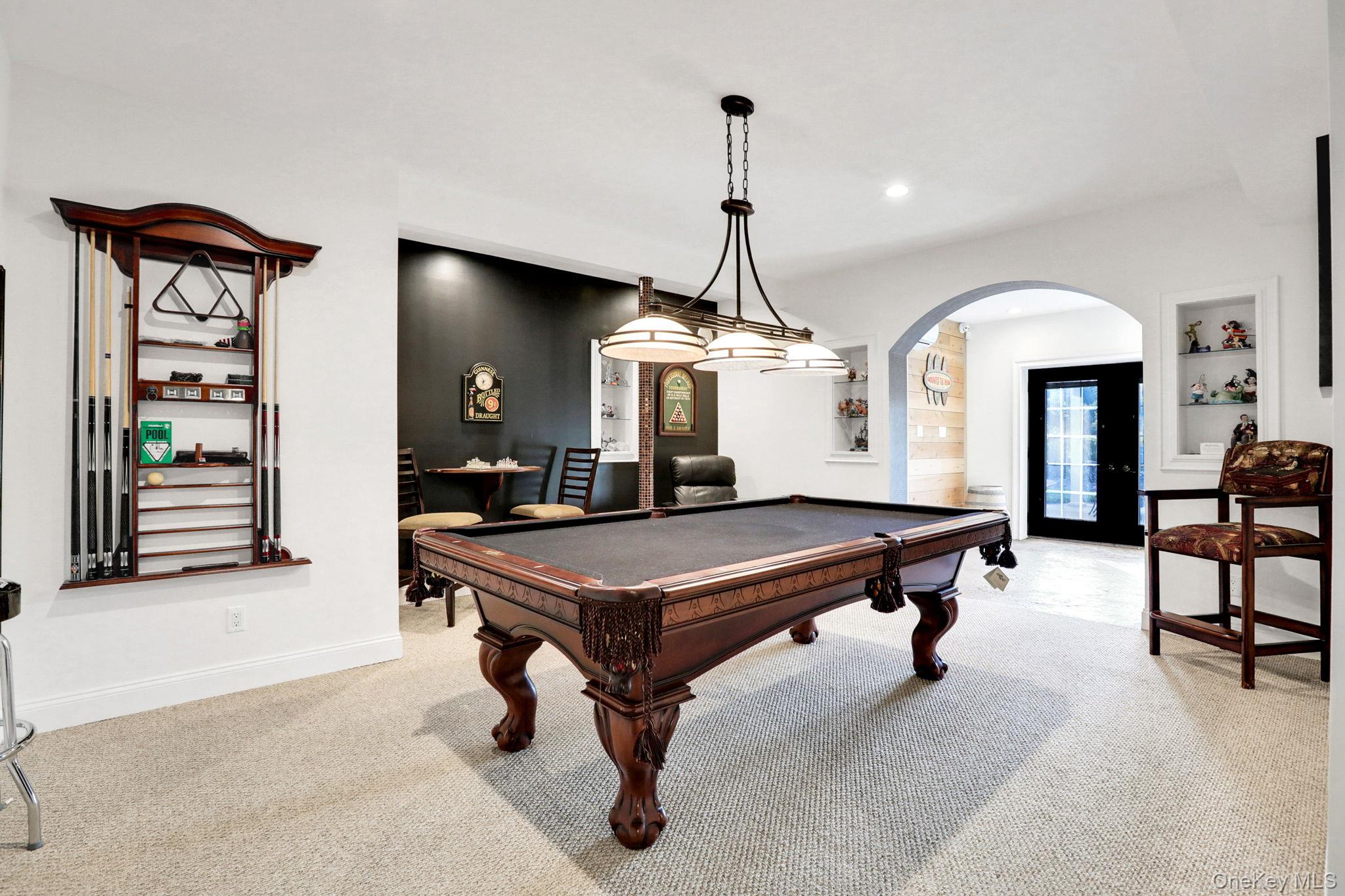 Discover the epitome of elegance in this timeless four-bedroom, six-bathroom estate, just over one hour from NYC via the George Washington Bridge. Nestled in the breathtaking Hudson Valley, this luxurious retreat captivates both NYC clients and locals alike, offering an unrivaled blend of sophistication and resort-style living. Arrive via the concrete diamond-stamped driveway and walkway, stepping through grand 8-foot double doors with wrought iron railings into a stunning foyer with 18-foot ceilings and flawless hardwood floors. The opulent entryway flows into a sitting room, formal dining room, sunroom, and office (which can be easily converted into a fifth bedroom), as well as a full bath. Over 200 LED high-hat lights and textured wall coverings illuminate the estate’s timeless allure. The seamless flow continues to an oversized chef’s kitchen, featuring granite and quartz countertops, newer appliances, and exquisite white cabinetry, opening effortlessly to the family and entertaining areas. The eat-in kitchen connects to a magnificent family room with 18-foot ceilings, floor-to-ceiling windows, and a 18-foot stone pellet stove fireplace. Sliding doors lead to a beautiful composite deck with cable railings, overlooking a resort-like backyard. A central vacuum system and whole-home Generac generator ensure ultimate convenience and peace of mind. Upstairs, the oversized primary suite radiates luxury with cauffed ceilings, a gas fireplace, a sitting area, a jacuzzi tub, a shower, dual sinks, and two walk-in closets. A laundry room off the primary suite leads to three oversized bedrooms, one with a full bath and two share a Jack-and-Jill bath. The lower level is an entertainer’s paradise, featuring a theater/media room with seven leather-stitched reclining seats, a full gym, Sauna, and a billiards room with an oversized granite kitchenette, wet bar, coffee station, and built-in seating for 12. Step through double sliding doors to a resort-style backyard, complete with an outdoor kitchen and bar boasting granite countertops, a Kamado Joe smoker, a grill, and a pizza oven. Enjoy a heated saltwater pool with a waterfall, a golf facility featuring a teeing area and a 6-hole practice green, as well as a synthetic basketball court and pond, all located on the property. An oversized shed provides ample storage. Spanning nearly 2 acres, the grounds feature full irrigation, an ADT security system, and an indoor-outdoor Bose sound system. Fully Bluetooth-enabled, control indoor and outdoor lights, blinds, washer, dryer, security, and a Bose system from your phone. The car collector’s dream garage includes epoxy flooring, a hydraulic lift, parking for four vehicles, and four EV charging stations with two dedicated power lines. This Hudson Valley masterpiece offers timeless luxury and modern sophistication, just over an hour from NYC. Schedule your private tour today!
