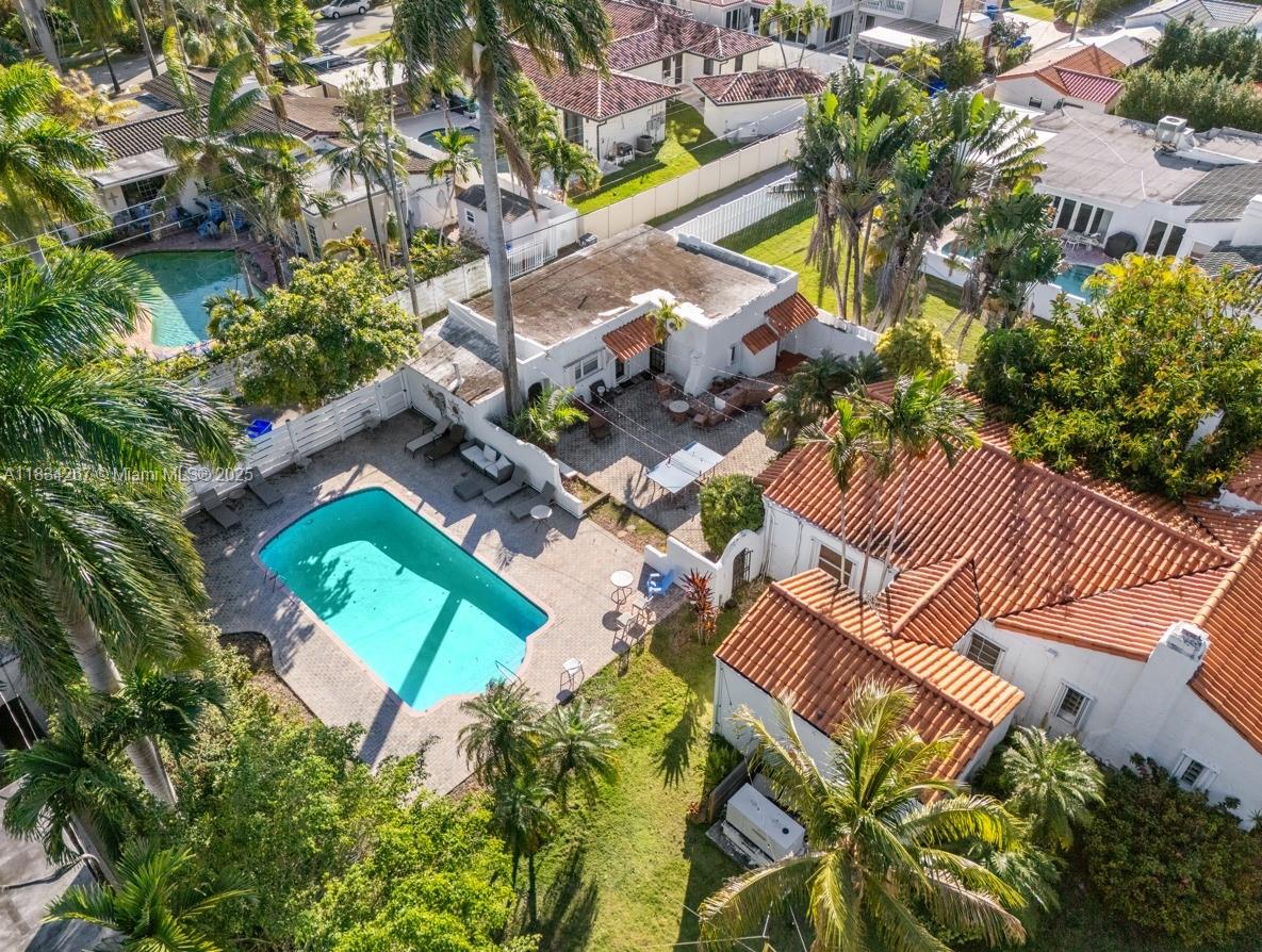 Captivating Spanish-style villa, nestled on a rare double lot in the heart of Hollywood Lakes. Beautifully curated estate featuring a main house with 2 beds and 1. 5 baths, and two separate 1-bed, 1-bath guest houses, making it ideal for multigenerational or extended family living. Interior blends charm and sophistication with exposed wood beam ceilings, a fireplace, and a formal dining. The spacious layout includes soaring vaulted ceilings and comes fully furnished, ready for you to move in. Outdoors, your own private courtyard oasis awaits, featuring a resurfaced pool, lush tropical landscaping, and plenty of space to entertain or unwind. The estate’s prime location puts you minutes from the beach, Downtown Hollywood, Broadwalk, and FLL International Airport.