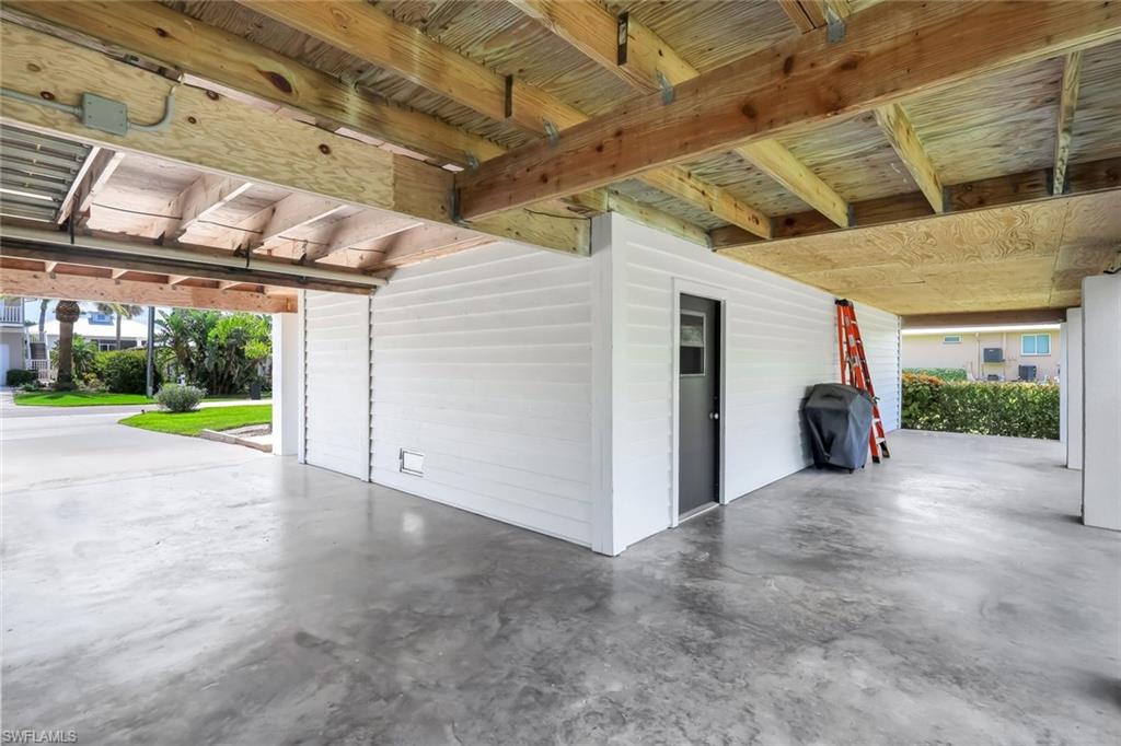 Light & bright, canal-front gulf access home, with recently rebuilt dock (w/ water & electric), has been meticulously cared for. Beautiful wood floors in the main living area and pristine carpet in the bedrooms, new stairs on front and rear of the home. Kitchen has solid wood custom cabinetry, new quartz countertops as well as a breakfast nook space with bay window. Large master bedroom has custom walk-in closet & frameless shower door in the master ensuite. Enjoy peaceful canal views from either the second level 234 Sq Ft screened-in deck or the first level patio. Pocketing sliding glass doors from both the master bedroom and living room lead out to the screened in deck. The laundry room is a great size and downstairs has a 630 Sq Ft enclosed space for storage and/or a workshop. Located just off of W. Terry St which has wide sidewalks, great for biking or walking to Starbucks and Publix, or the dining & shopping at The Promenade at Bonita Bay. Located across the street from Bonita Fairways and a 5 min drive to the restaurants, coffe shops, and entertainment venues of Downtown Bonita. A wind mitigation was conducted on the reinfornced metal roof in 2023 (ask agent for report), the property has a transferrable flood policy as well as a low interest rate VA loan that can be assumed by qualified veterans. Seller represents that canal can fit boat up to 18'.