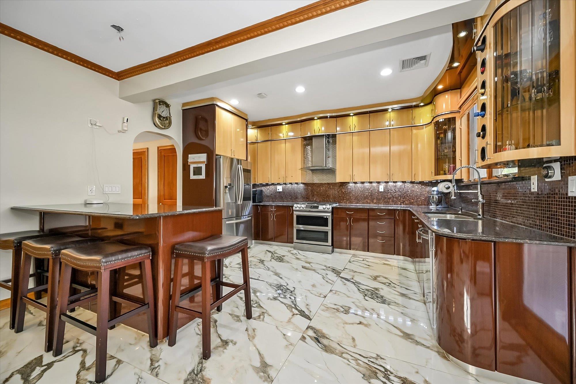 Welcome to this beautiful custom home with impressive cathedral ceilings that set the tone for elegance. As entering the foyer, enjoy spacious living areas: including a large living room, formal dining room, cozy family room, a beautifully designed kitchen and powder room. As going up to a second Floor you will be impressed to see the three generous sized bedrooms, featuring custom closets and two full baths. A laundry chute adds practical convenience. Enjoy the lower level for entertaining and relaxation, with a large playroom, office, laundry room, powder room and additional storage space. A sliding door to backyard leads to a cozy porche with pergola (equipped with lights and heating), backyard, private driveway, and detached garage. This exquisite home combines classic charm with many amenities, offering both style and comfort.