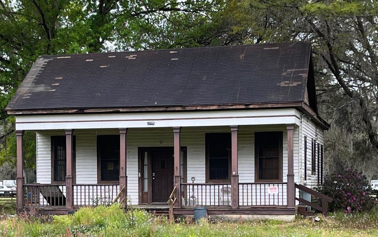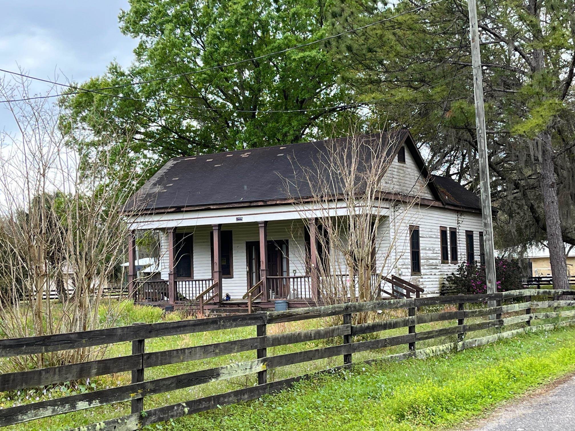 Fixer-upper-home farmhouse can be converted back to its original old-world charm and glory. It's covered front porch looks out over its beautiful acre lot and its gorgeous oaks trees. This property was amazing in its day. All huge rooms, high ceilings, 2 fireplaces. Its walls are plaster and has original doors, interior and exterior, that still look good! Cabinets also still look great. Electrical and plumbing updated some years ago. New pump on well. Septic needs replacing.