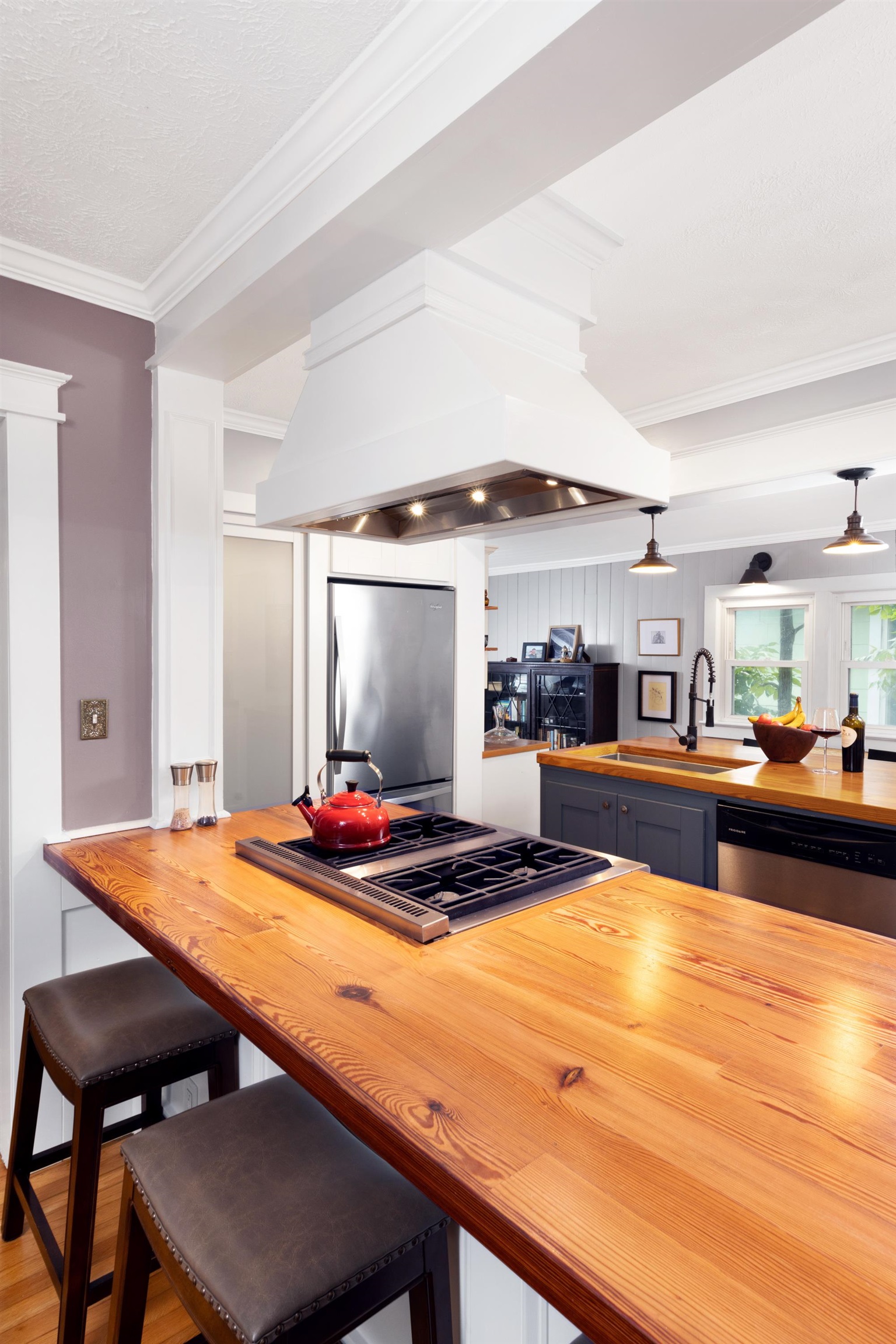 Welcome home to this beautiful Fullerwood Park residence. This property is Situated on a street-to-alley lot, with convenient access to a two-car garage from the alley. As soon as you step inside, you'll immediately notice the meticulous attention to detail throughout the home. The craftsmanship of yesteryear is blended beautifully with modern-day conveniences. The chef's dream kitchen is the centerpiece of this open and airy floor plan. It features stainless steel gas range, complemented by two eat-at islands that comfortably seat six people. Enjoy amazing reclaimed heart of pine countertops, stainless steel appliances, wood floors and custom cabinets. The dining dining room is seamlessly connected to the kitchen and a cozy court yard, accessible through double glass doors. The unique and versatile floor plan offers numerous possibilities. Upon entering front door, you'll find a sunroom with a wall of windows that leads to an open living room with a decorative fireplace, a dining room, a kitchen, a private office and a master bedroom. The spacious master bedroom boasts three closets and a modern bathroom that includes a tiled walk-in shower. Custom crown molding and paneled walls throughout the lower level enhance the original charm and character of this home, built in 1922. Moving upstairs, you'll find two additional bedrooms and a full bathroom. The third bedroom is non-conforming featuring a kitchenette, refrigerator, cabinets and a moveable bar, making it an ideal mini-suite for families or friends who desire extra privacy. The Outdoor space is truly a gardeners paradise, thoughtfully designed with picturesque courtyards and inviting decks. At the heart of this serene retreat lies a private backyard oasis, complete with a charming hot tub deck, perfect for relaxation under the stars, and an outdoor shower conveniently located next to the spa for a refreshing rinse. The meticulously maintained professional landscaping enhances the beauty of the surroundings, while the easy-to-care-for design ensures ample time to enjoy the tranquility. This vibrant garden is irrigated with a shared community deep artisan well, ensuring lush greenery and blooming flowers year-round. Garden area is totally fenced for children and pets safety. This home has been well-maintained and cherished over the years, with several Upgrades including updated plumbing and wiring, a new roof in 2025 (with 10 year warranty), exterior paint in 2020, fresh paint throughout the inside, and a new gutter system. Additional enhancements include refinished floors, new ceiling fans and light fixtures, a newer hot water tank, new attic insulation, built-in book shelves and new double pane glass window inserts that tilt in for cleaning with a five-year warranty. Buyers are advised to verify all measurements.